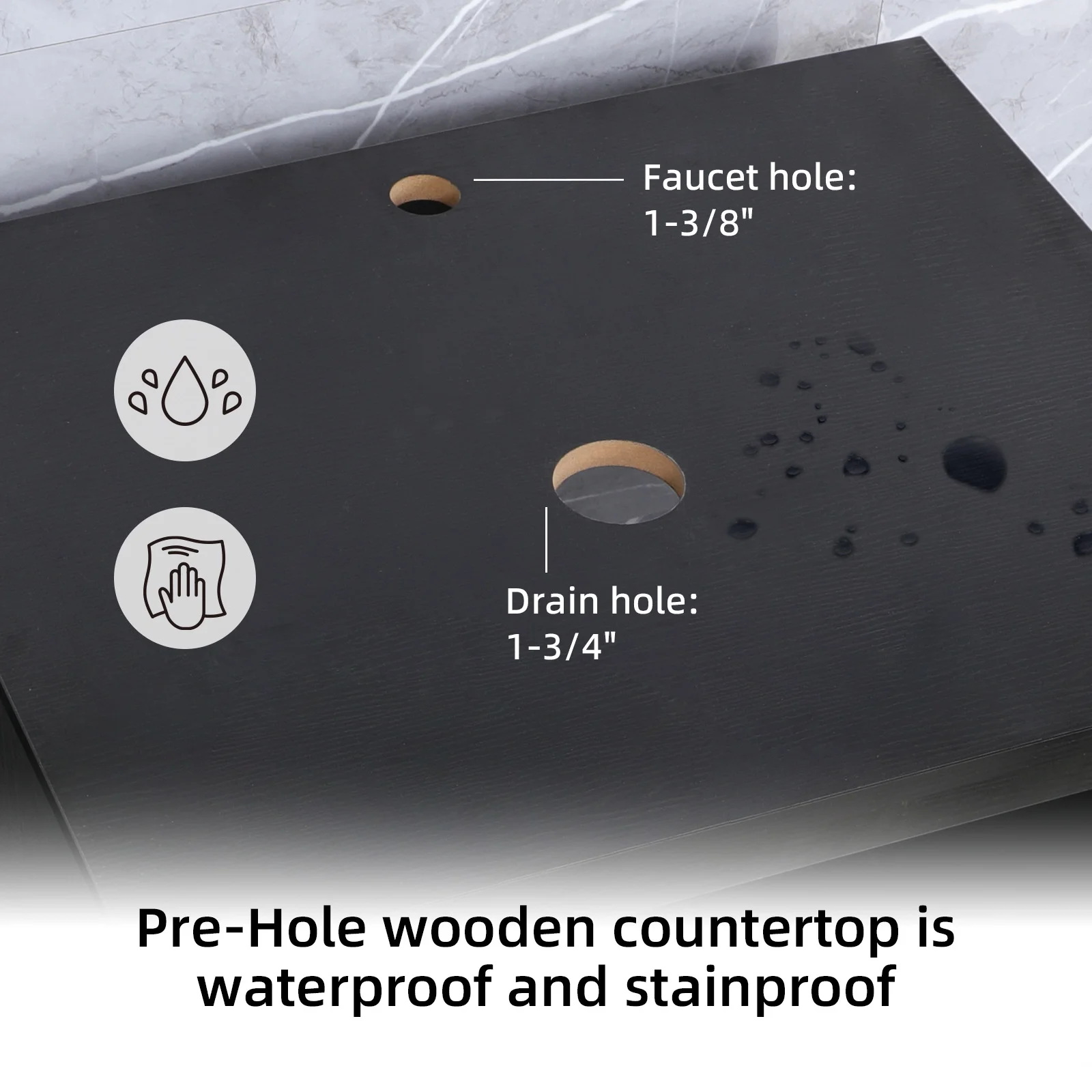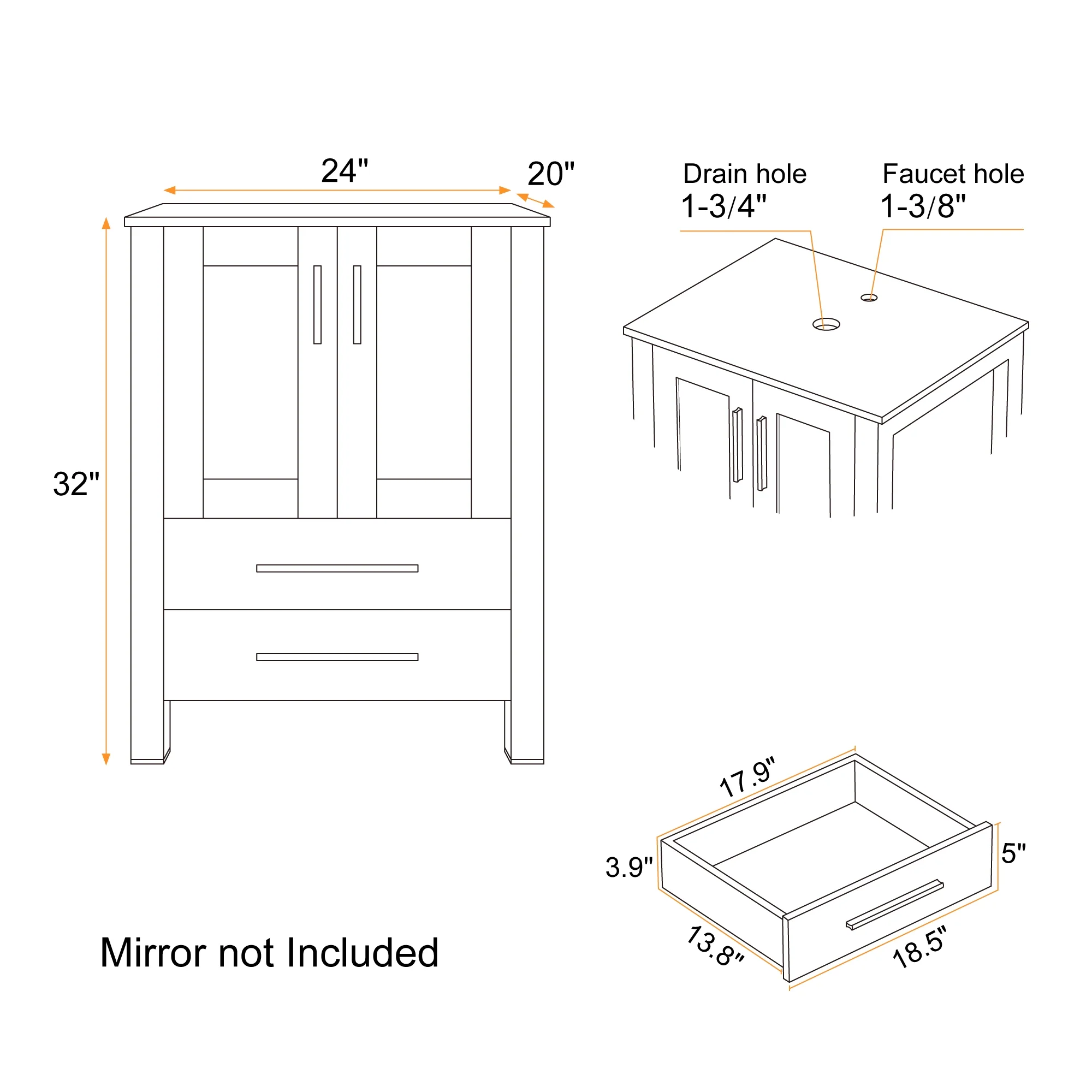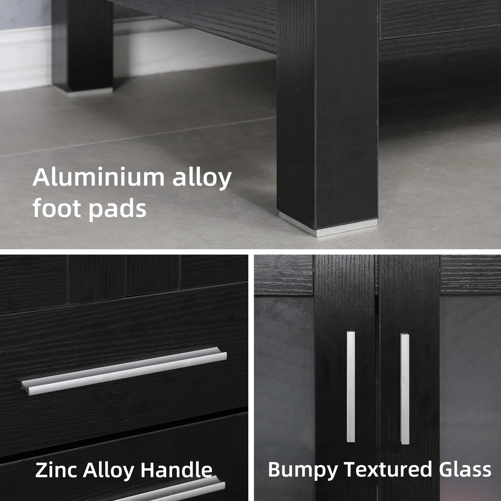 - Fine workmanship and durable manufactured wood tabletop, 15mm/0.6" Thickness and smooth surface board, easy to clean and wear-resistant; Open back making it suitable for different pipes or lines. The distance between the cabinet base and the floor is the height of the feet is 4.3", perfect for avoiding moisture.