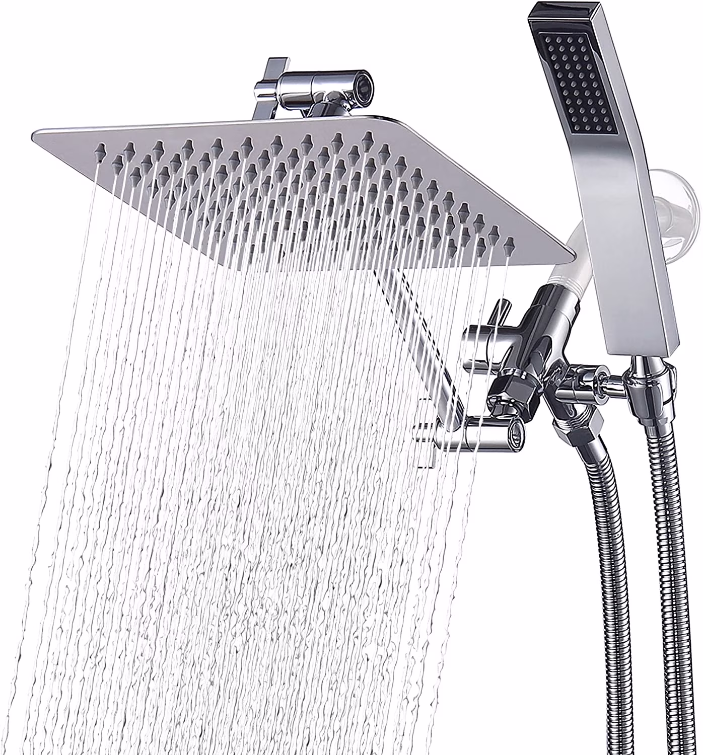 G - Promise All Metal Dual Square Shower Head Combo, 8" Rain Shower Head, Handheld Shower Wand with 71" Extra Long Flexible Hose, Smooth 3 - Way Diverter, Adjustable Extension Arm - A Bathroom Upgrade Polished Chrome