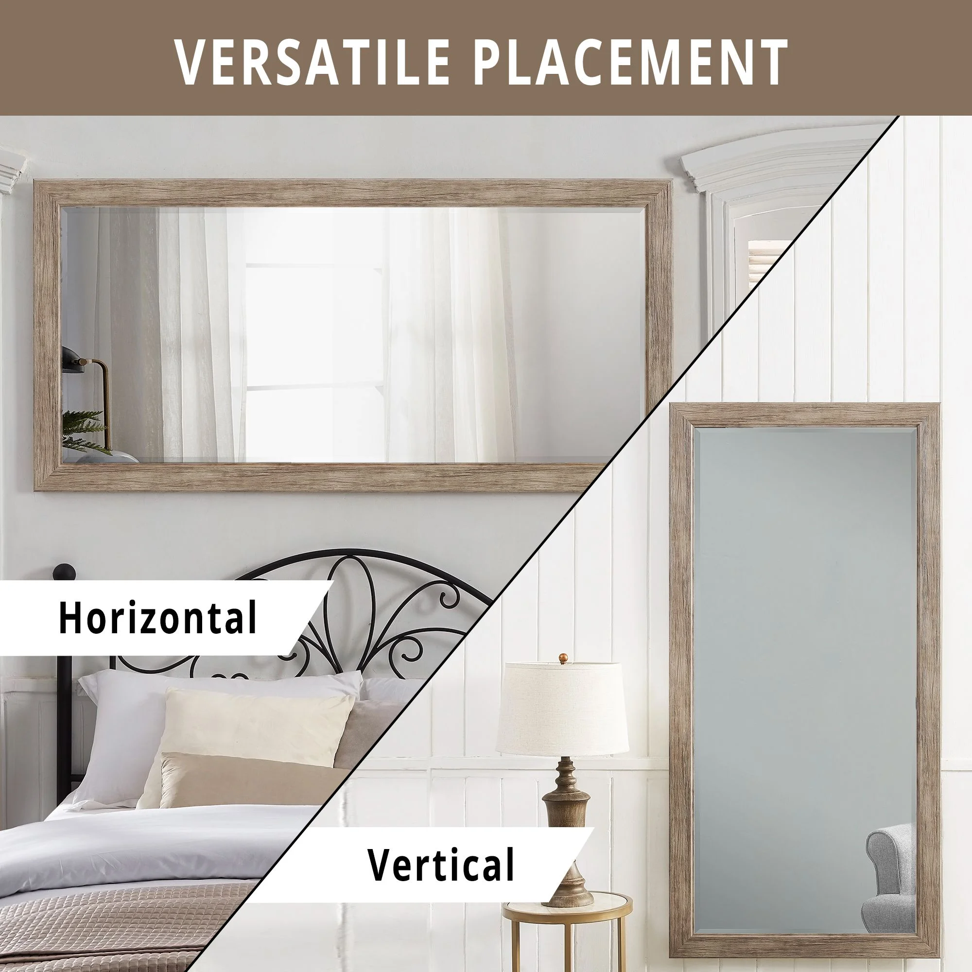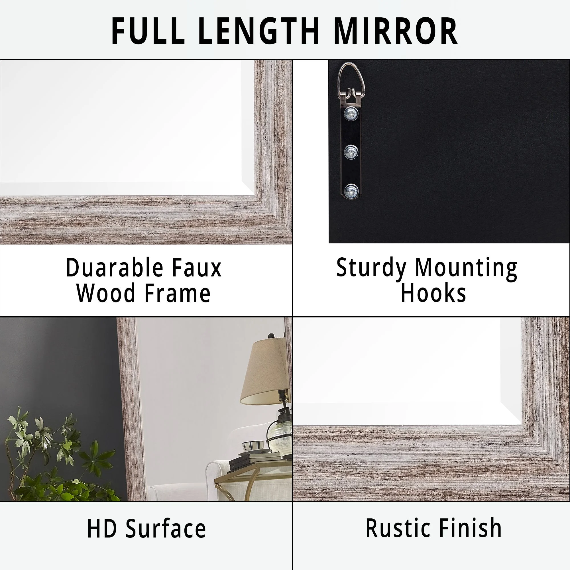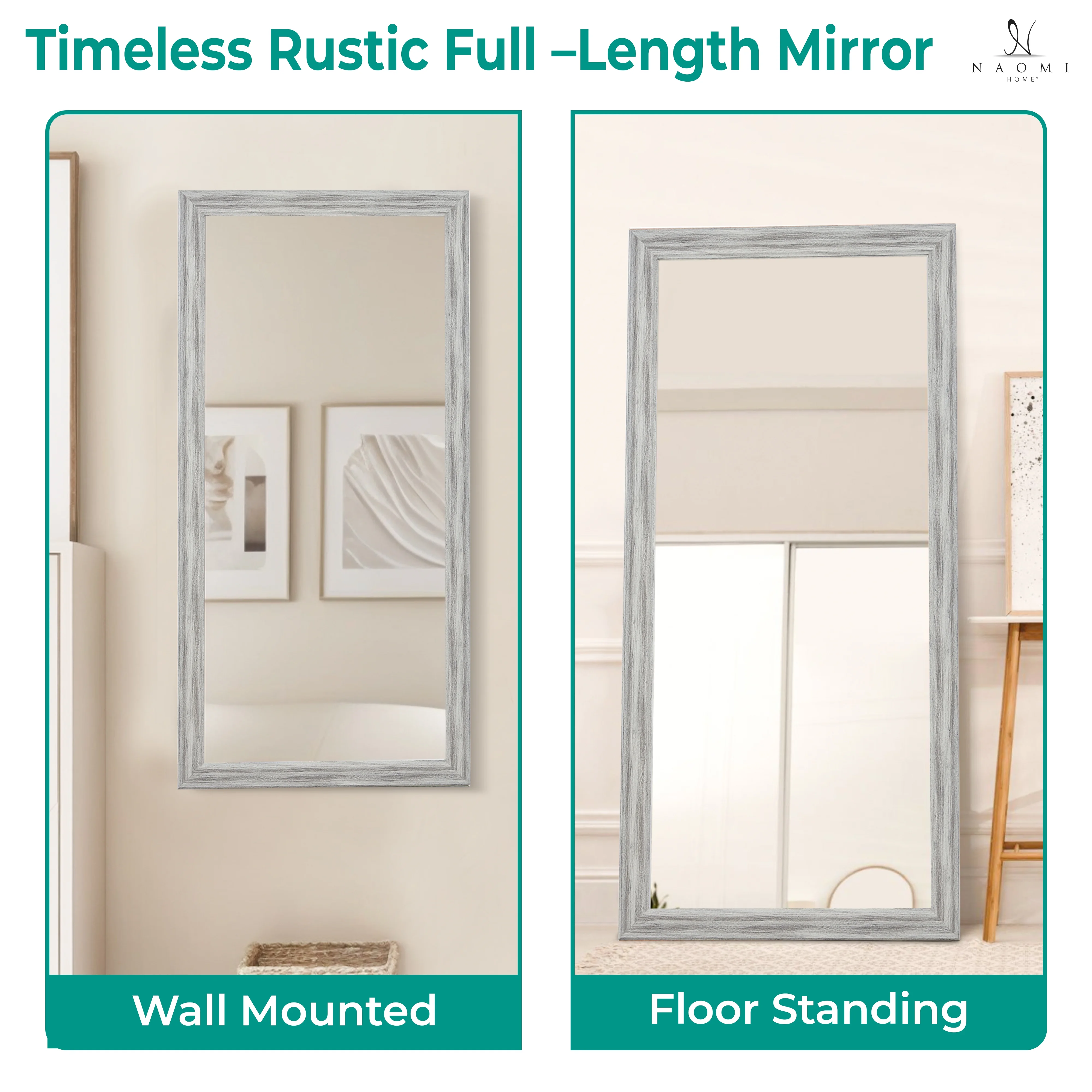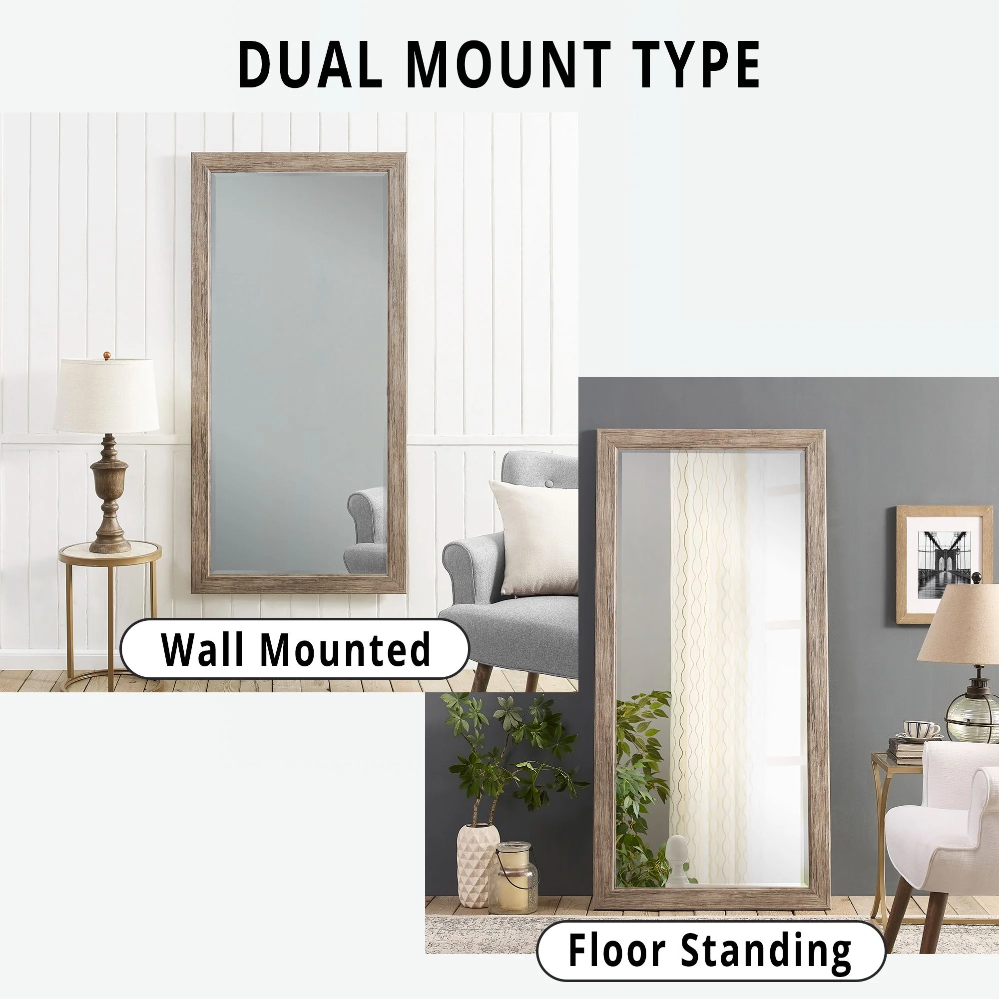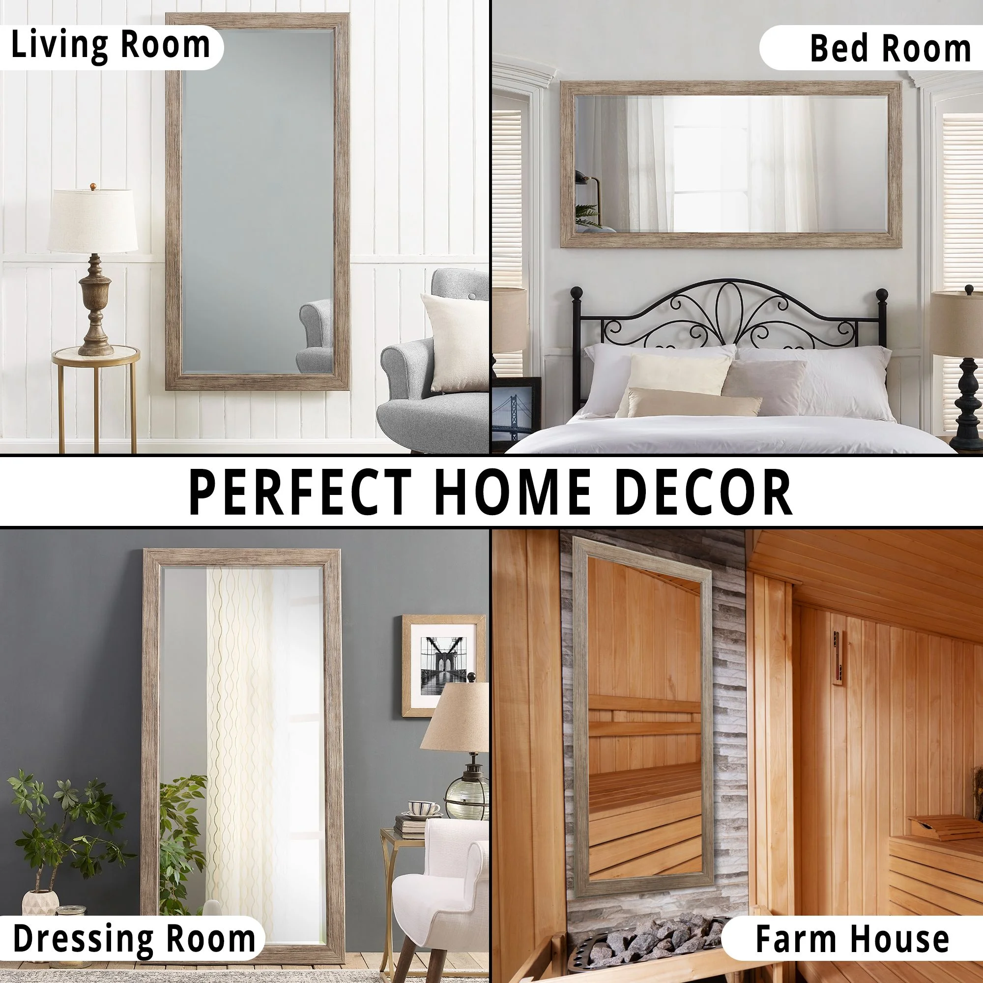 - VINTAGE INSPIRED LOOK: Our Rustic Full Length Mirror is a decorative accent that gives a vintage inspired farmhouse mirror appeal to your decor. Reflect on the beauty of a well-decorated home with this wood floor mirror stand. With an impactful size and timeless coloration hang this wood full length mirror wall mounted to give yourself a place to check your outfit or use it purely to uplift your aesthetic.