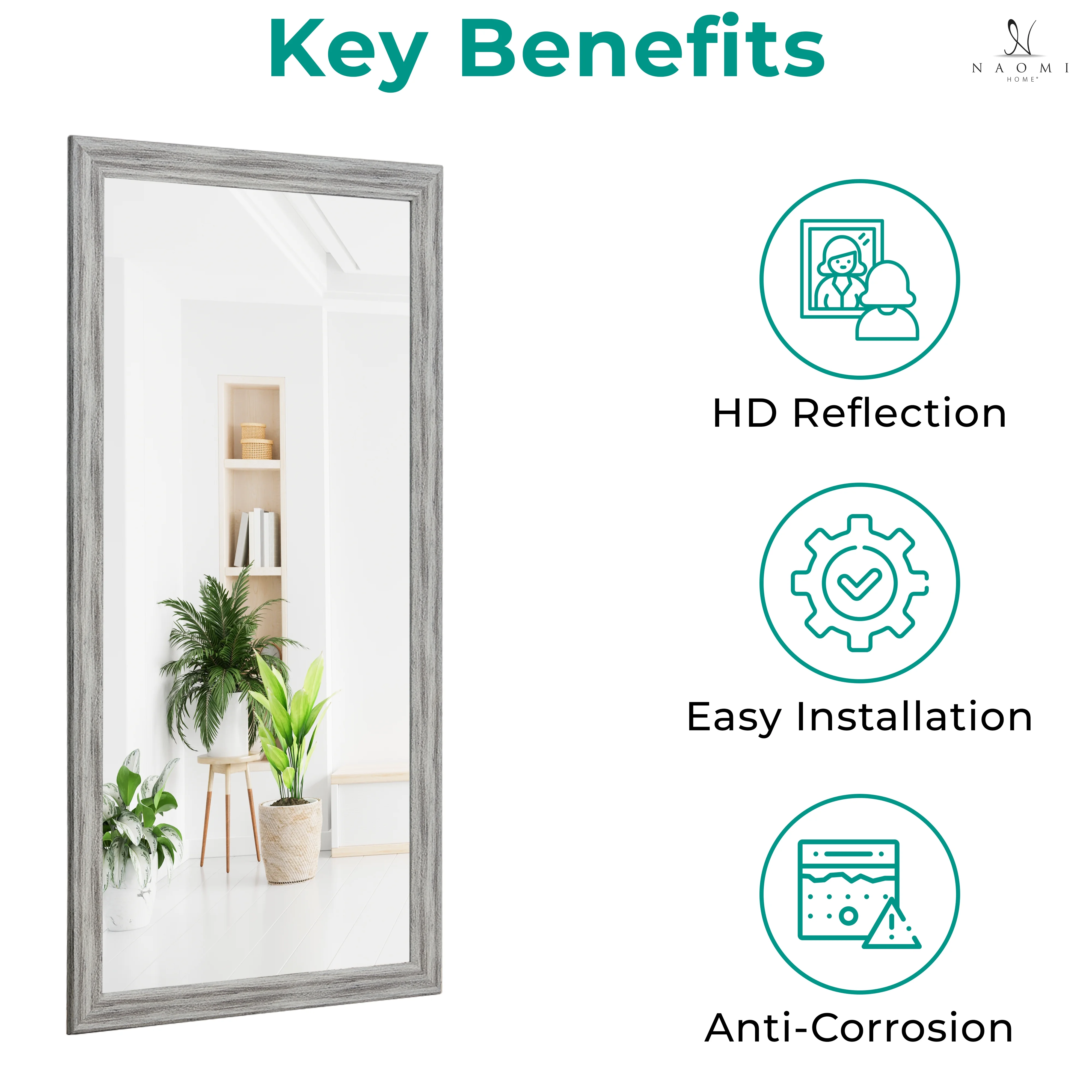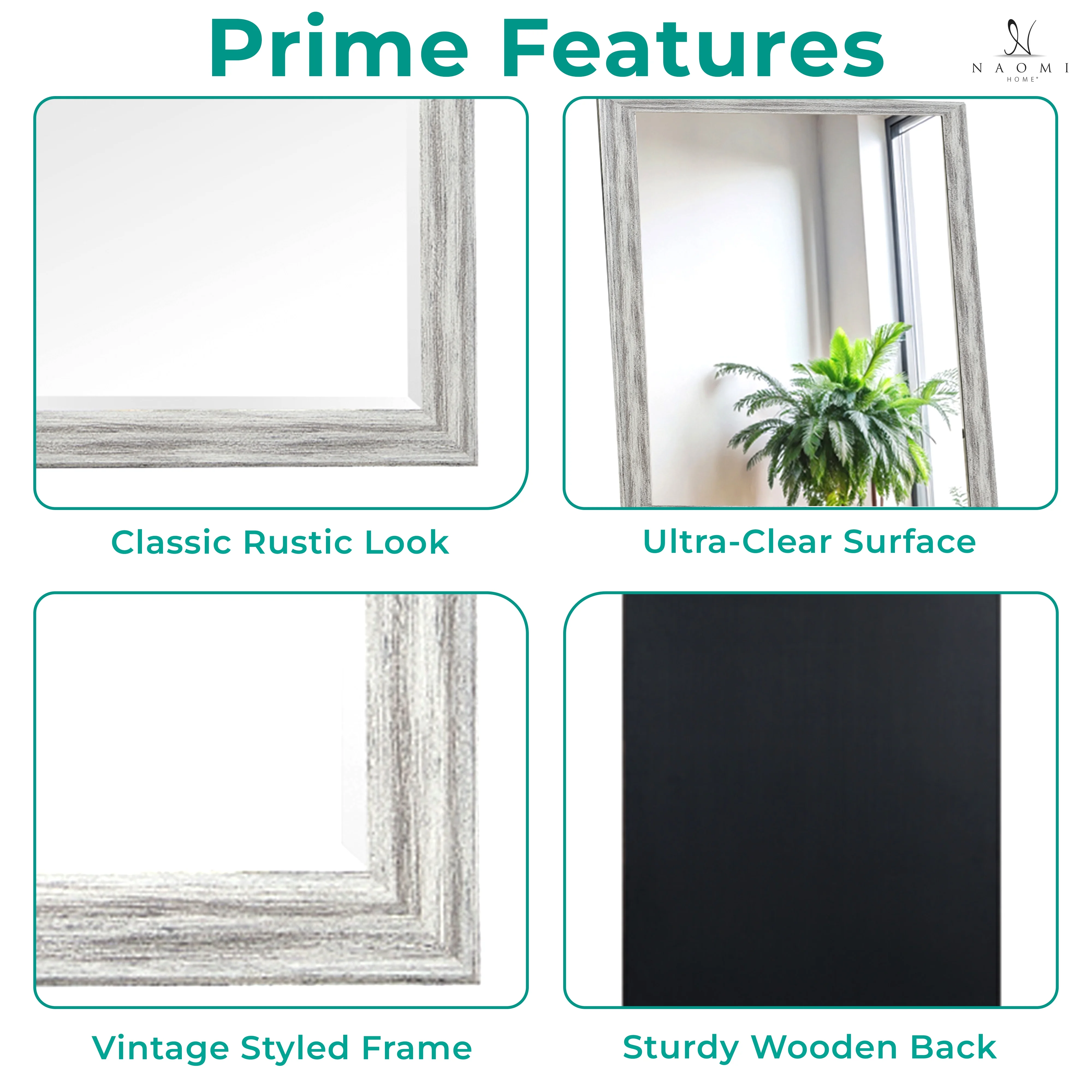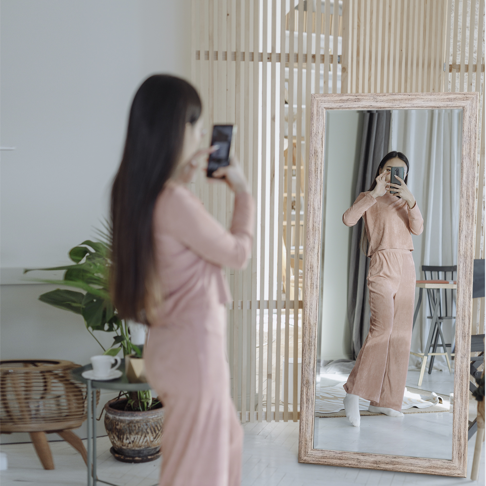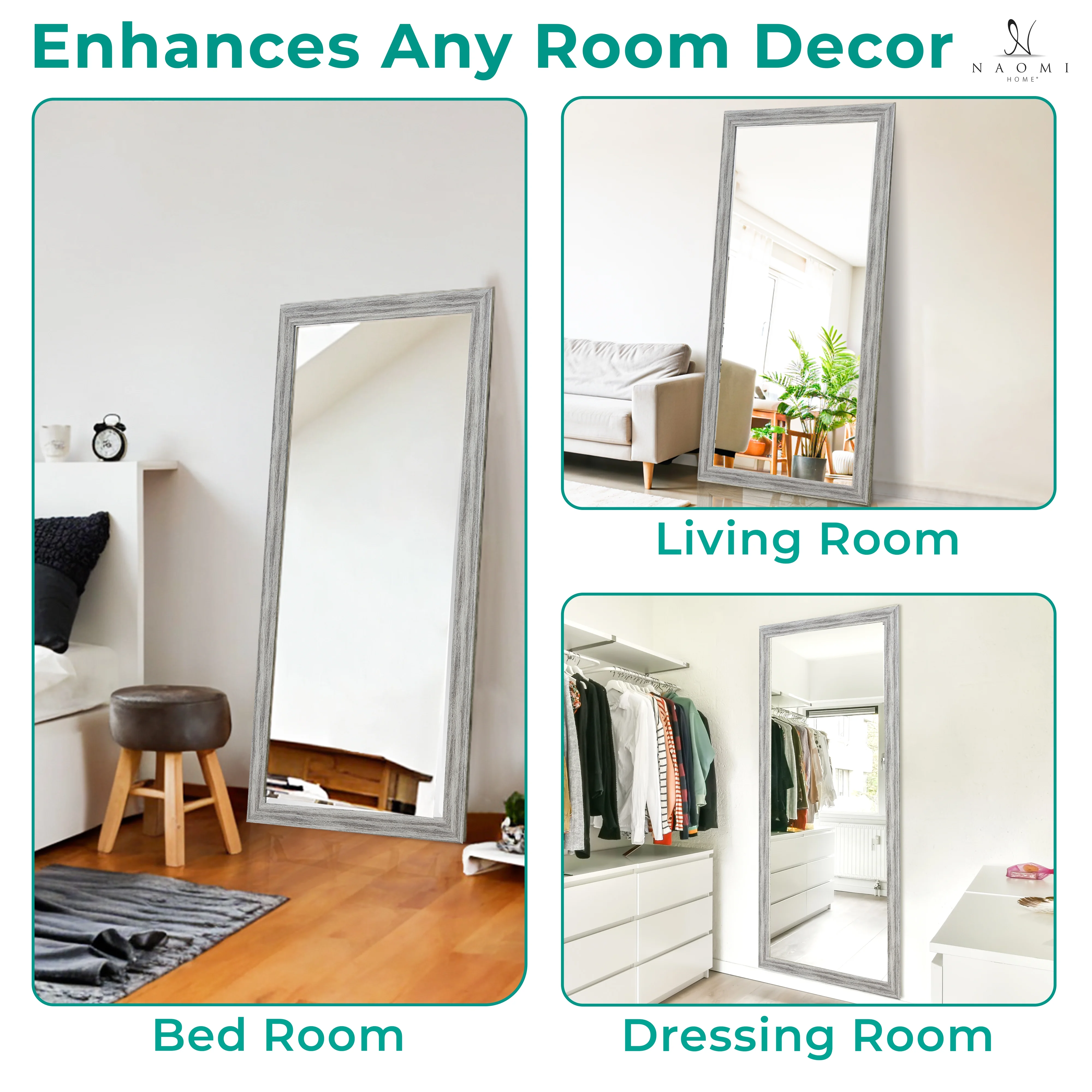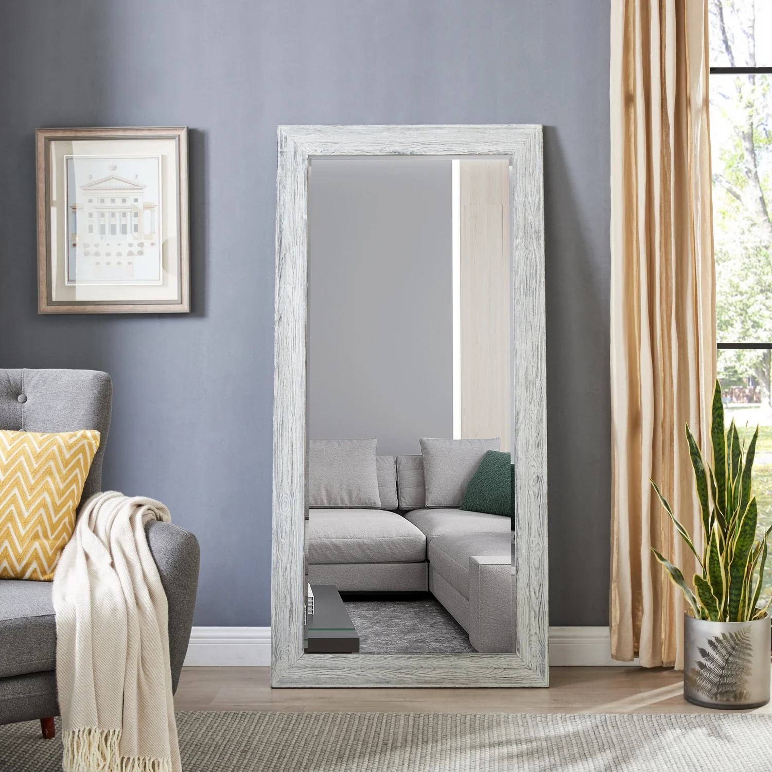- VINTAGE INSPIRED LOOK: Our Rustic Full Length Mirror is a decorative accent that gives a vintage inspired farmhouse mirror appeal to your decor. Reflect on the beauty of a well-decorated home with this wood floor mirror stand. With an impactful size and timeless coloration hang this wood full length mirror wall mounted to give yourself a place to check your outfit or use it purely to uplift your aesthetic.