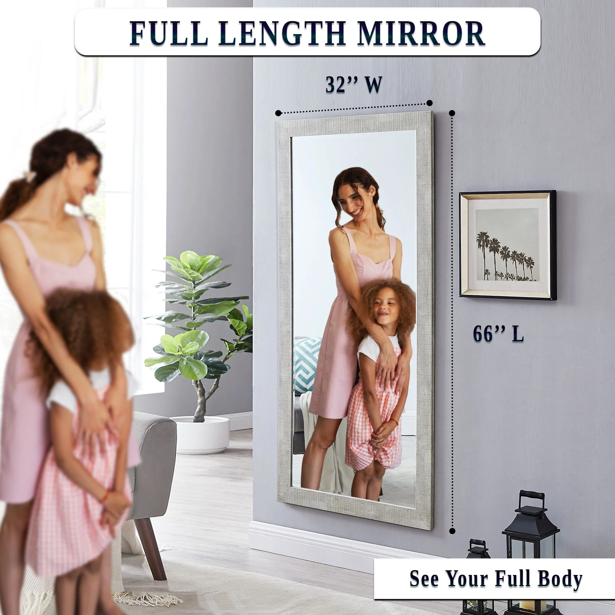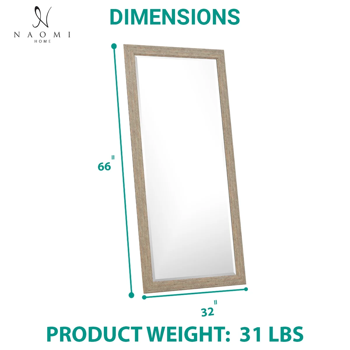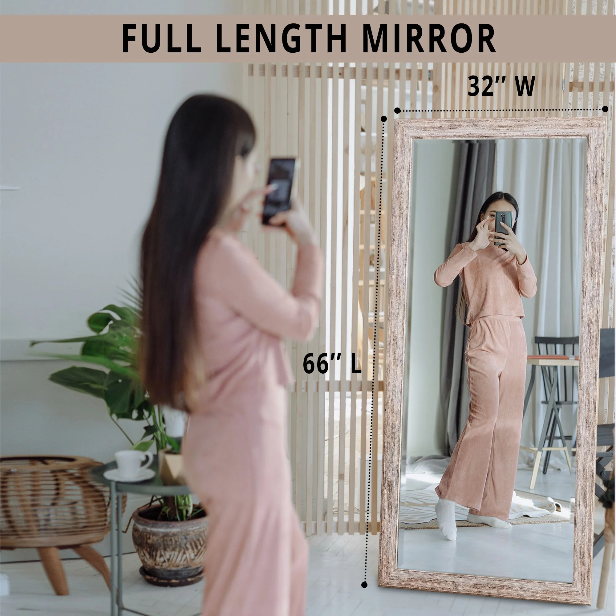 - SOPHISTICATED DESIGN:Our Full length 66" x 32" Rustic Wood frame full length mirror / floor mirror can stand or hang vertically on the wall. The frame is durable long-lasting and keeps this full body mirror sturdy and safe on the floor or a wall. The glass�?thickness is 2" and offers HD reflection.