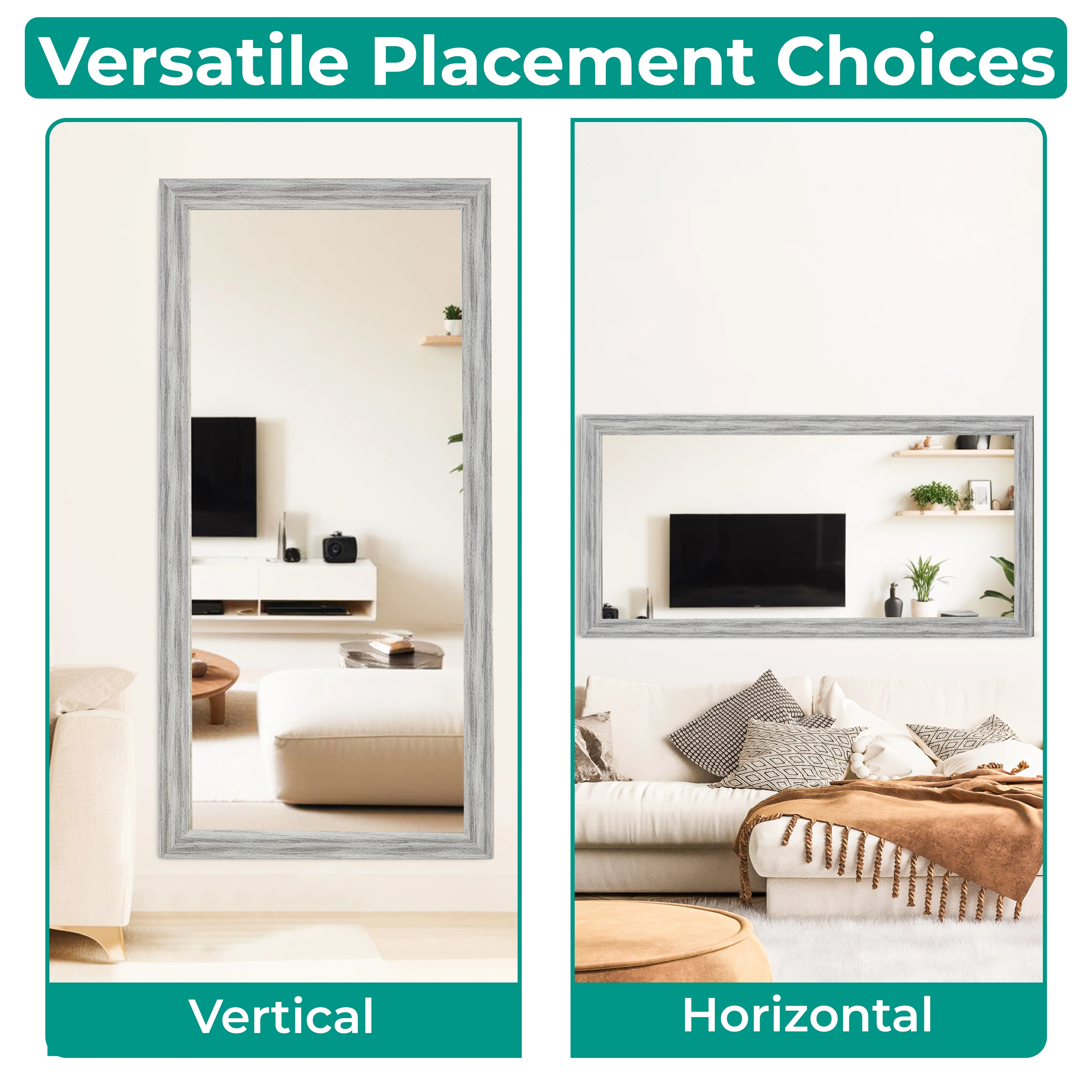 - FLOOR OR HANGING WALL MIRROR: This farmhouse full length mirror is a unique piece that allows you to hang the rustic floor mirror vertically or horizontally, or you can lean it against the wall for instant elegance. The choice is yours! The simple design of this wooden mirror full length is suitable for every room in your home.