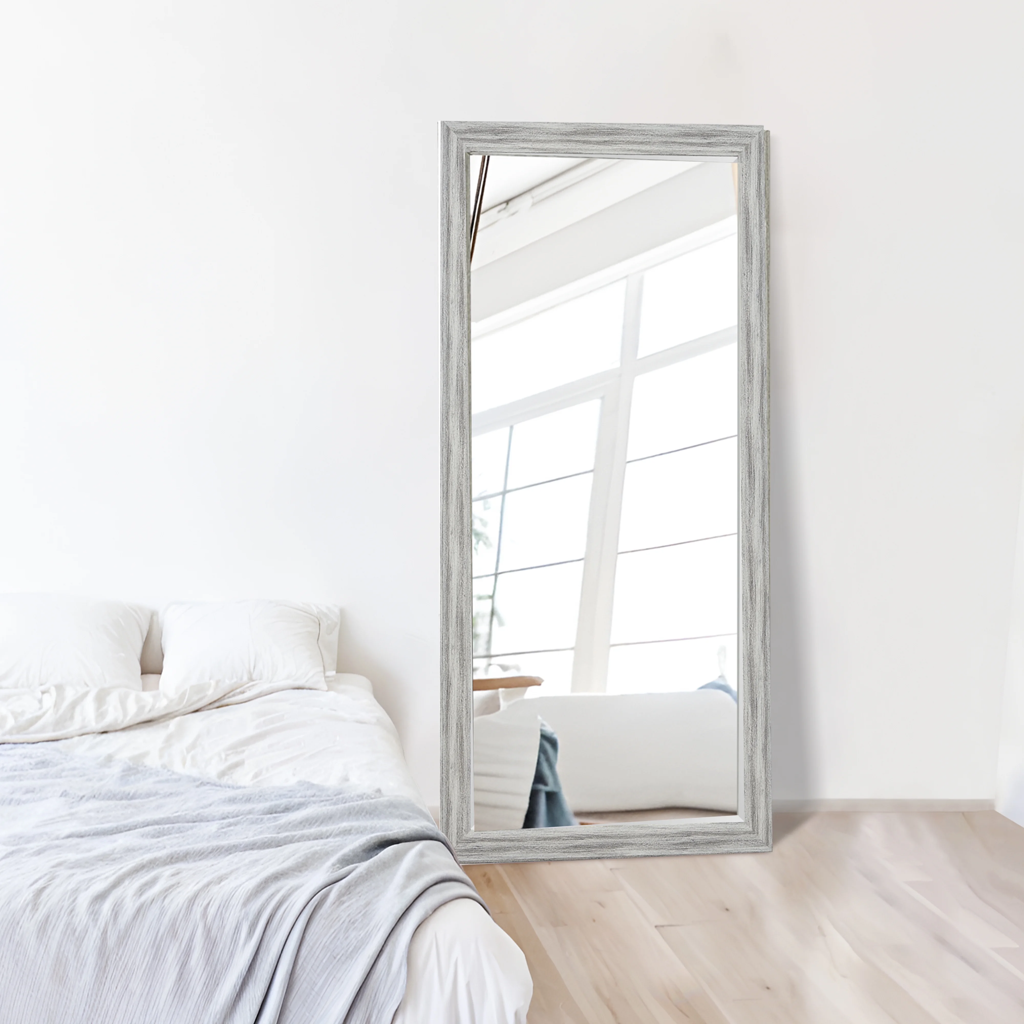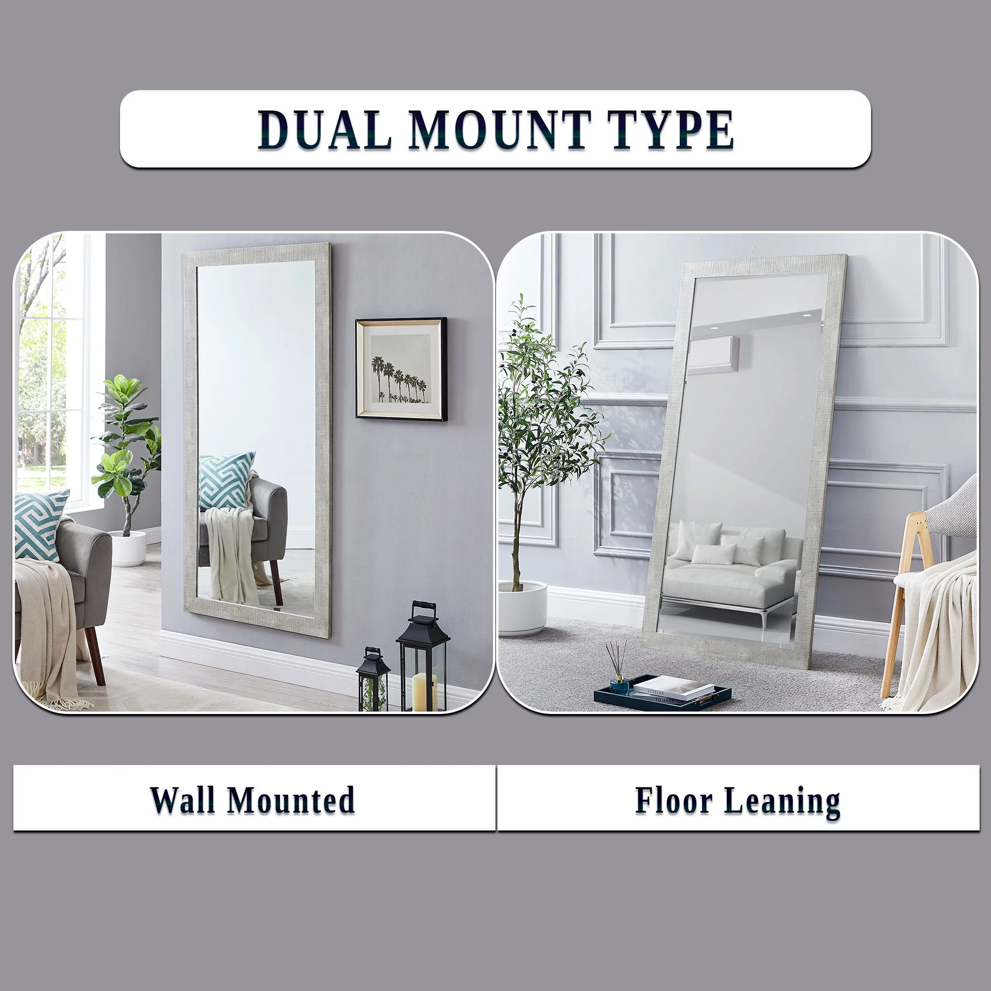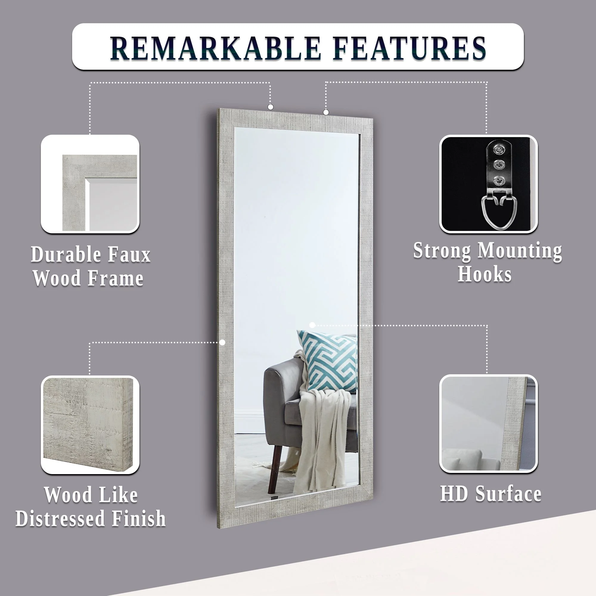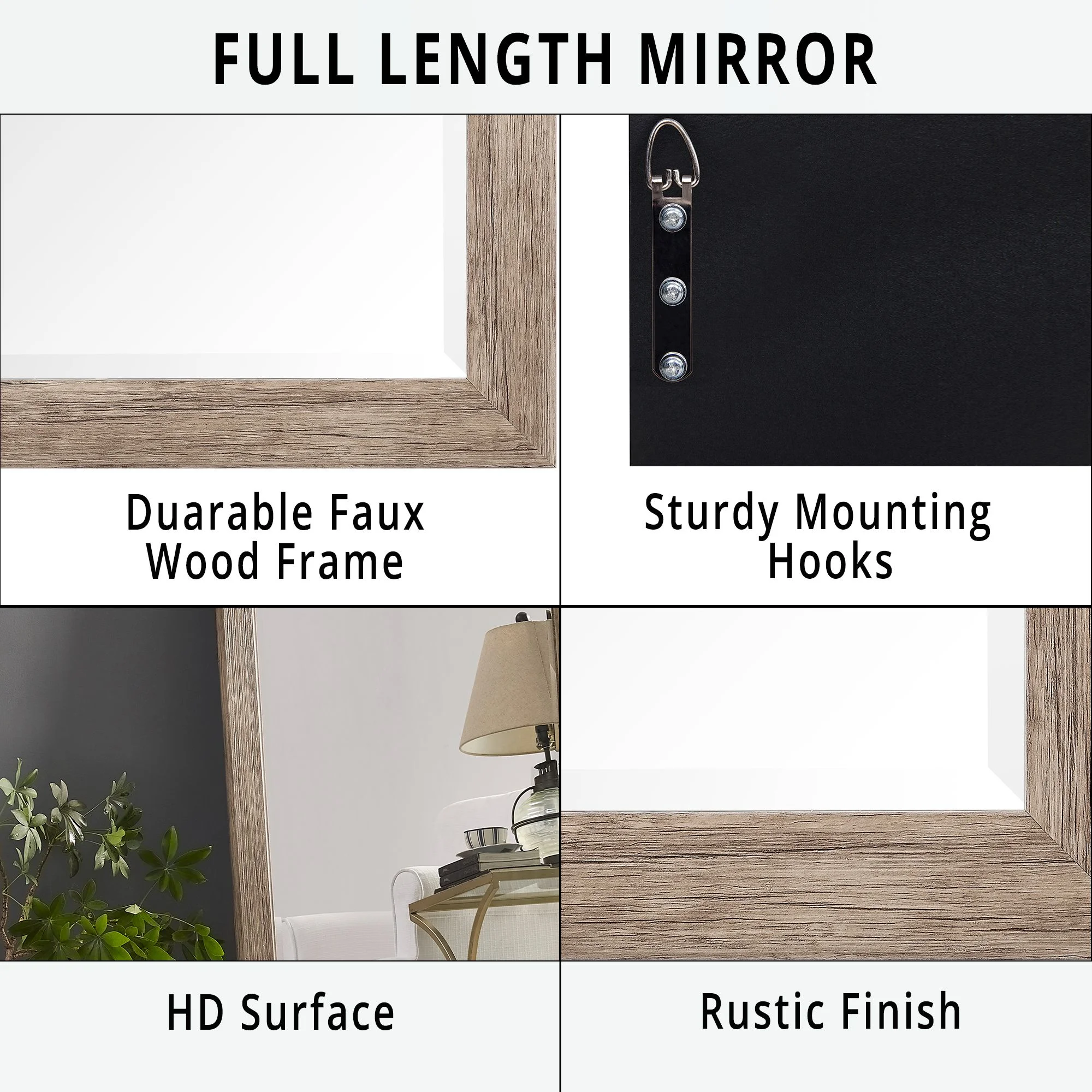- SOPHISTICATED DESIGN: Our Rustic Full length Mirror 66" x 32" Faux Wood frame full body mirror / wood mirror, can stand or hang vertically on the wall. The frame of the framed full length mirror is durable, long-lasting and keeps this rustic floor mirror sturdy and safe on the floor or a wall. The rustic bathroom mirror glass thickness is 2", and offers HD reflection.