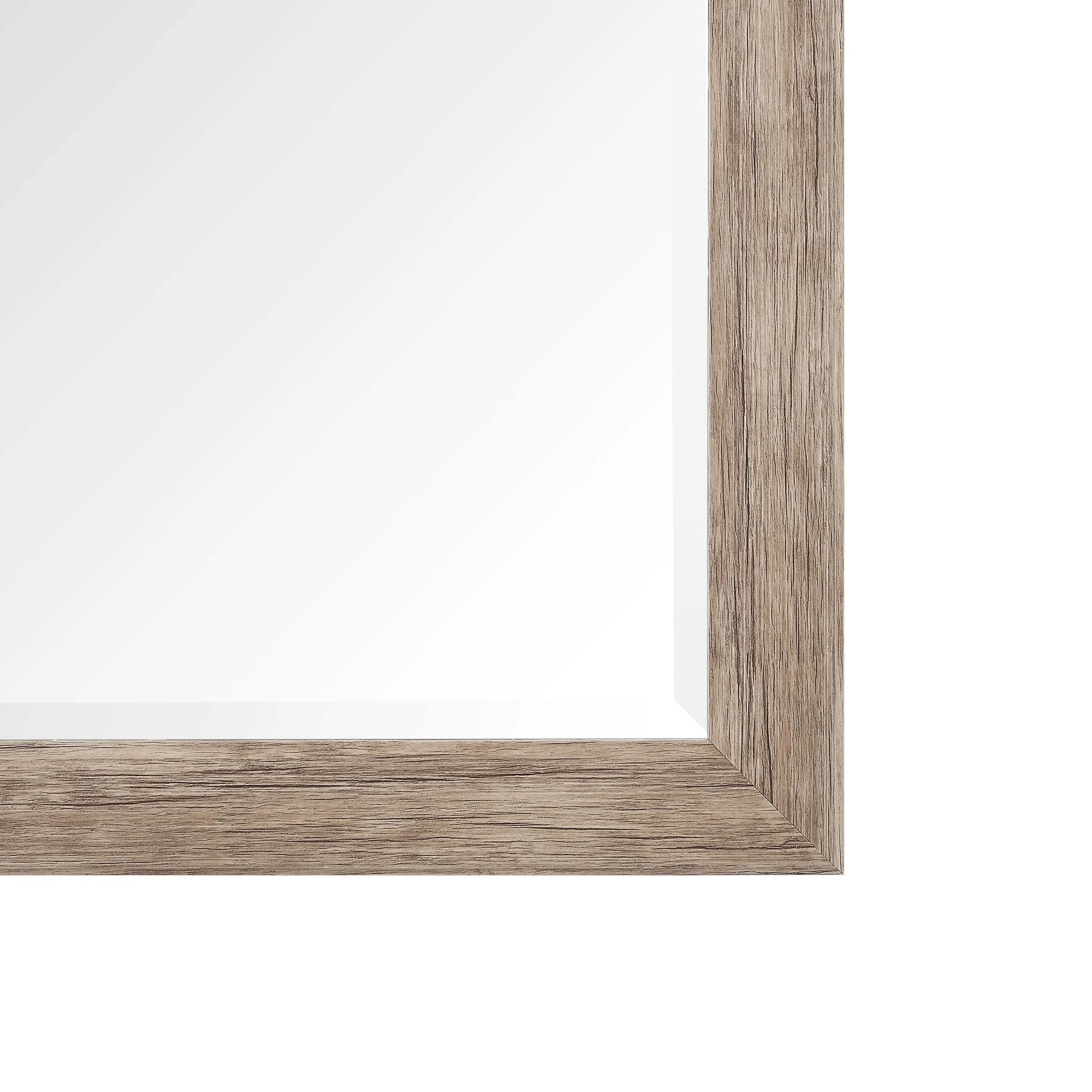 - UNFINISHED RUSTIC WOOD FINISH: The rustic full length mirror wood frame wall mounted has a high-quality faux wood that adds a timeless vibe with its rustic barn wood finish. This farmhouse bathroom mirror has clear, distortion-free glass that creates lifelike images and adds visual depth and brightness to your environment.