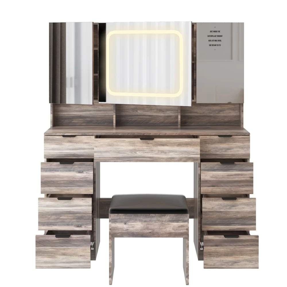 - Ample Storage Space: In addition to the shelves behind the mirror, this vanity also provides 3 storage compartments on tabletop, 9 drawers, 3 tabletop shelves, and 2 staggered tabletops to keep all your makeup, skincare, and accessories neatly organized and easily accessible.