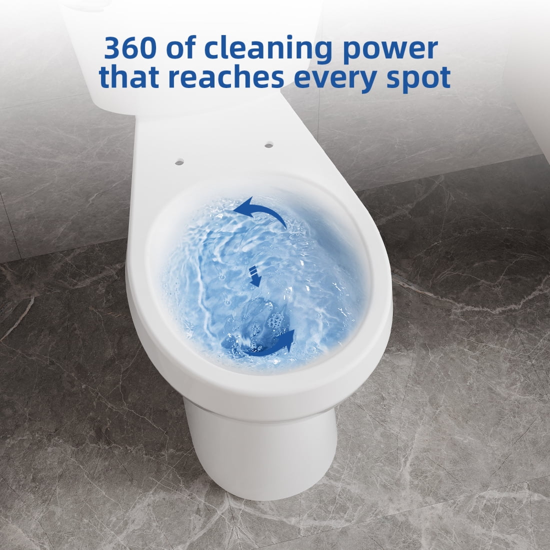 - Powerful Flushing Toilet: With Powerful Siphon Flushing, Toilet clog-free after using. High water levels discharge water rapidly and powerfully, a gentle press to flush out strong water flow; Hidden water holes 360-degree jet for spiral scrubbing, roll away dirt in hard-to-notice corners. Provides ample flushing power to ensure a clean, clog-free, leak-free, water-saving toilet
