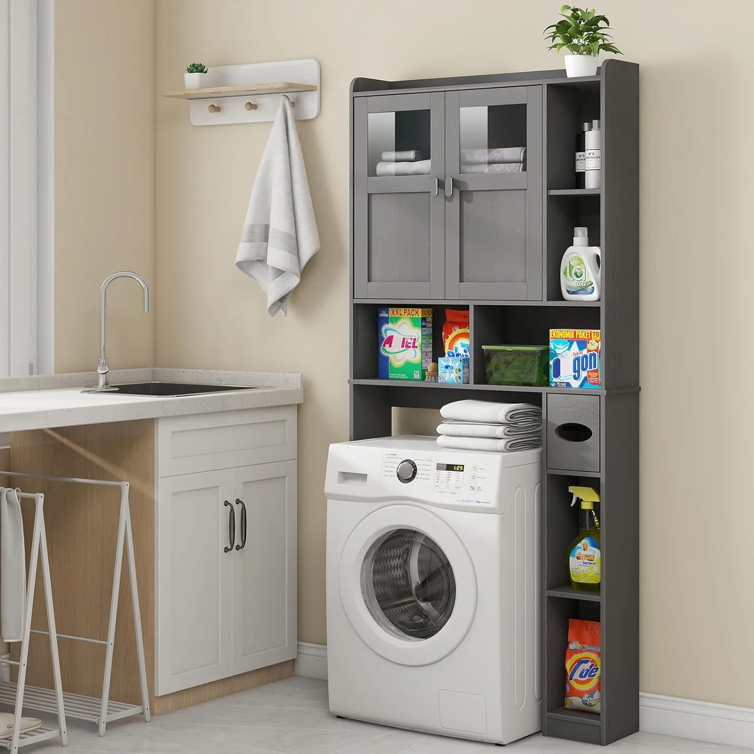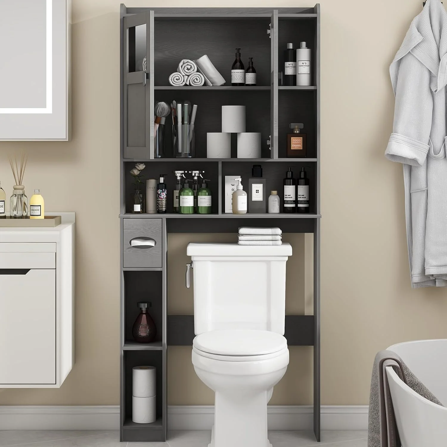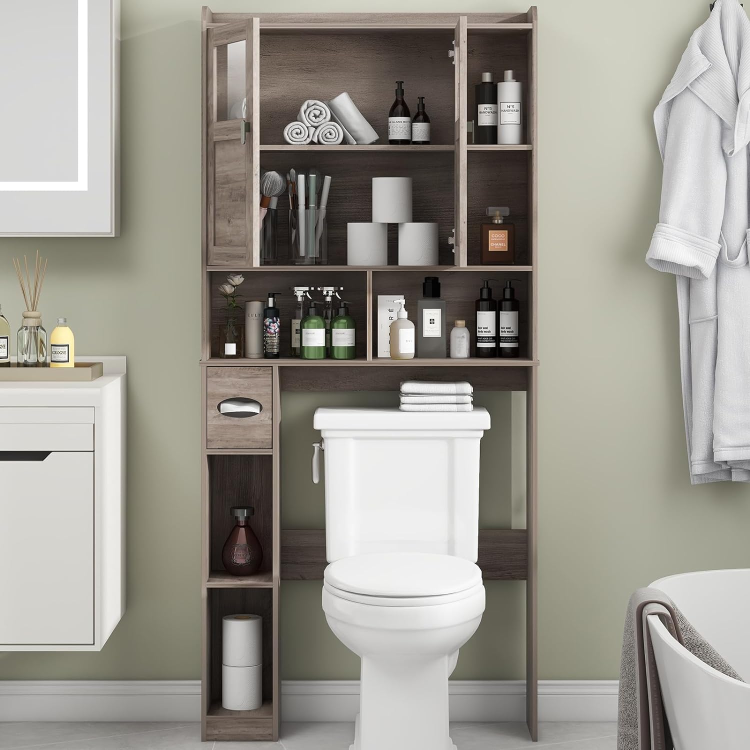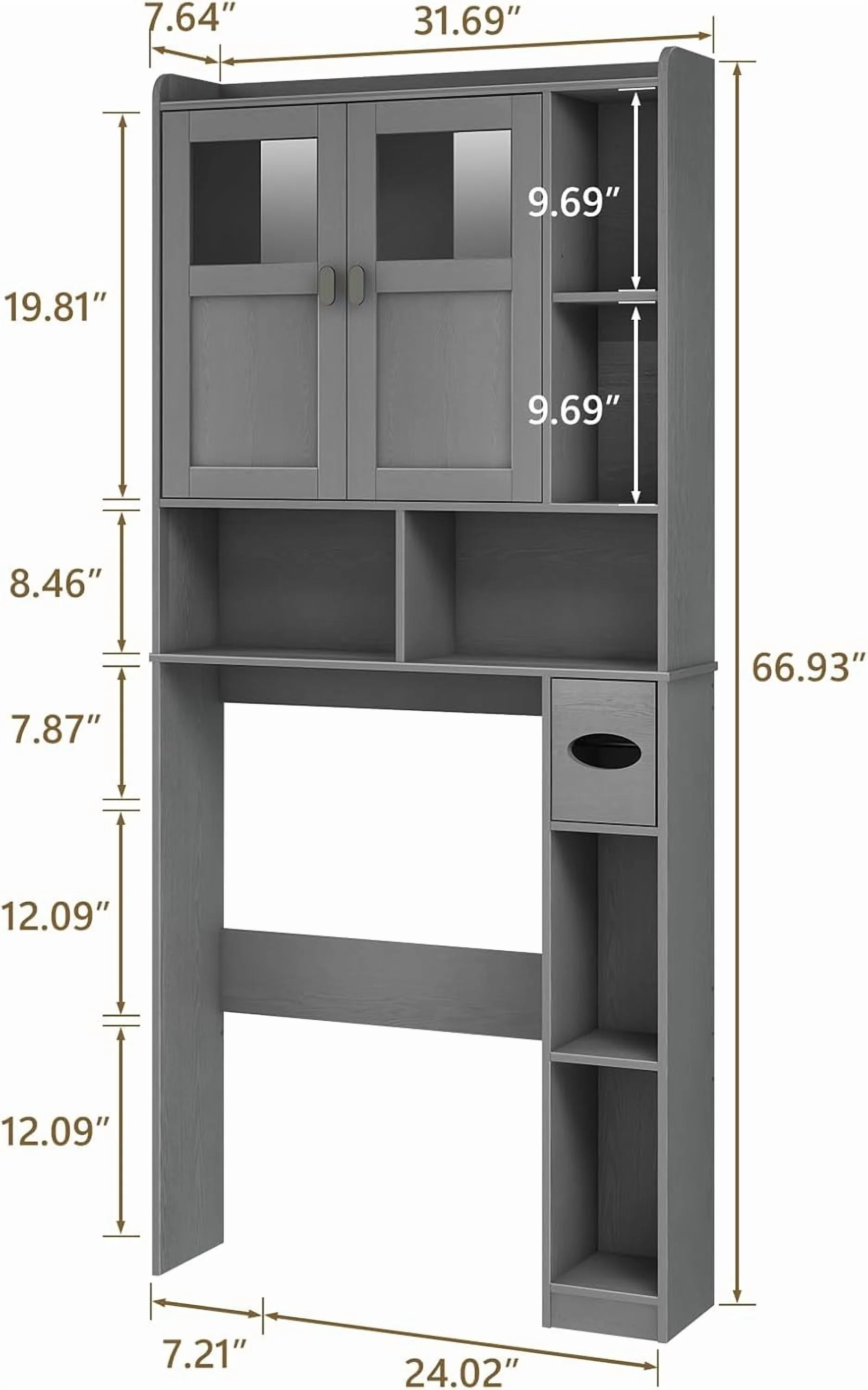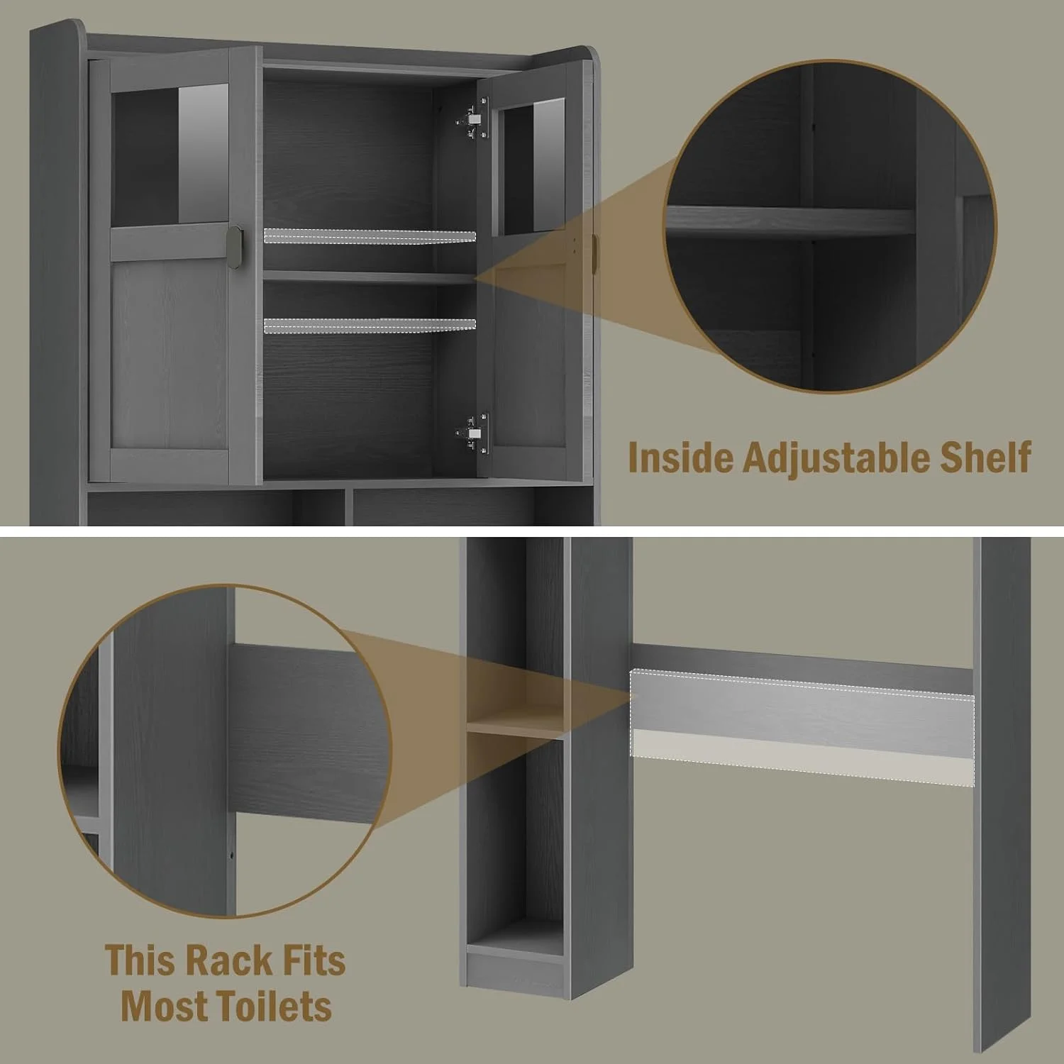 - 【Premium Material, Sturdy Safty】Aa over the toilet storage cabinet is constructed of high-quality engineered wood, sturdy and durable. Over the toilet shelf cabinet equipped with an anti-tip device that can anchor to the wall to ensure safety and stability.