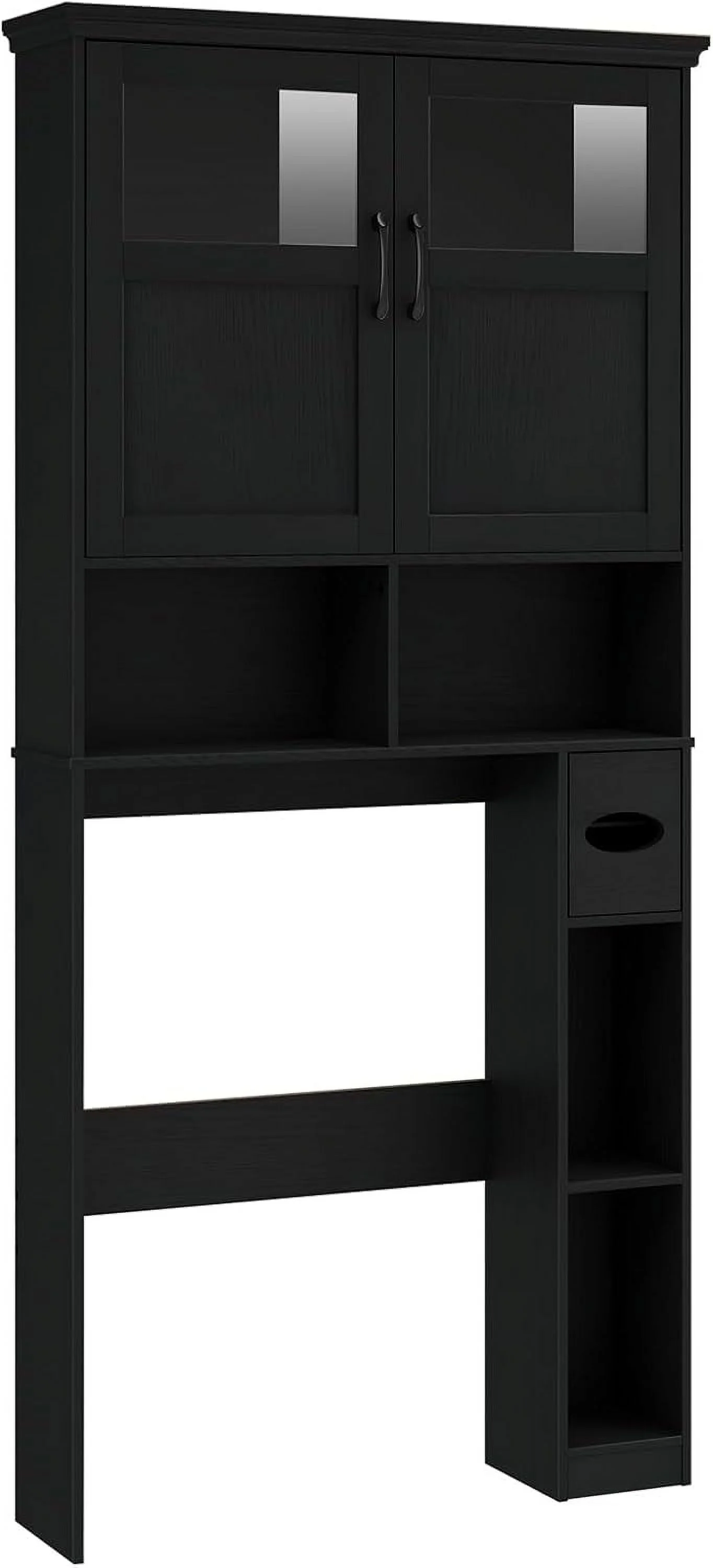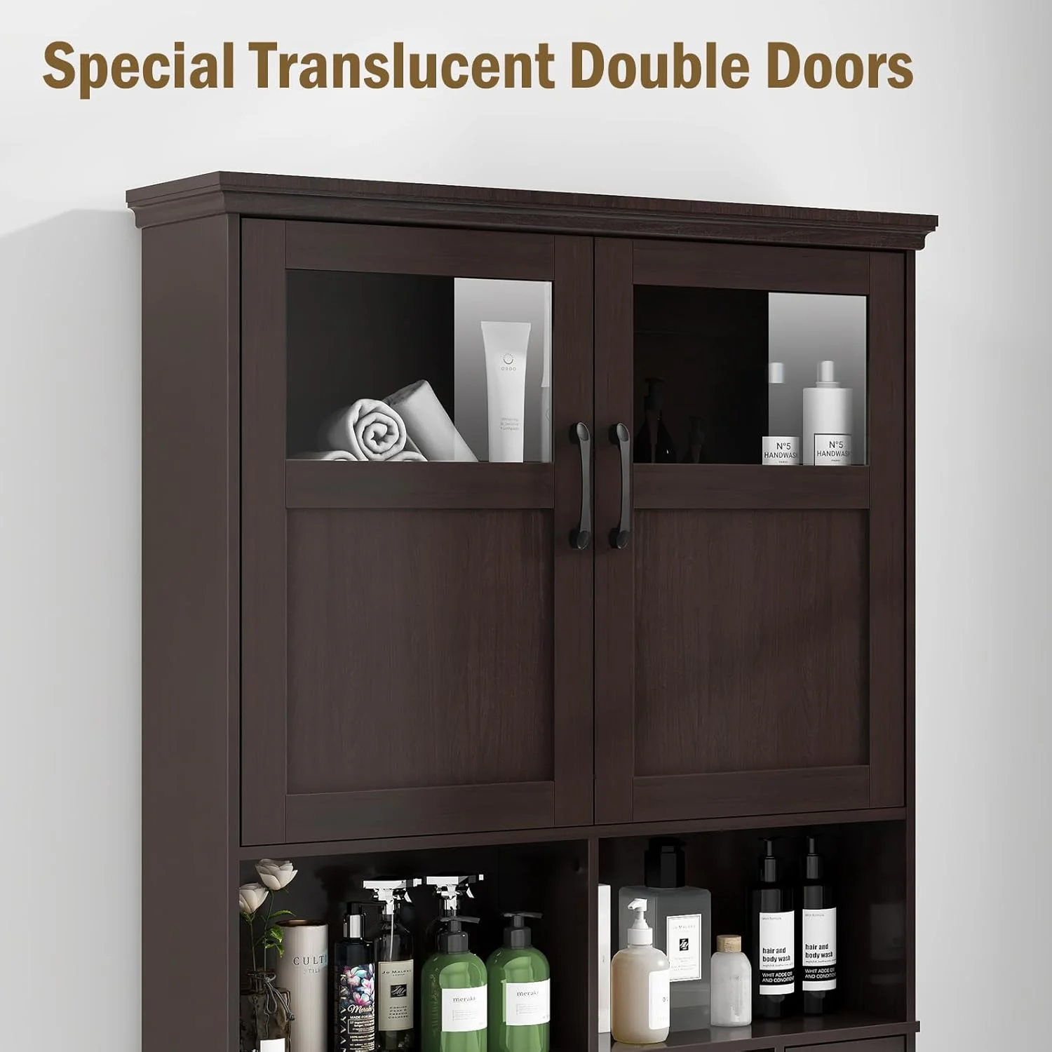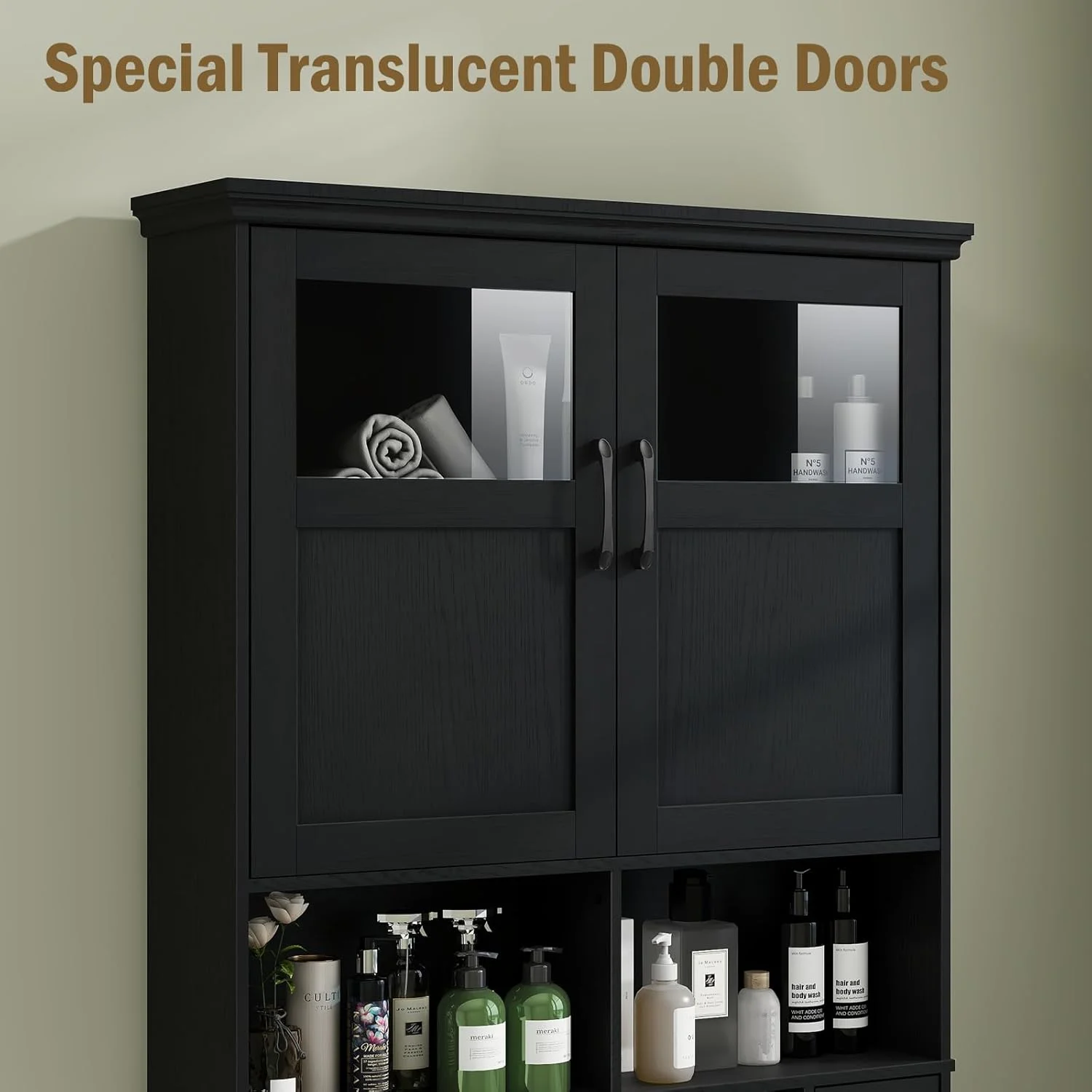 - 【Elegant Design, Modern Style】Designed with a modern and simple style for a charming look, this black bathroom storage cabinet with translucent double doors will blend well with any room style or decor. Bring your room to life and create a cozy atmosphere!