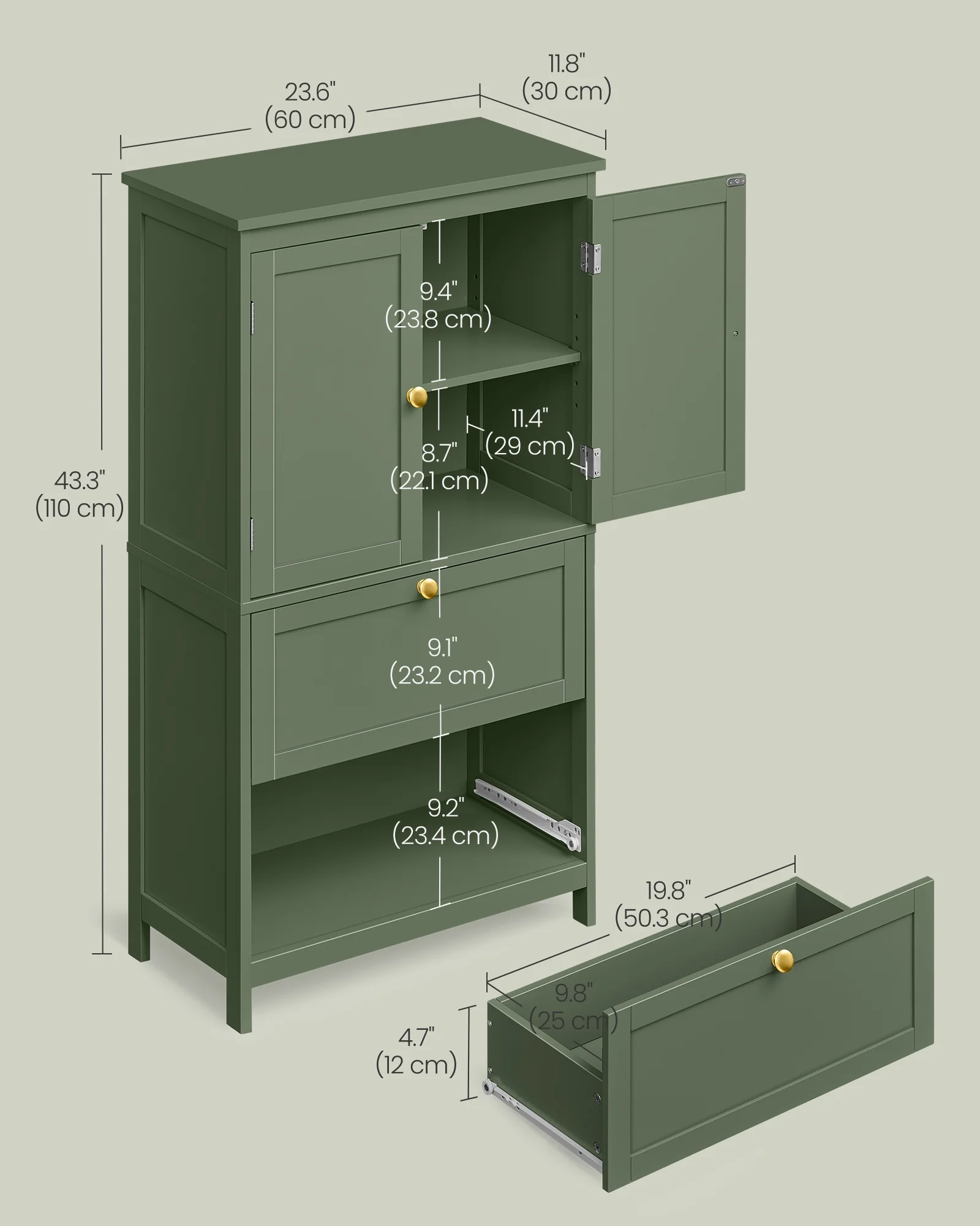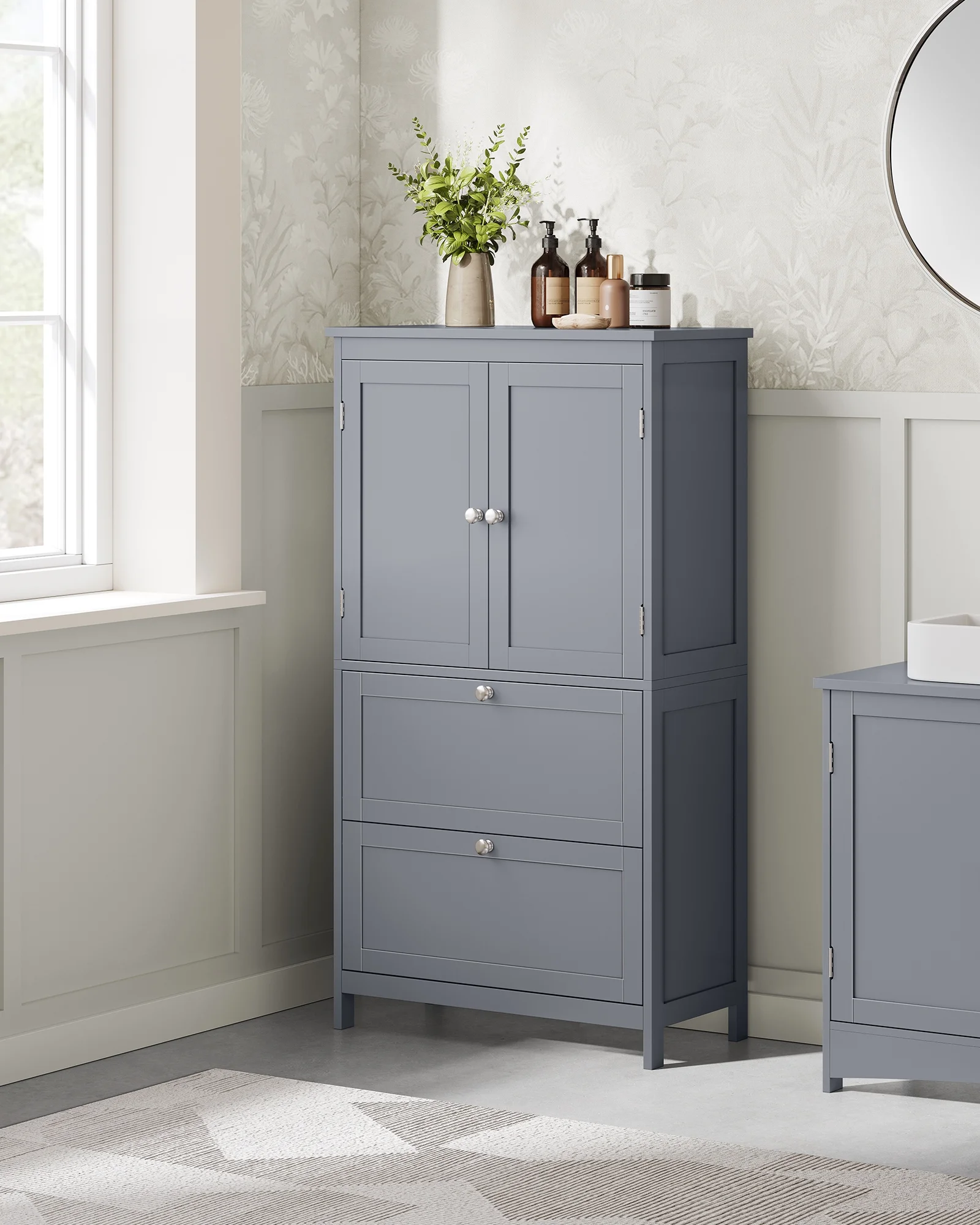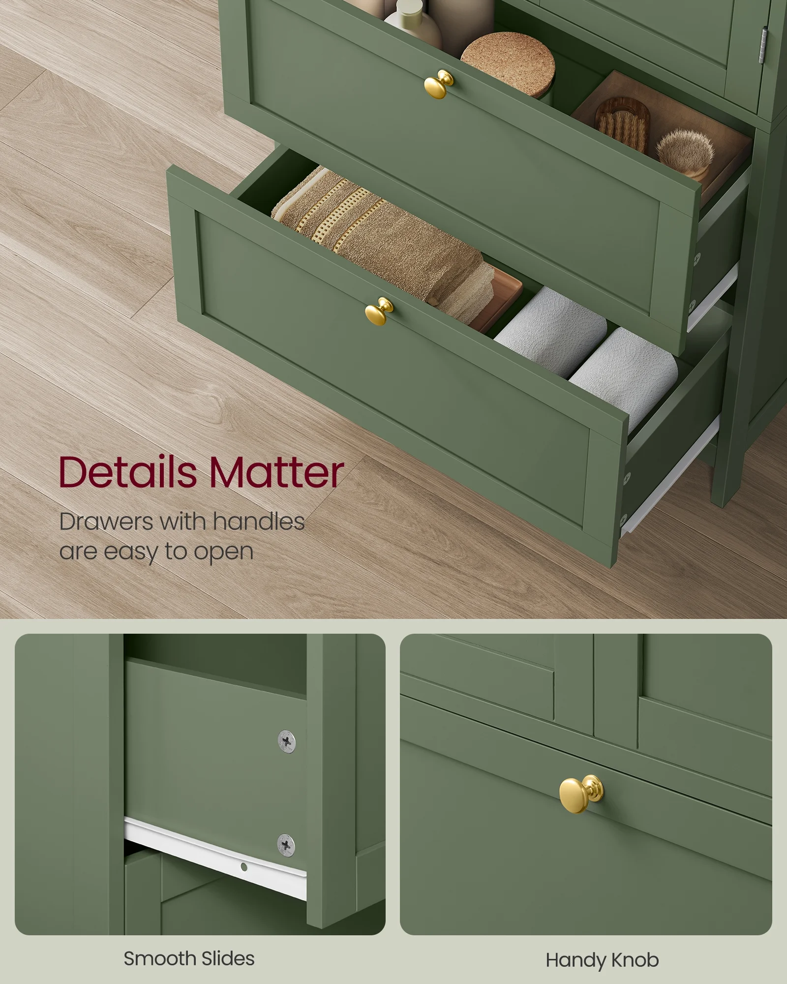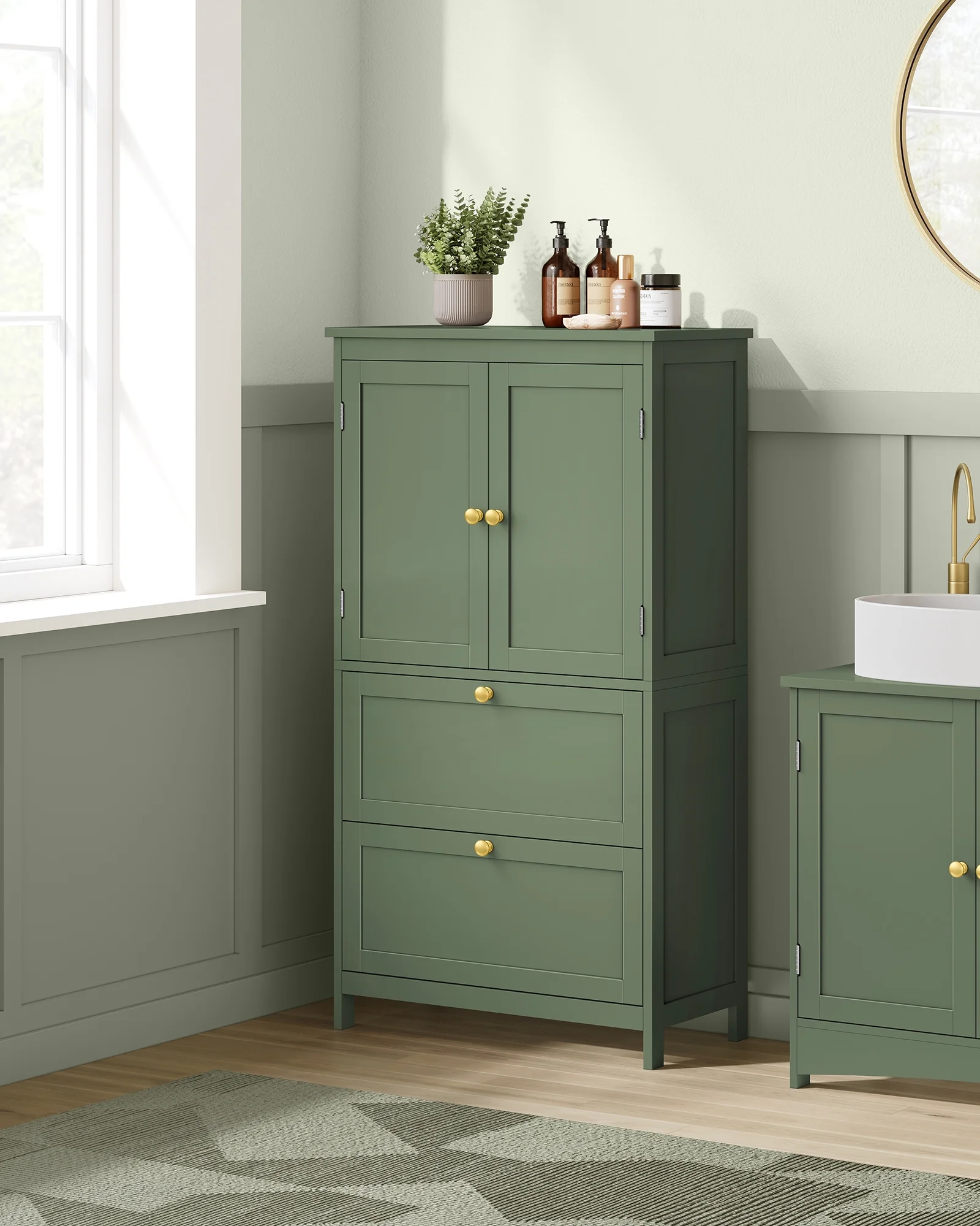 - [Combines Quality & Style] Crafted from high-quality MDF and equipped with an anti-tip device, this storage unit is durable and stable. Its stylish decorative panels enhance the look of your bathroom