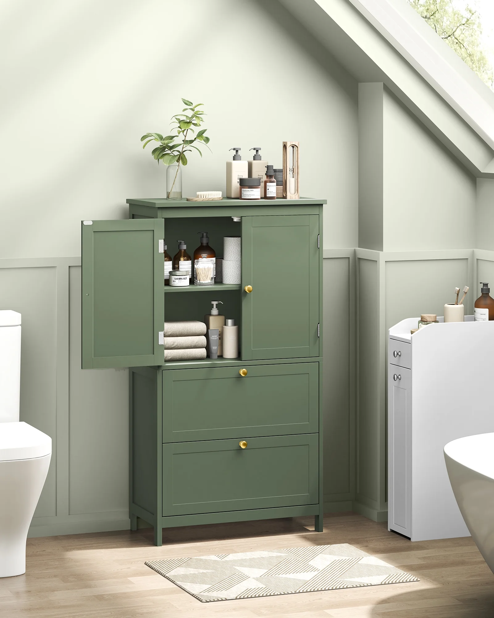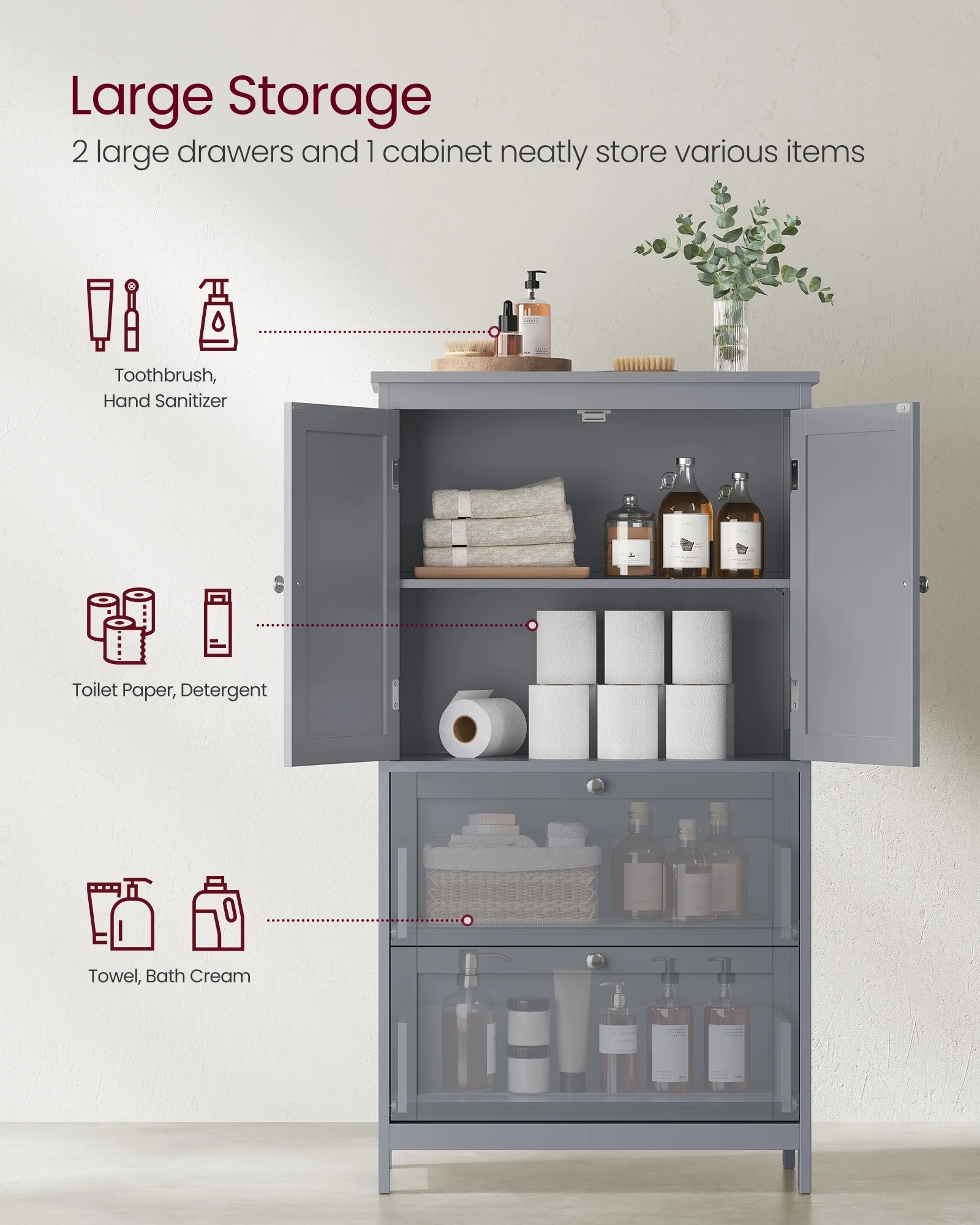 - [Plenty of Storage] This cabinet offers a spacious cabinet and 2 large drawers, providing ample space for organizing both daily toiletries and spare items