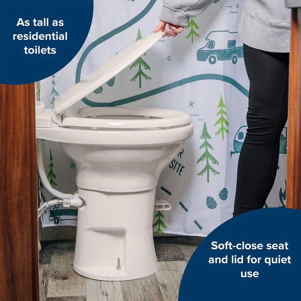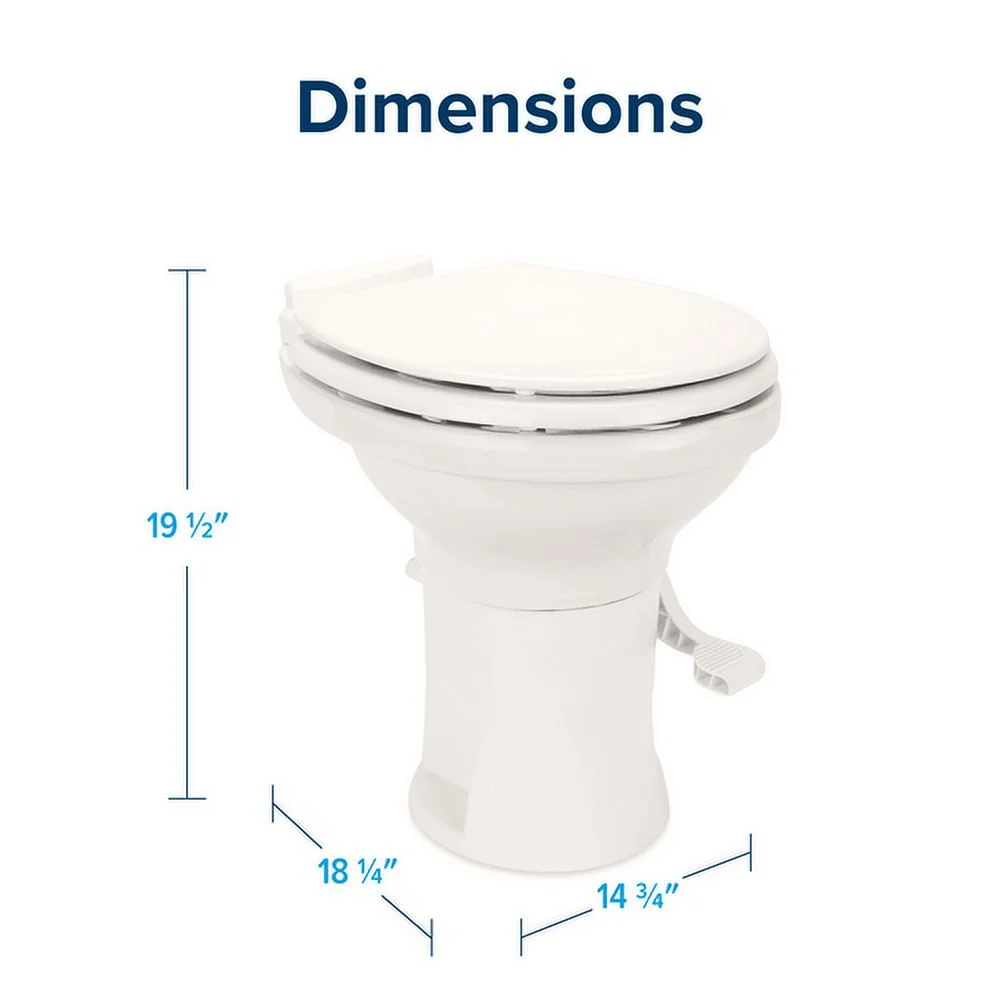 - PREMIUM RV TOILET UPGRADE: This standard-size, ergonomic RV toilet with ceramic bowl offers a stylish and comfortable RV toilet upgrade. It features a full-size ergonomic design for superior room and performance.