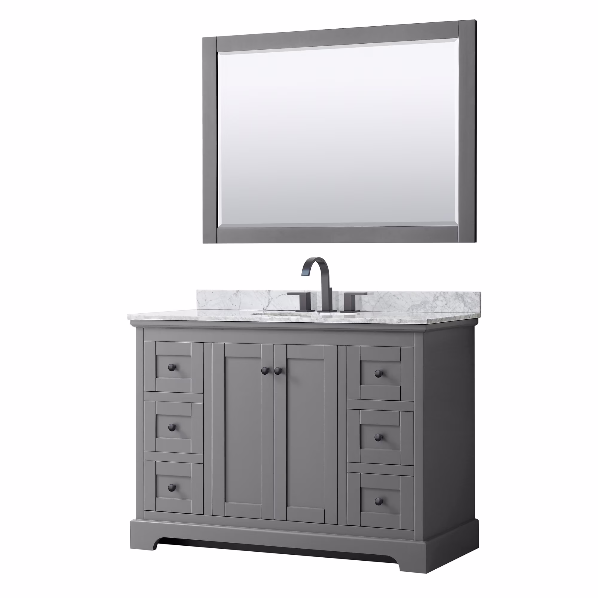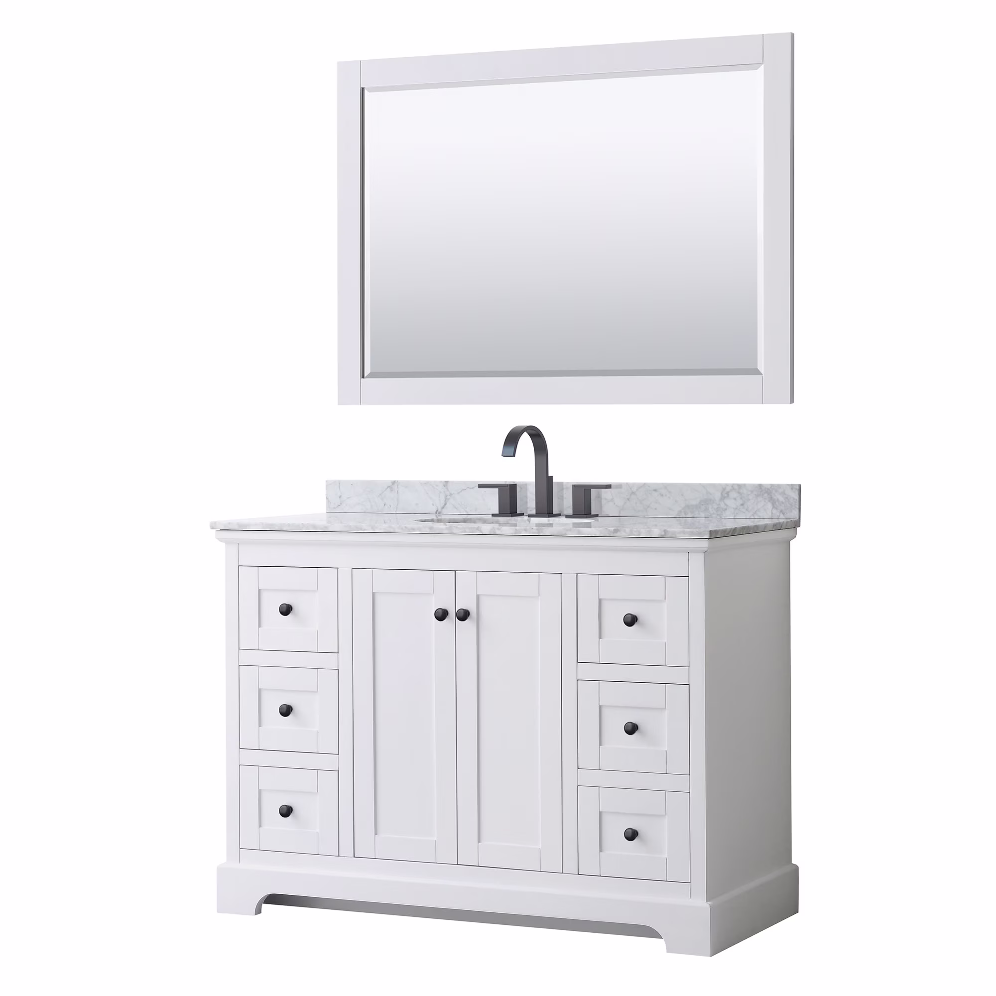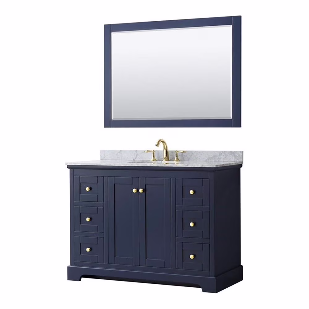 - Faucet(s) not included. Matching 46" mirror. Metal exterior hardware with brushed gold finish. Two (2) functional doors. Seven (7) functional drawers