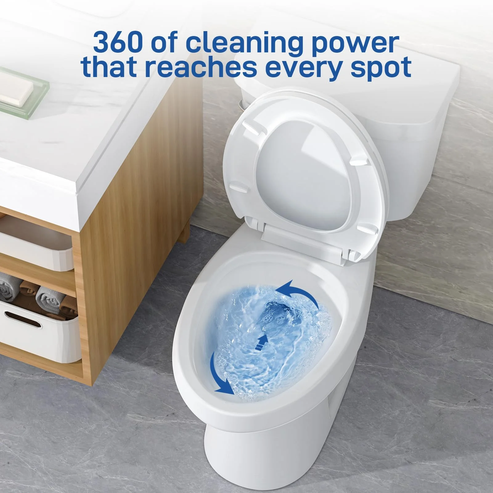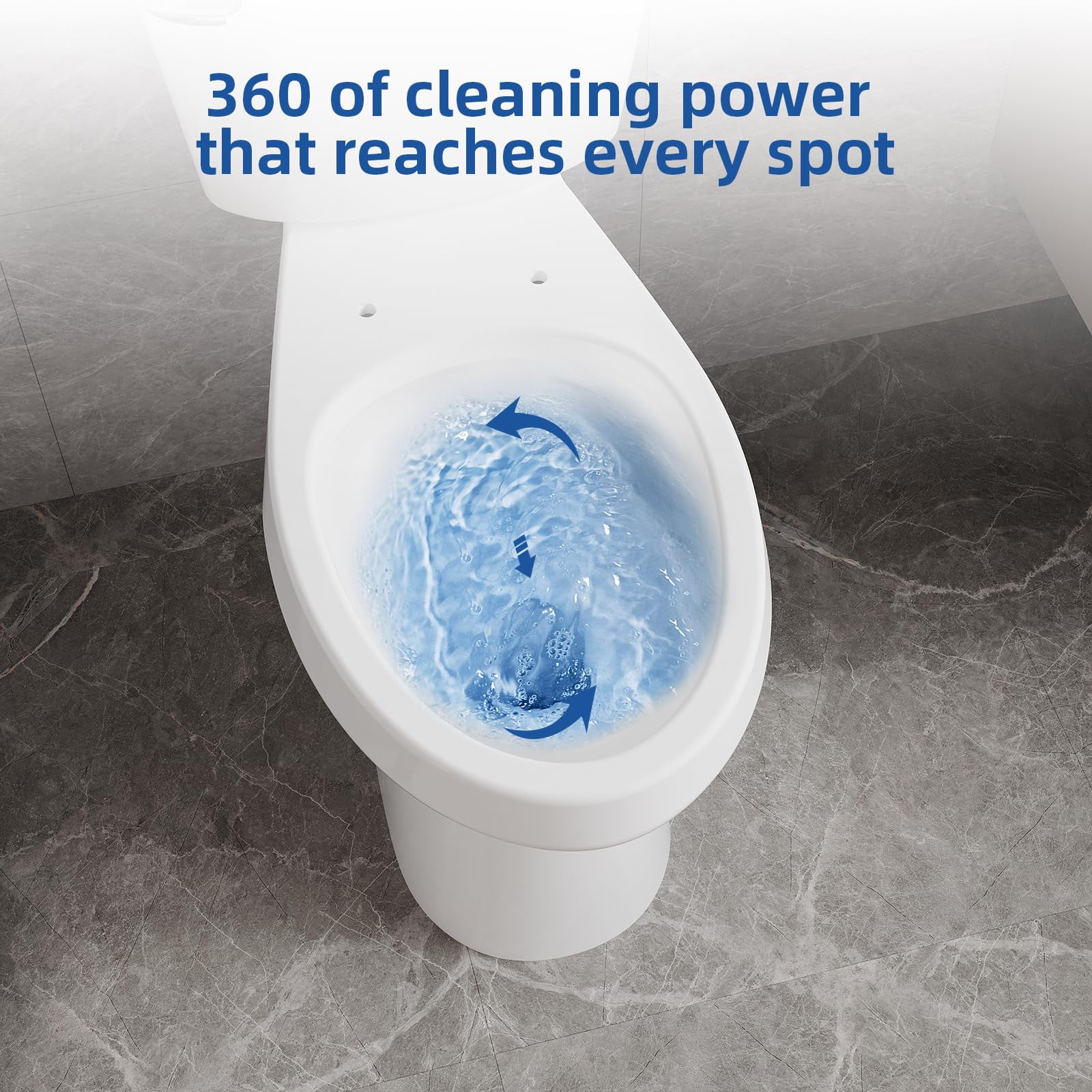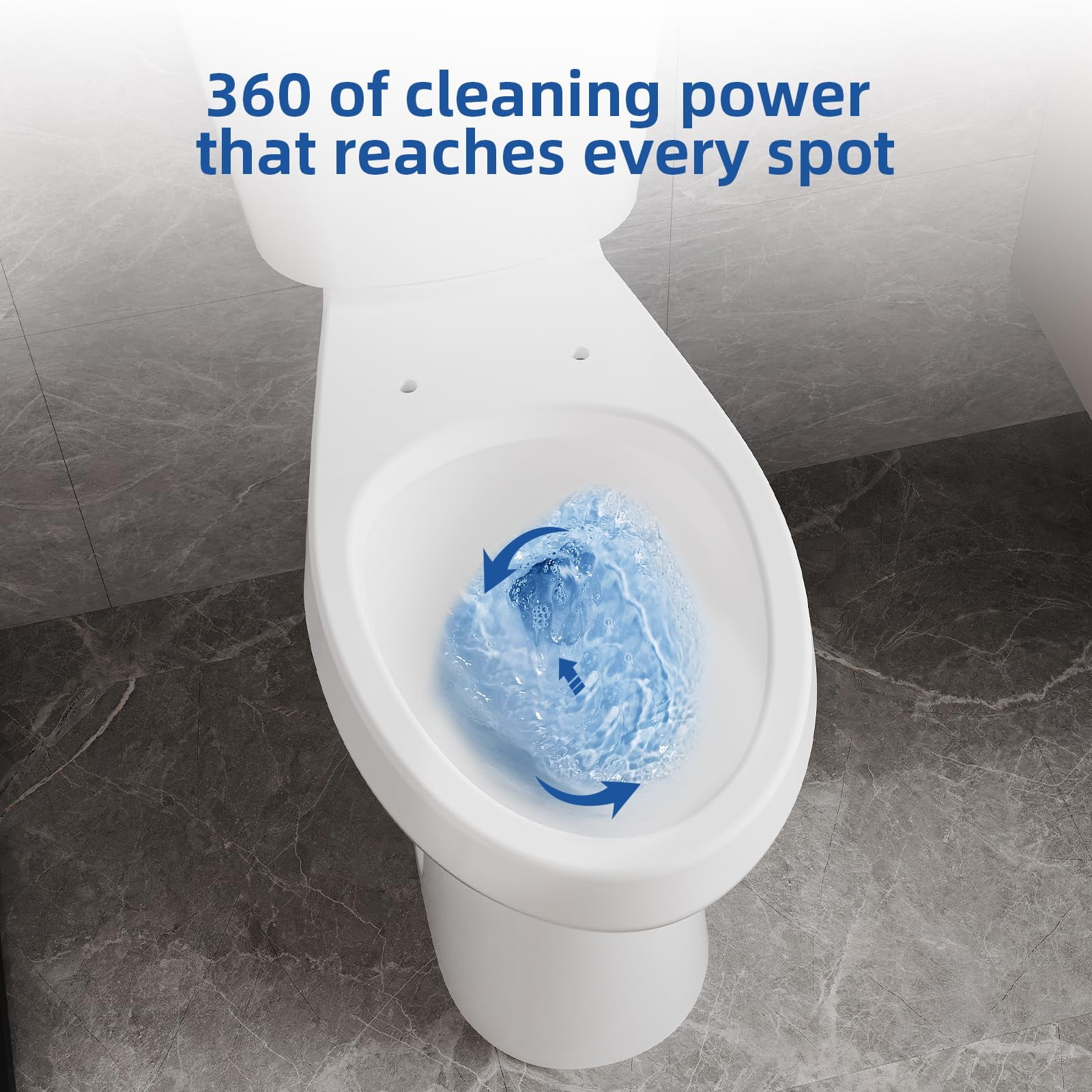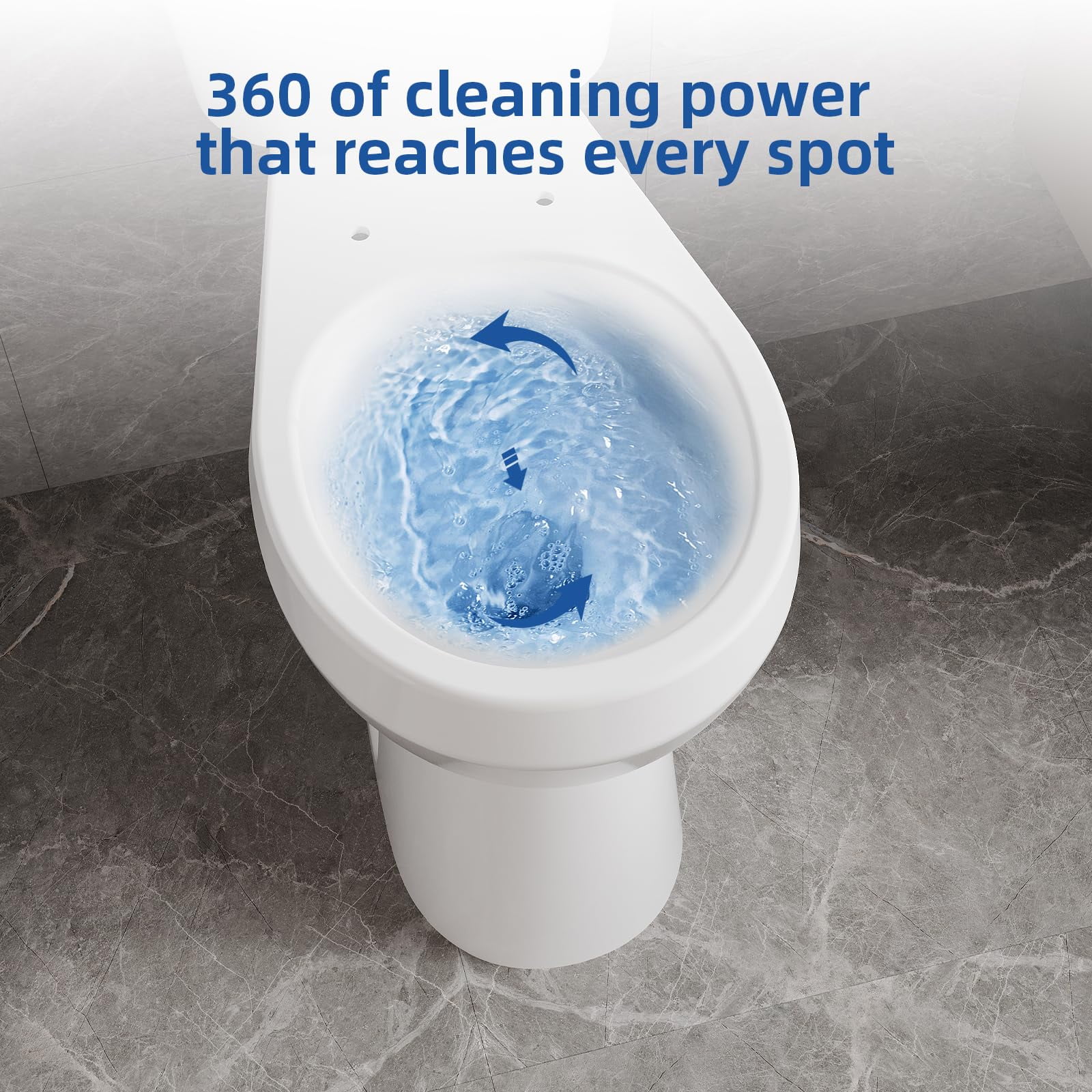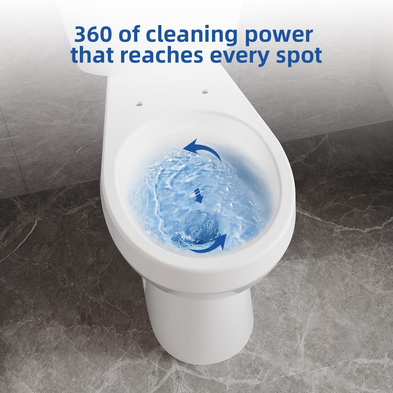 - �?Powerful Siphon Flushing System �?With a dual flush system, this toilet offers two flushing options for efficient water use. The siphon jet flush ensures powerful, clog-free performance, while the hidden 360-degree jet holes help scrub away dirt from hard-to-reach corners, ensuring a clean, leak-free toilet.