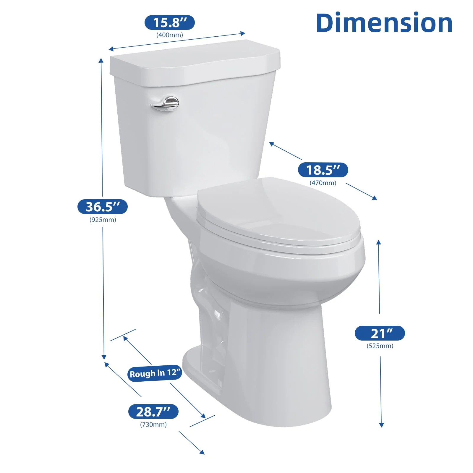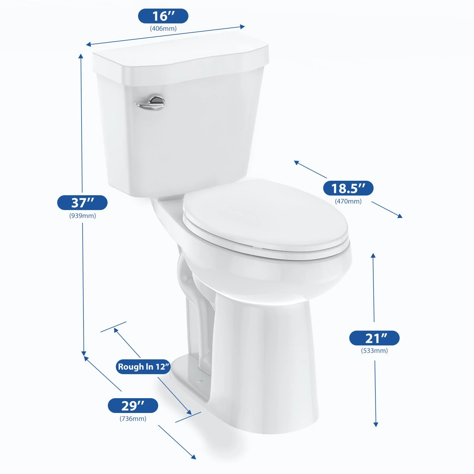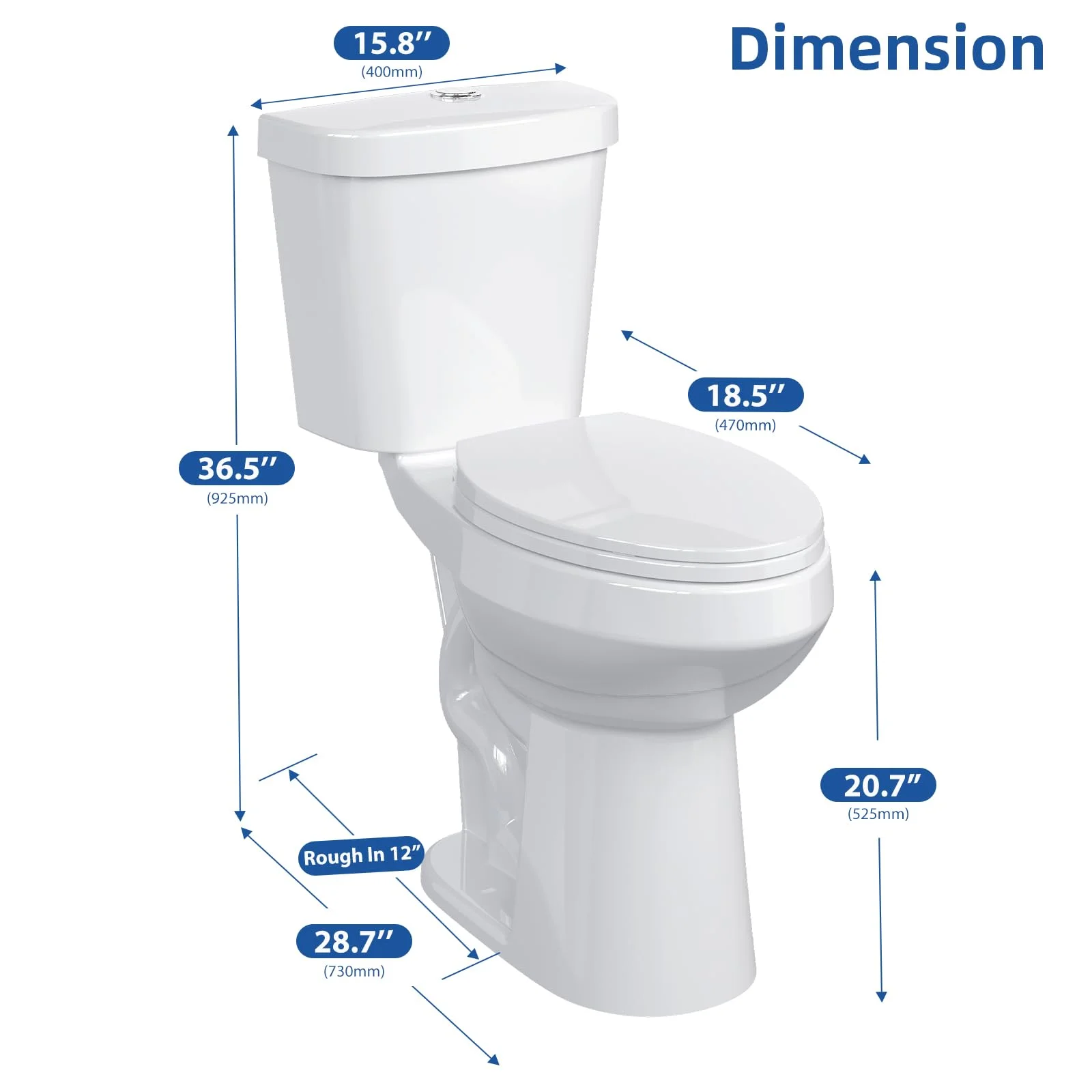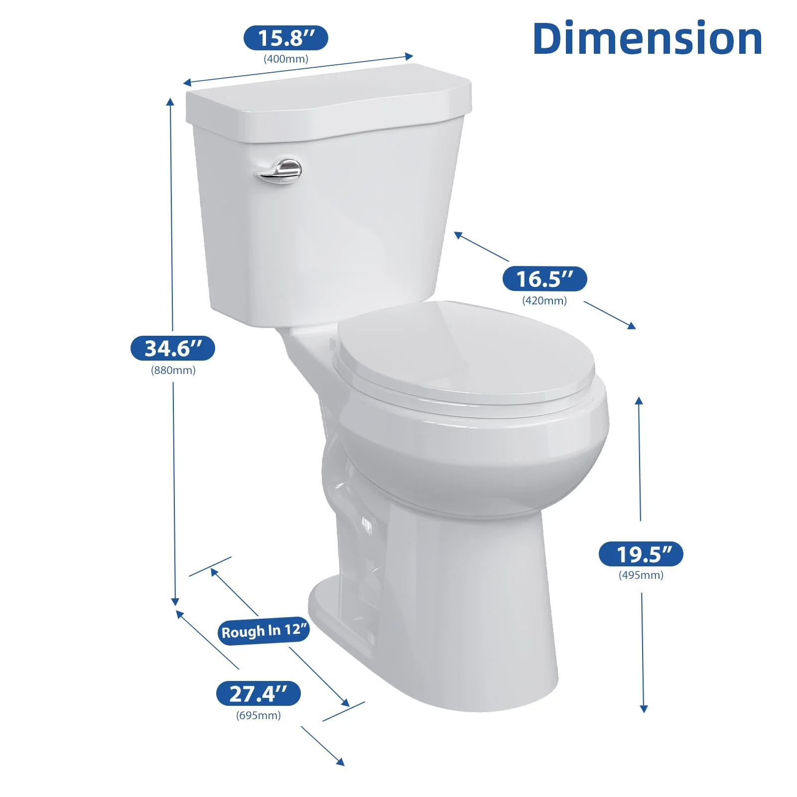 - Toilet Dimensions: Standard 2-Piece Design