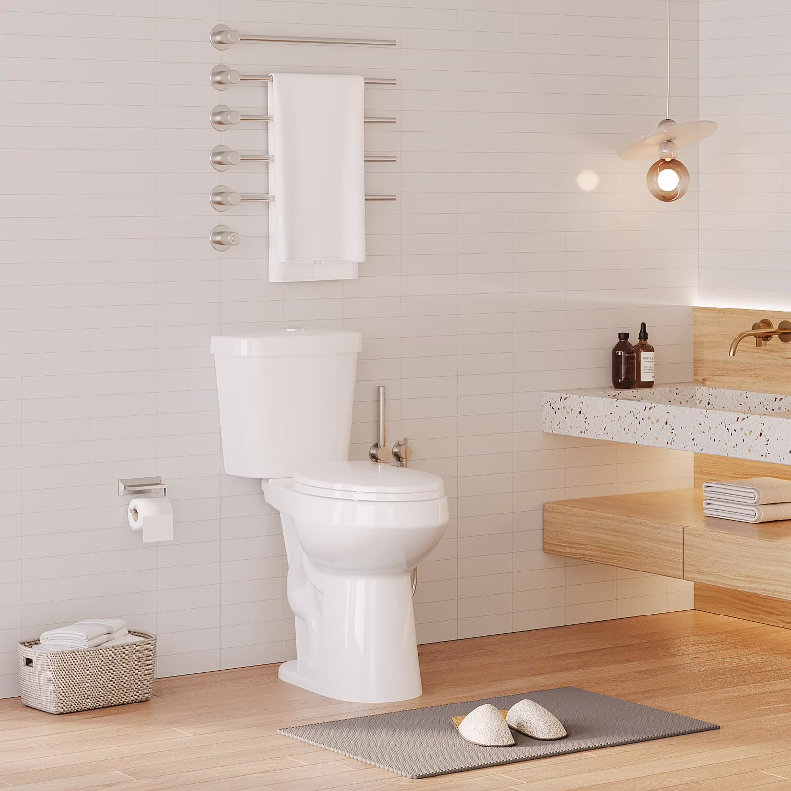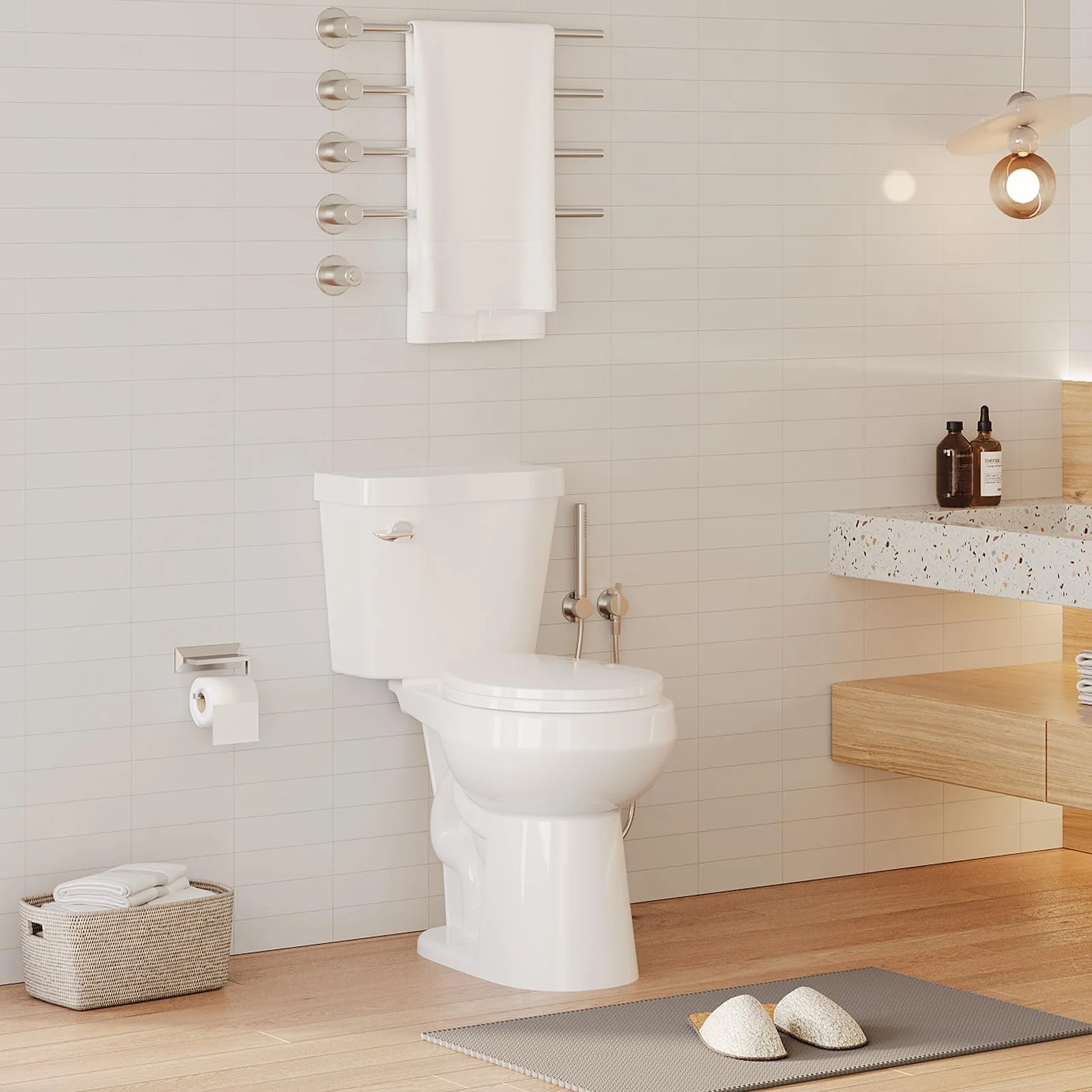 - Toilet Type: Two-Piece, Elongated