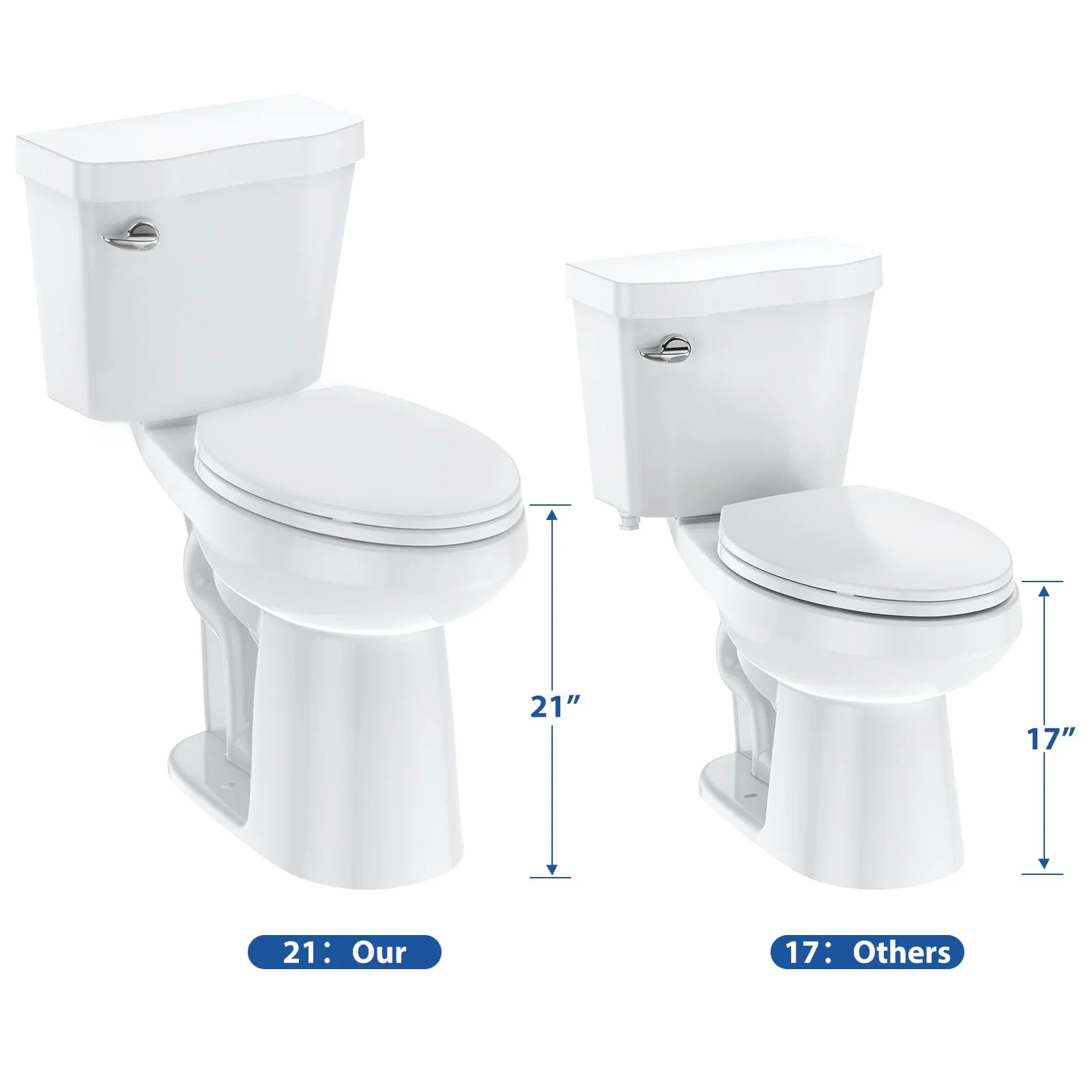 - �?ADA Compliant Universal Height �?This toilet's universal height meets ADA standards, making it more accessible for seniors, tall individuals, and people with mobility challenges. The higher seat height makes sitting down and standing up easier.