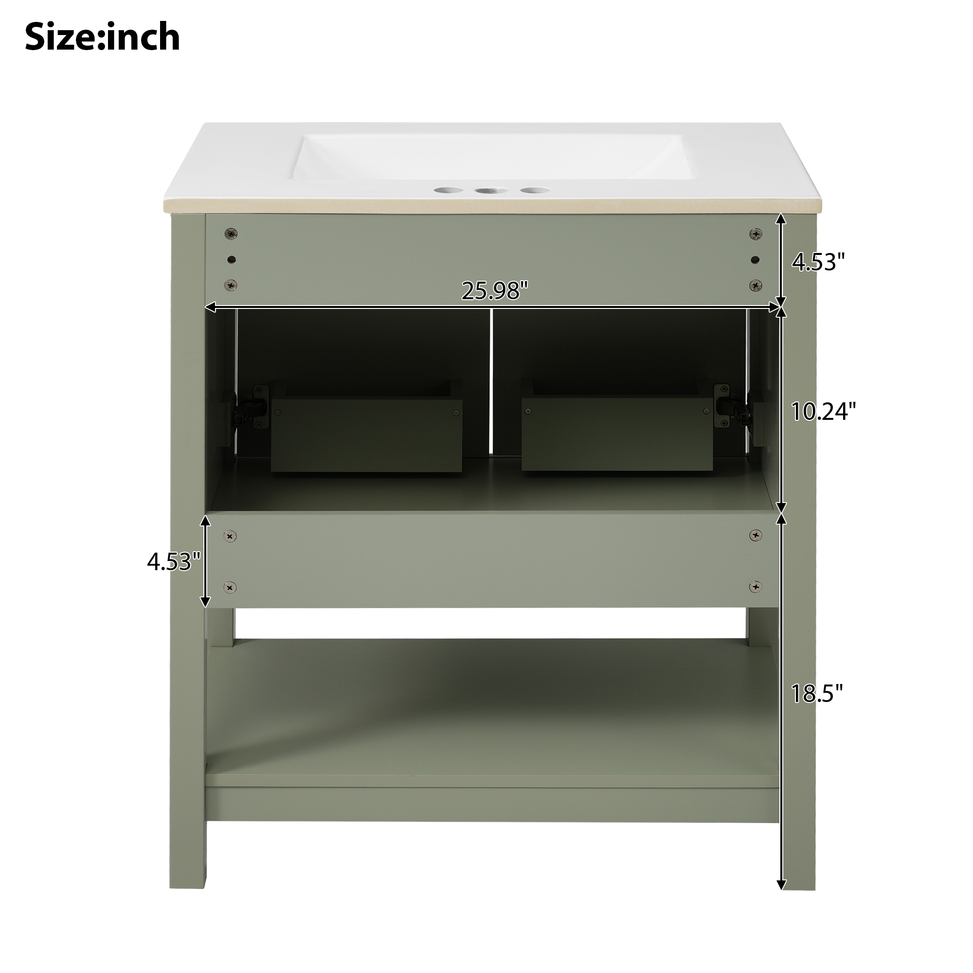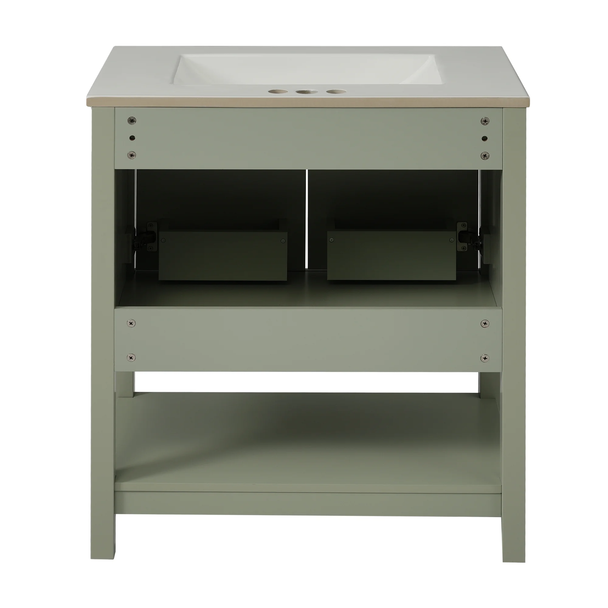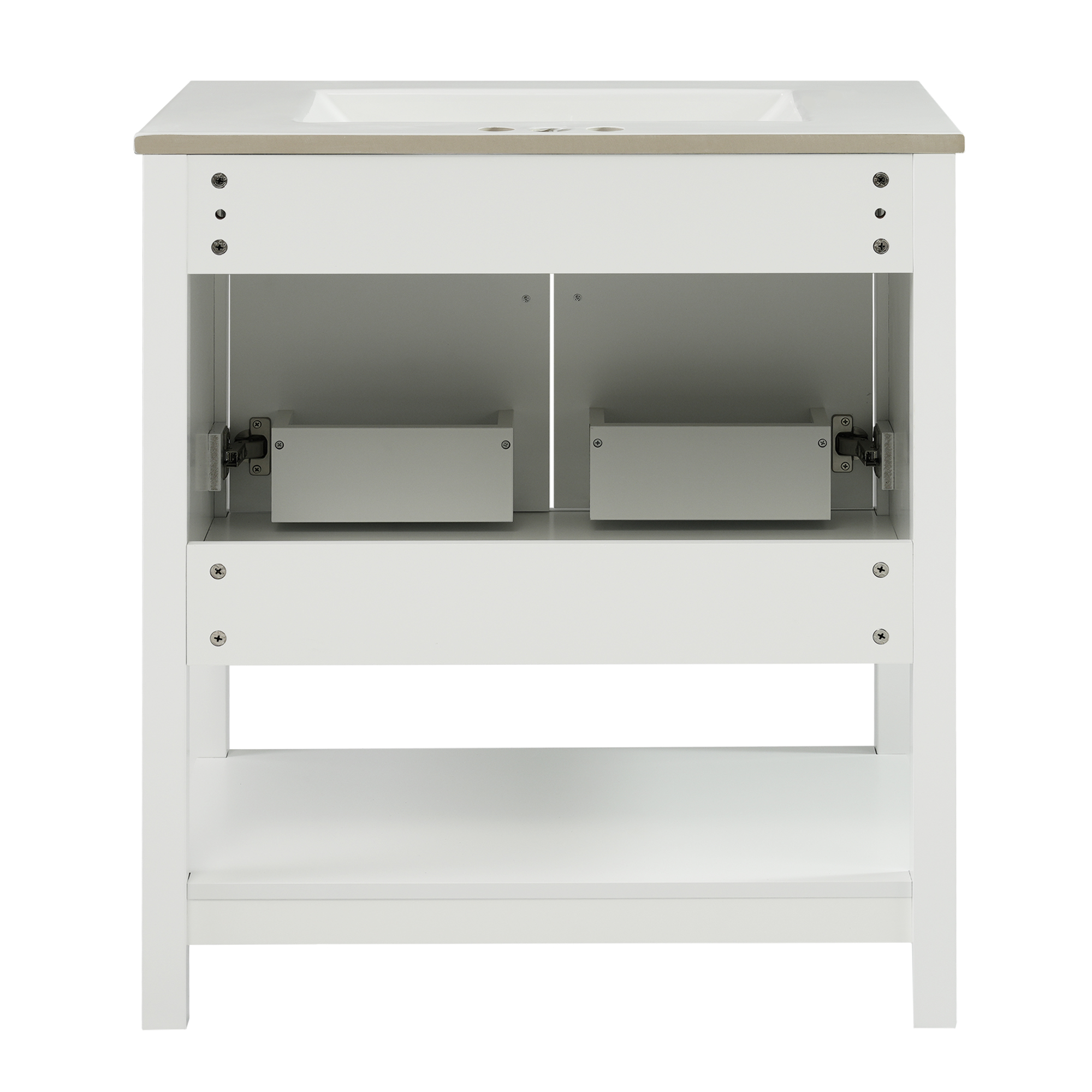Featuring 2 multifunctional storage doors and open storage, this vanity provides ample storage space for your bathroom essentials. Keep everything organized and within reach.