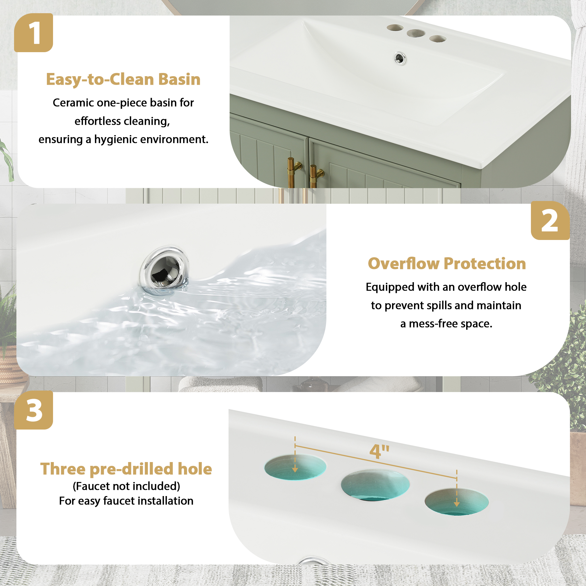 - Ceramic Sink: Integrated ceramic sink with overflow hole, easy to clean and maintain.