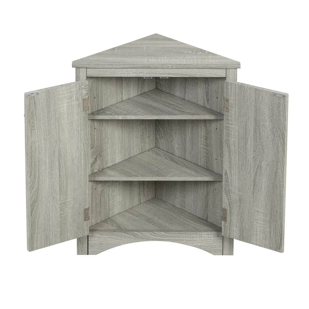 Home Floor Corner Cabinet with Adjustable Shelves and Two Doors, Triangle Bathroom Storage Cabinet, Modern Style Freestanding Floor Cabinet for Kitchen, Living Room and Hall, Oak