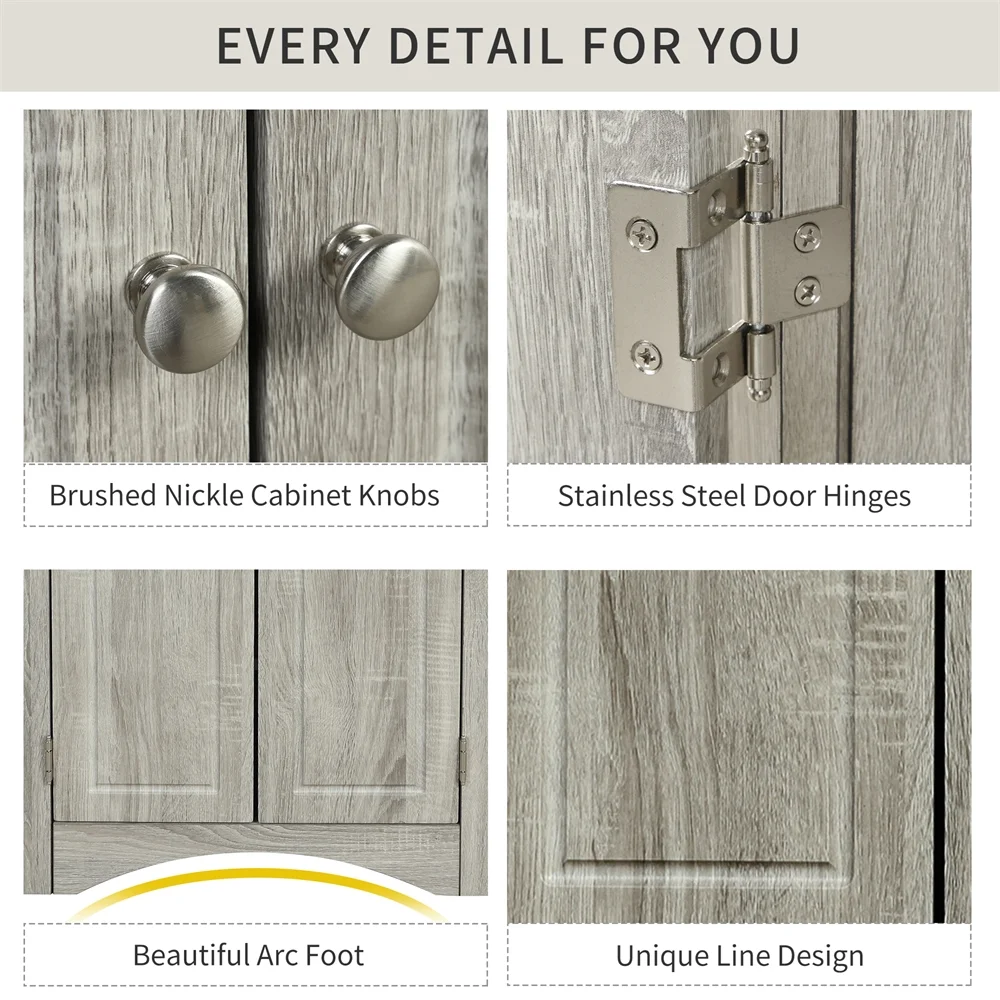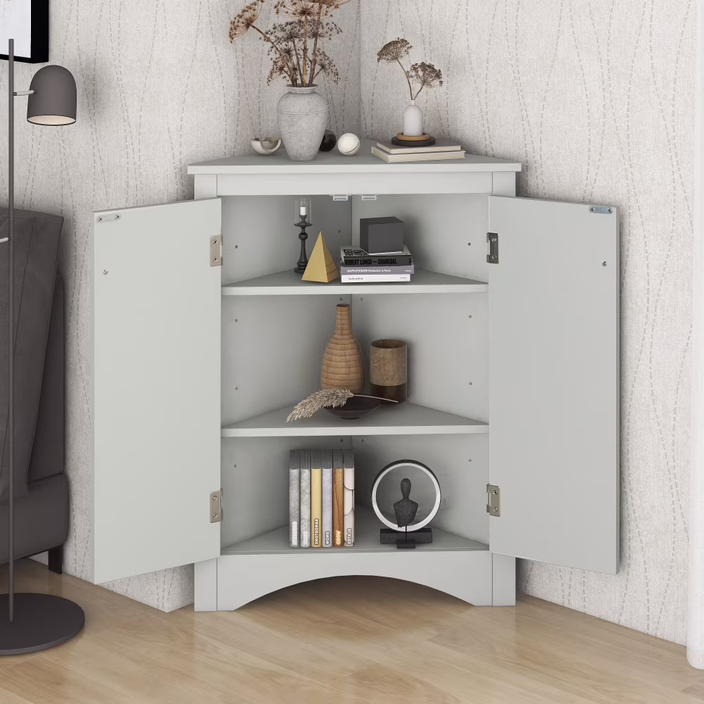 - Affordable Cabinet: This corner storage cabinet with doors is designed not only to meet your visual demands but also to satisfy your functional needs. With inside adjustable shelves, it can meet your various storage needs. Brushed nickel knobs make it convenient for you to open and close.