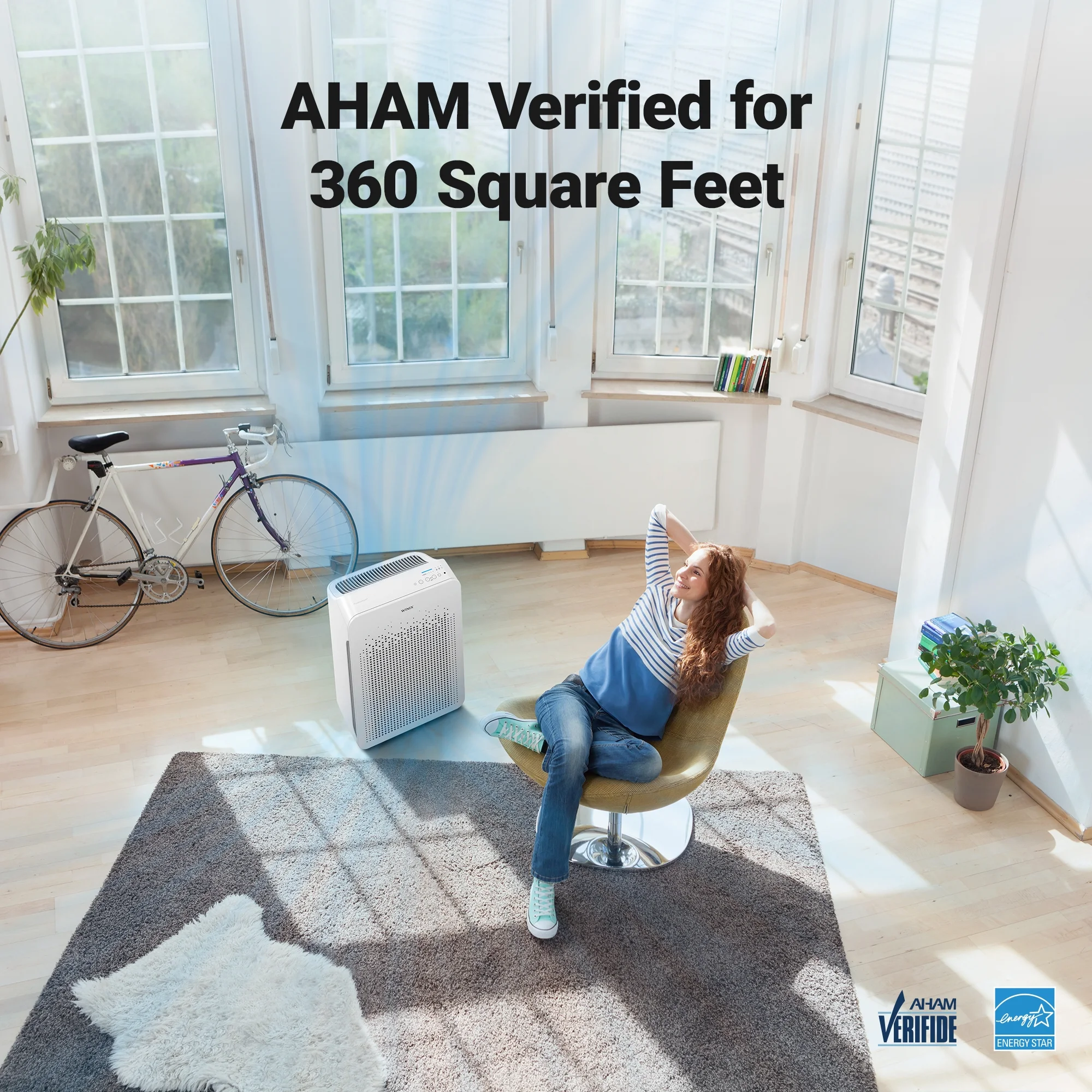 - ?AHAM Verifide? at 360 sq ft. : Also cleans rooms up to 1,740 sq ft in 1 hour (870 sq ft in 30 minutes, 580 sq ft in 20 minutes, 435 sq ft in 15 minutes)