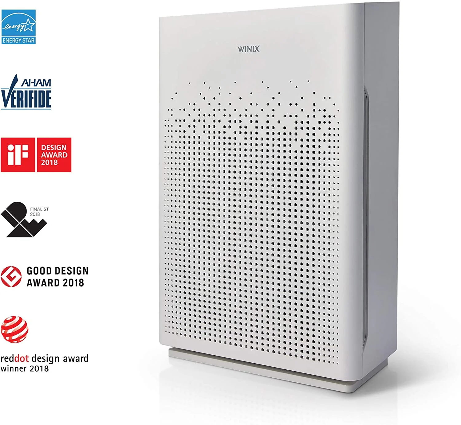 Color White Brand Winix Item Dimensions LxWxH 15.1 x 8.7 x 23.5 inches Power Source Corded Electric Item Weight 16.5 Pounds About this item True HEPA filter captures 99. 97% of airborne pollutants; dust mites, pet dander, pollen and other allergens as small as 0. 3 microns. Plasma wave technology safely breaks apart odors, allergens, chemical vapors, and other pollutants at the molecular level. Wattage: 65W AHAM verified room size of 360 sq. Ft. Suitable for medium and large rooms; kid's bedrooms, family rooms and kitchens. CADR (Dust / Pollen / Smoke): 233 / 240 / 230 Wi-Fi Enabled – connect with the Winix Smart App to control and monitor your air quality. Never run out of replacement filters by enabling Amazon Dash Replenishment in the Winix Smart App. Works with Alexa for voice commands and air Quality information.Key Features (+)
