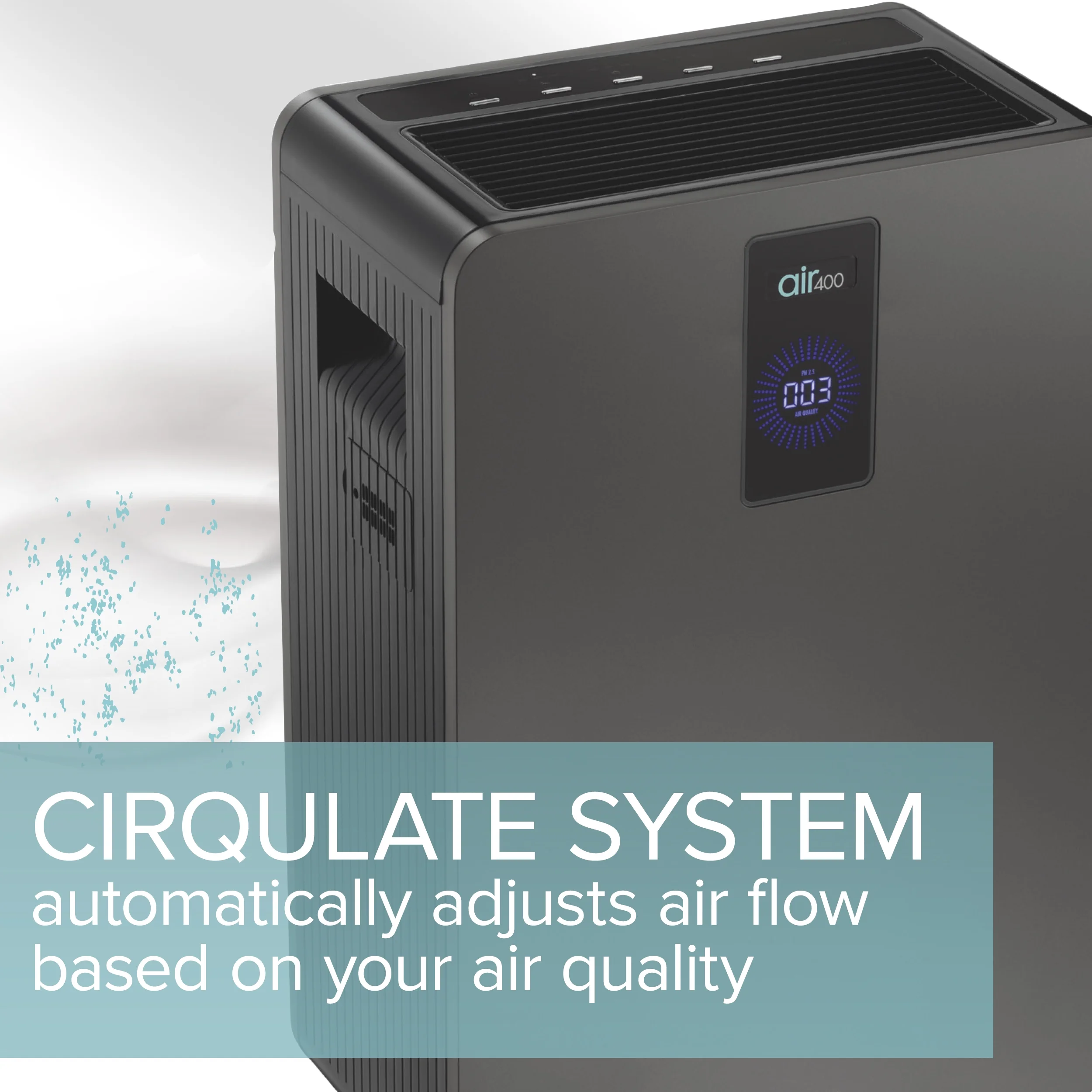 - SMART CIRQULATE SYSTEM uses a particle sensor to continuously monitor your indoor air, adjusts the air400��s speed of air flow accordingly, and provides real-time feedback on the front digital display. No more wondering if your air purifier is working!