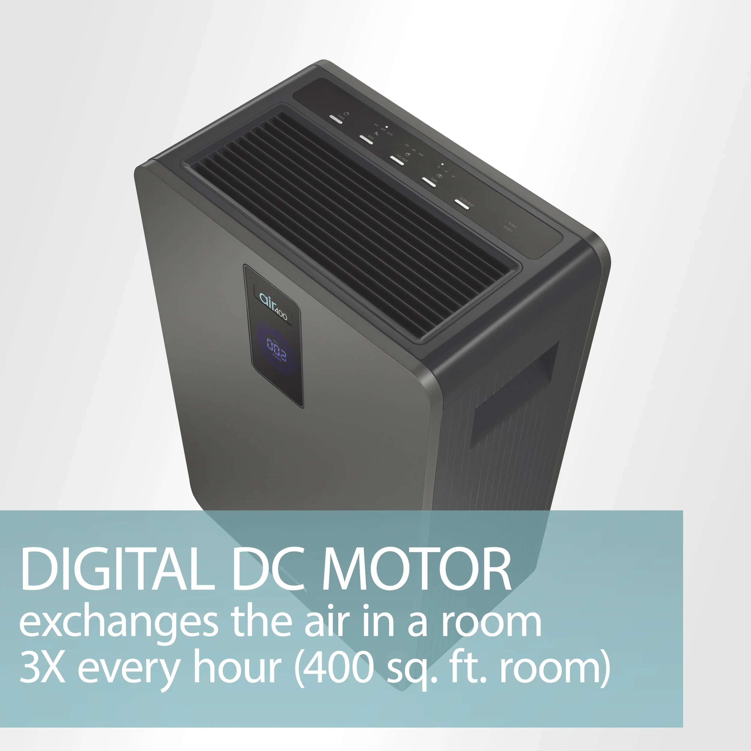 - POWERFUL PERFORMANCE & THOUGHTFUL DESIGN air400 is powerfully equipped with a large fan and long-lasting, quiet, digital DC motor. Built to blend right you��re your home with a neutral tone, clean edges, and sleek design.