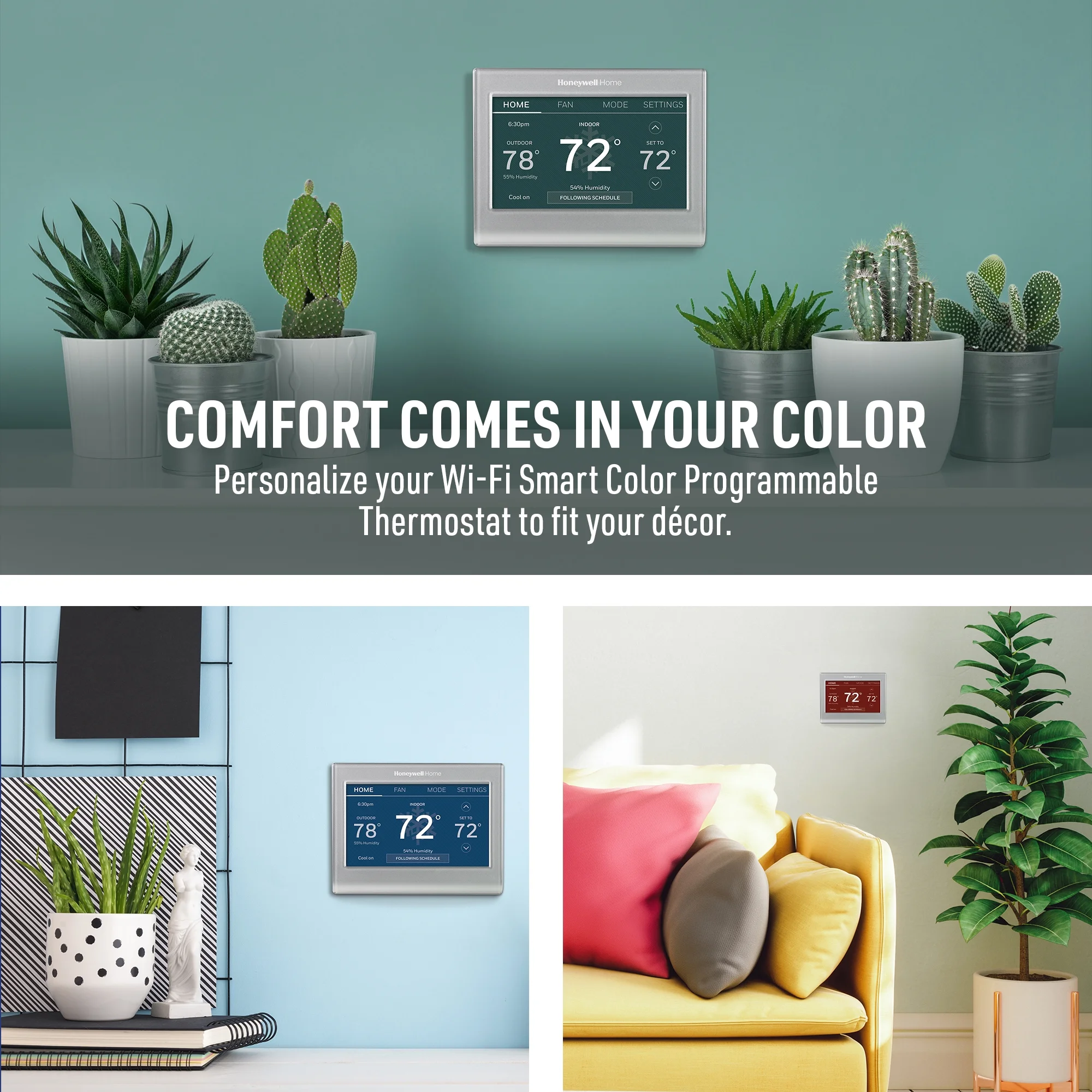 - Comfort comes in your color: Personalize your Wi-Fi Smart Color Programmable Thermostat to fit your d��cor.