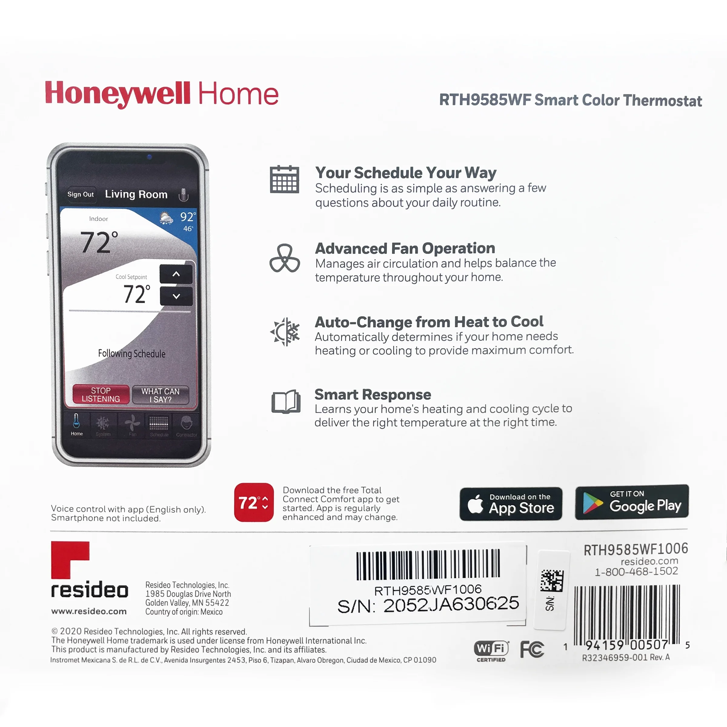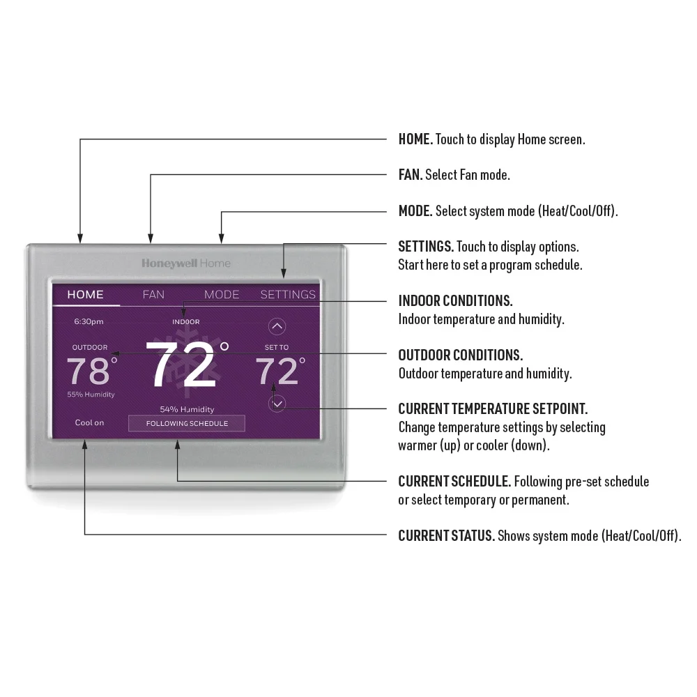 - Easy-to-use app: Choose from the Total Connect Comfort app or the Resideo app to control your WiFi thermostat anytime, anywhere.