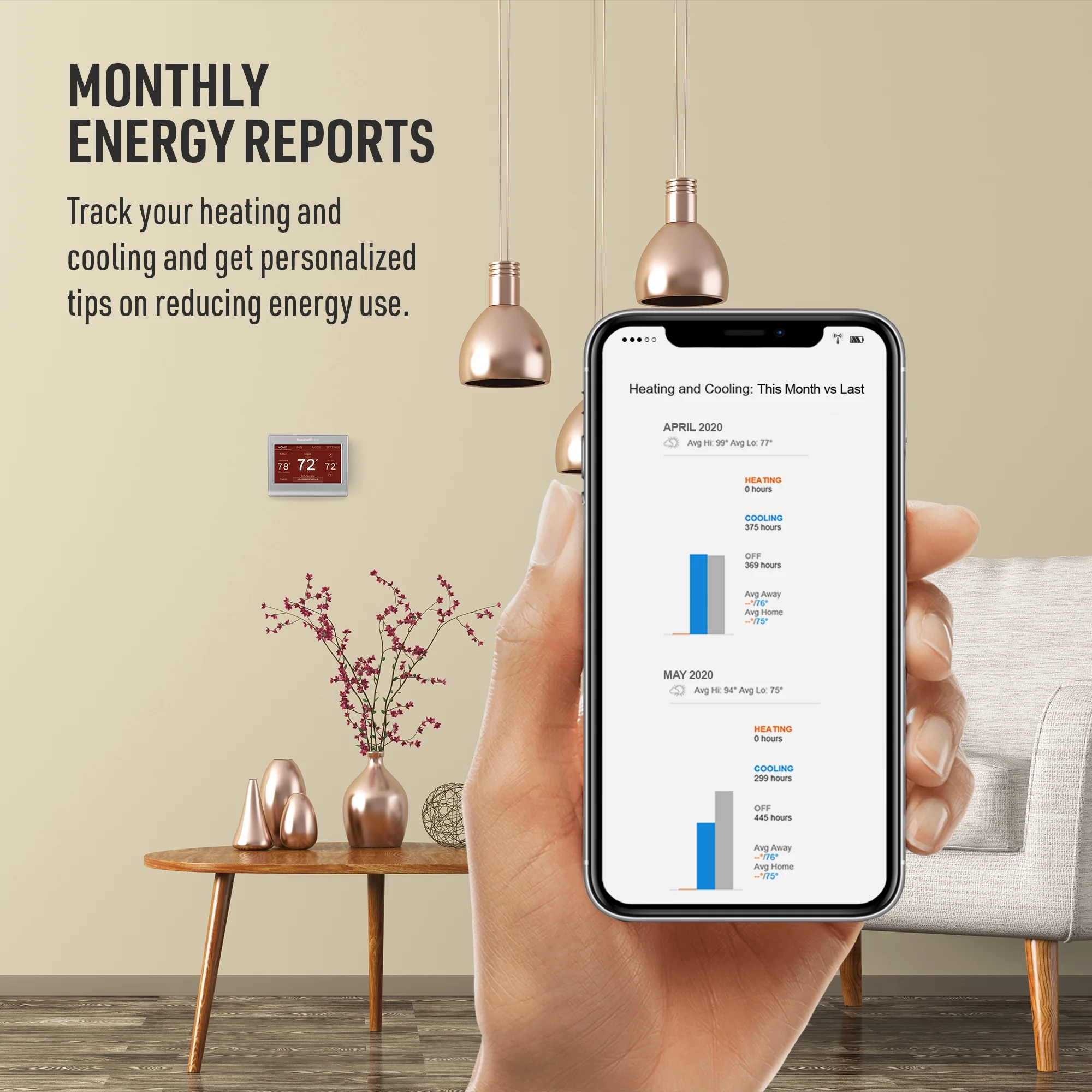 - Monthly energy reports: Track your heating and cooling and get personalized tips on reducing energy use.