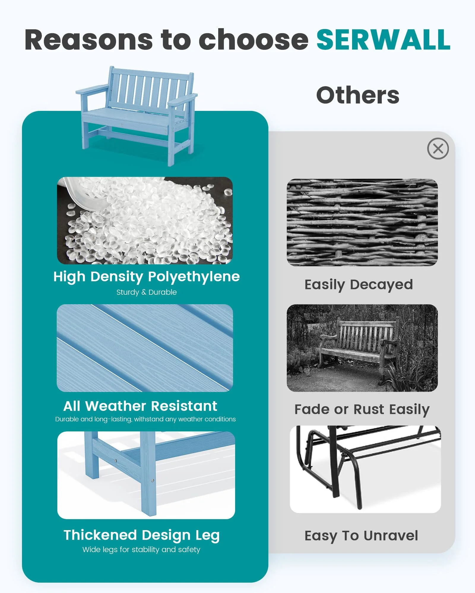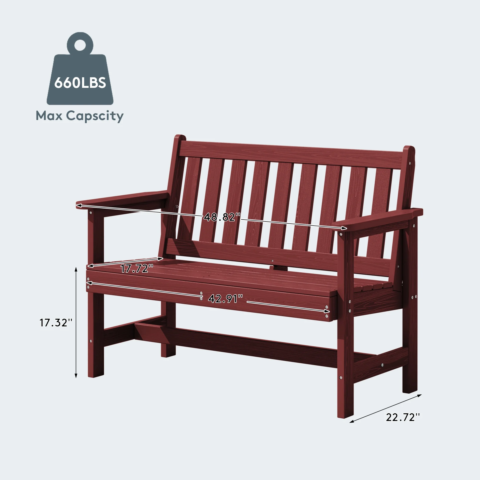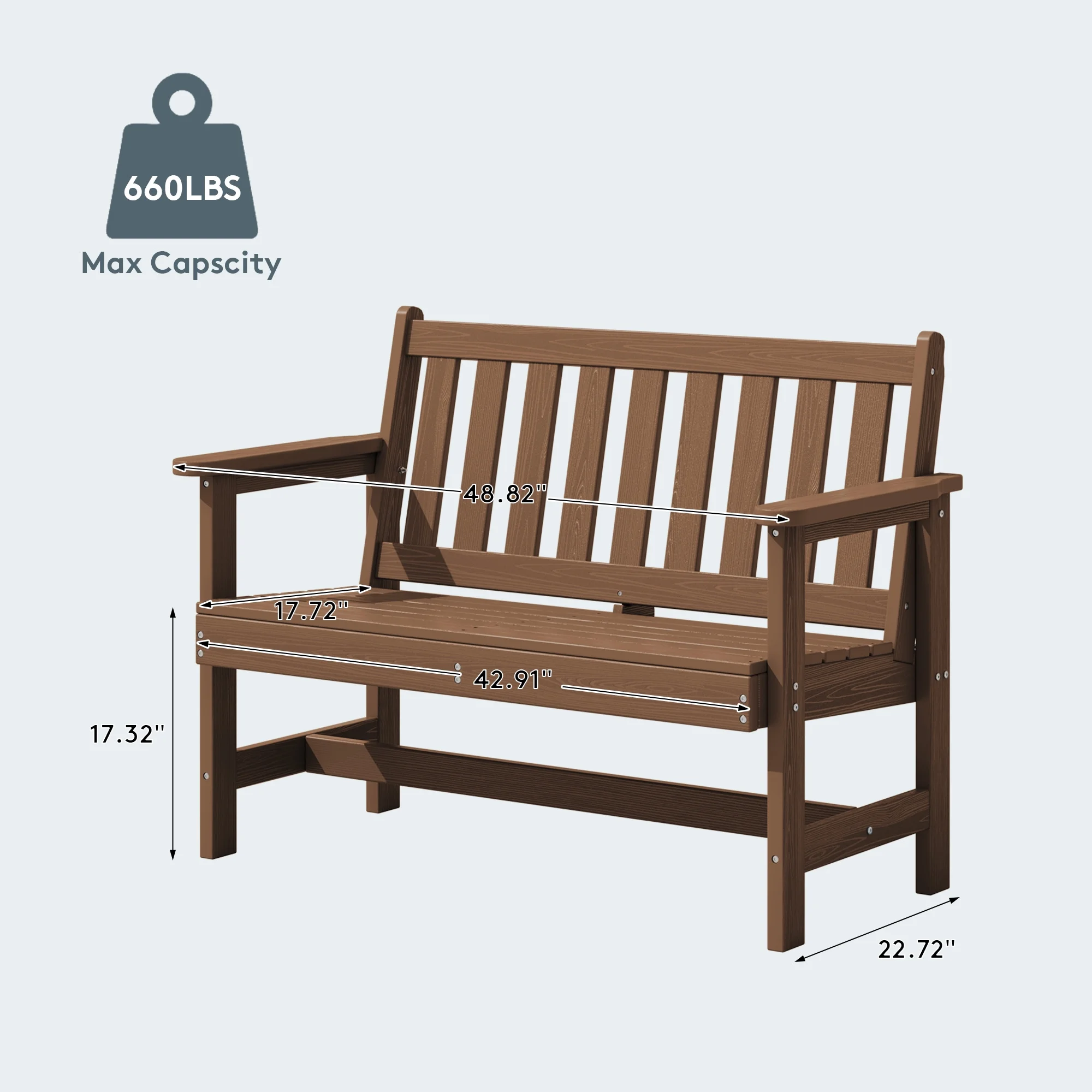 - 【High Weight Capacity】SERWALL HDPE patio bench Supports up to 660 lbs, providing sturdy seating for all body types.