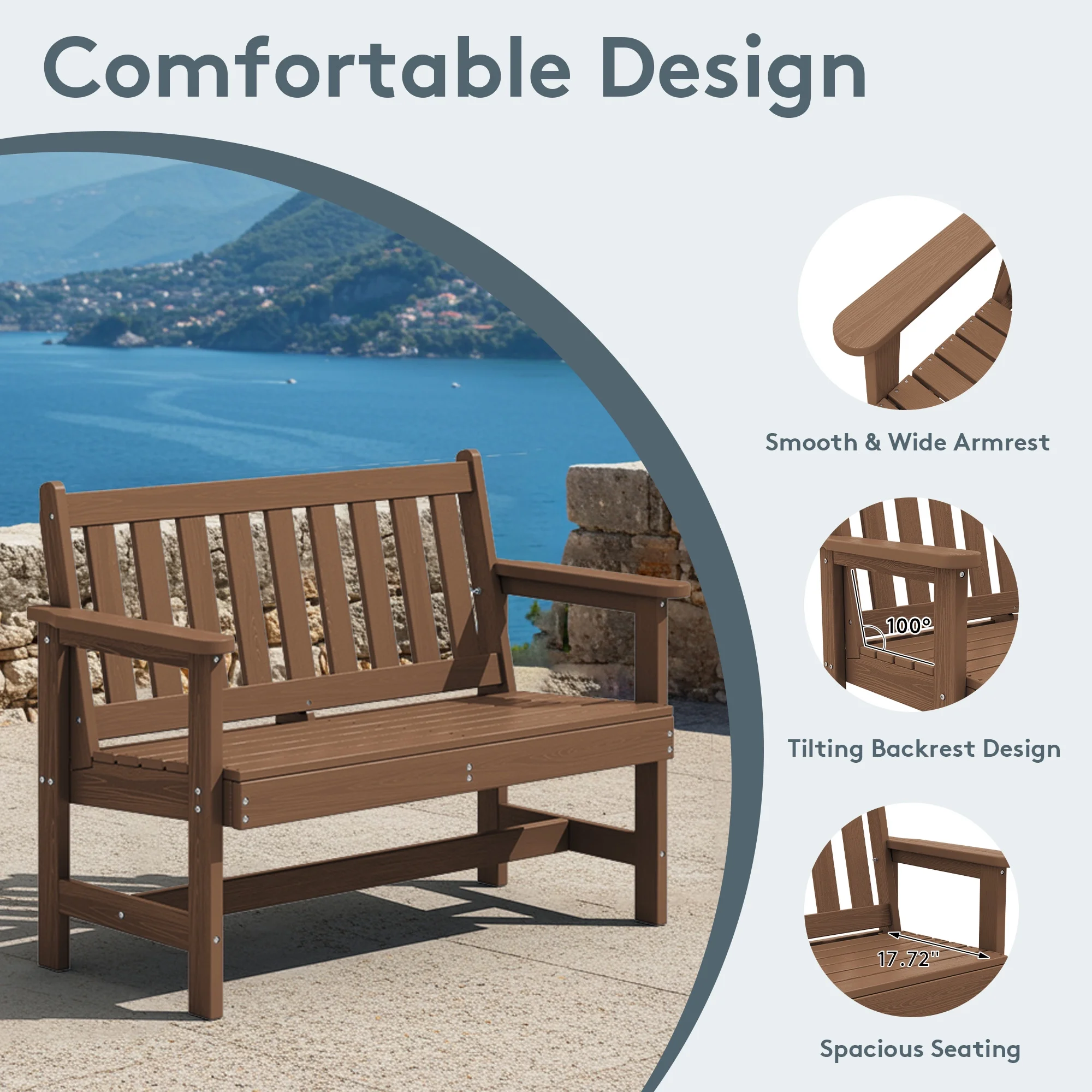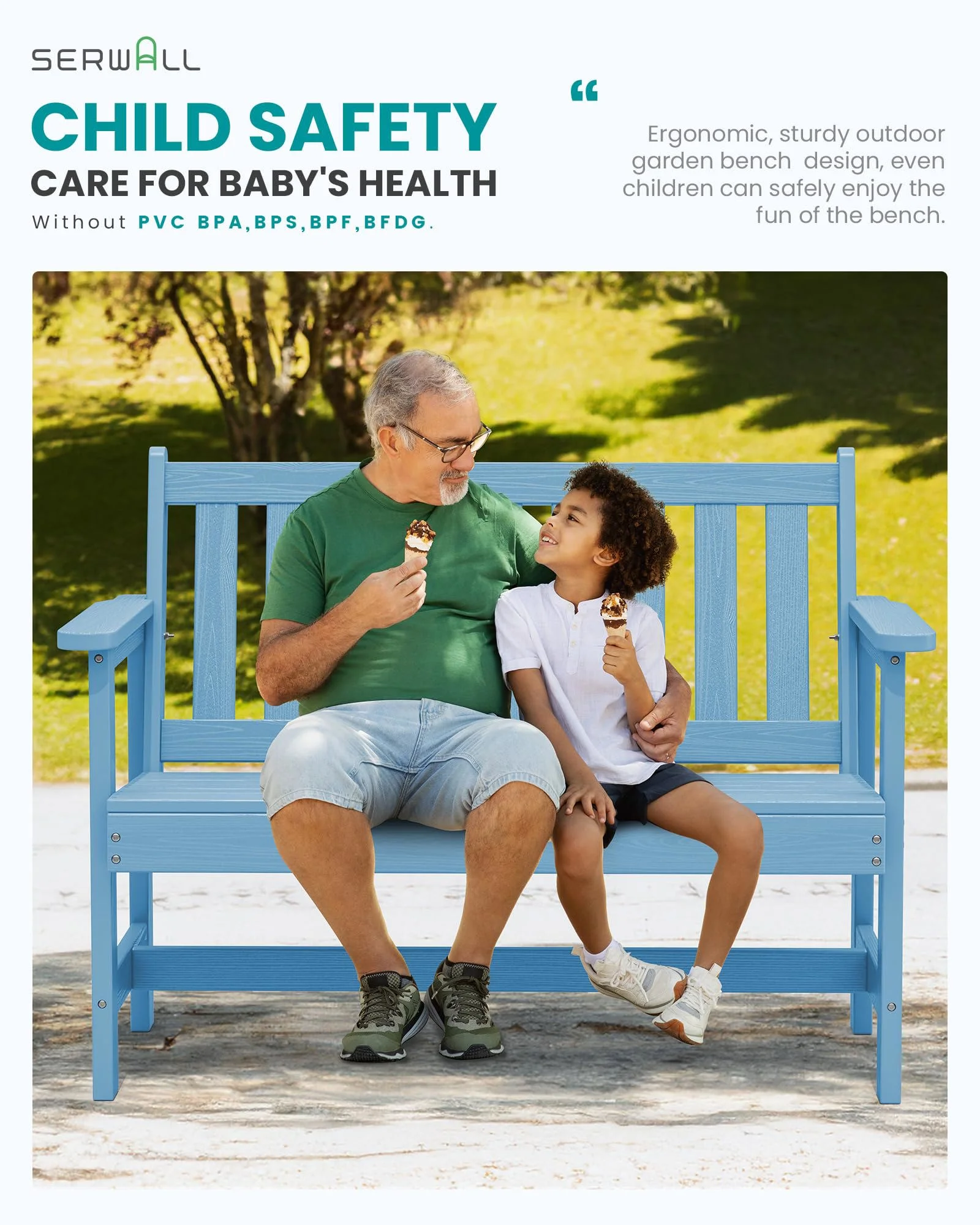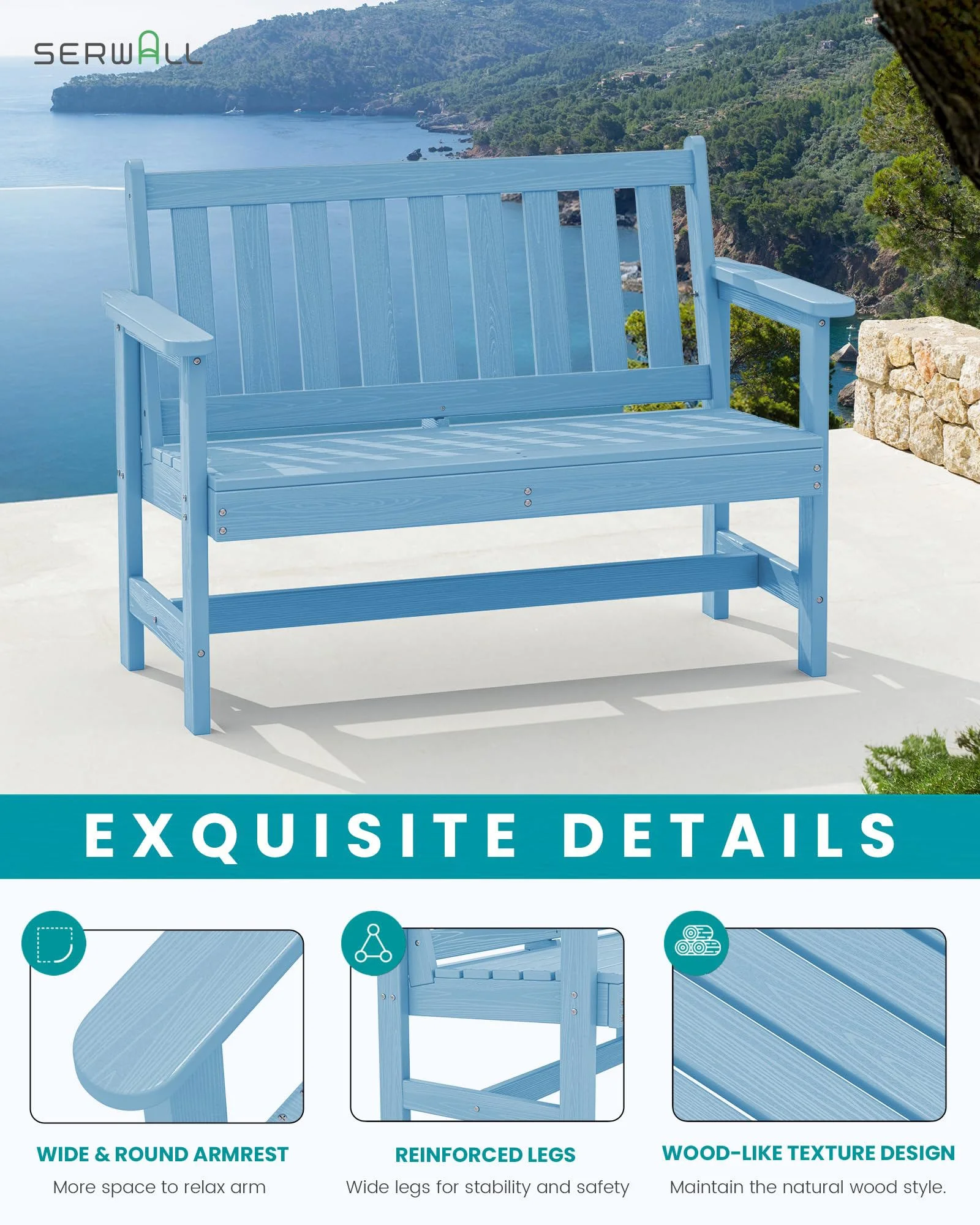 - 【High Weight Capacity】SERWALL HDPE patio bench Supports up to 660 lbs, providing sturdy seating for all body types.