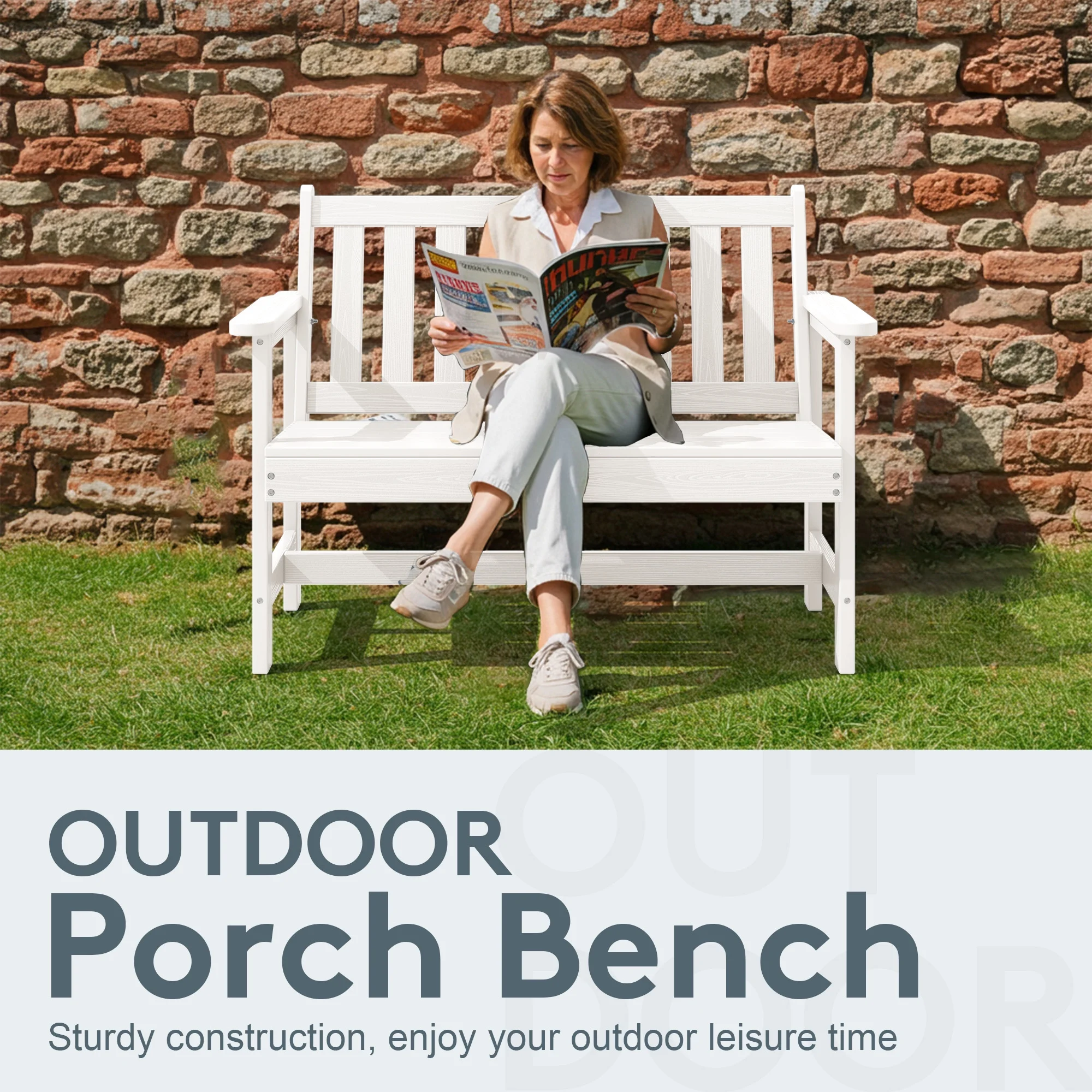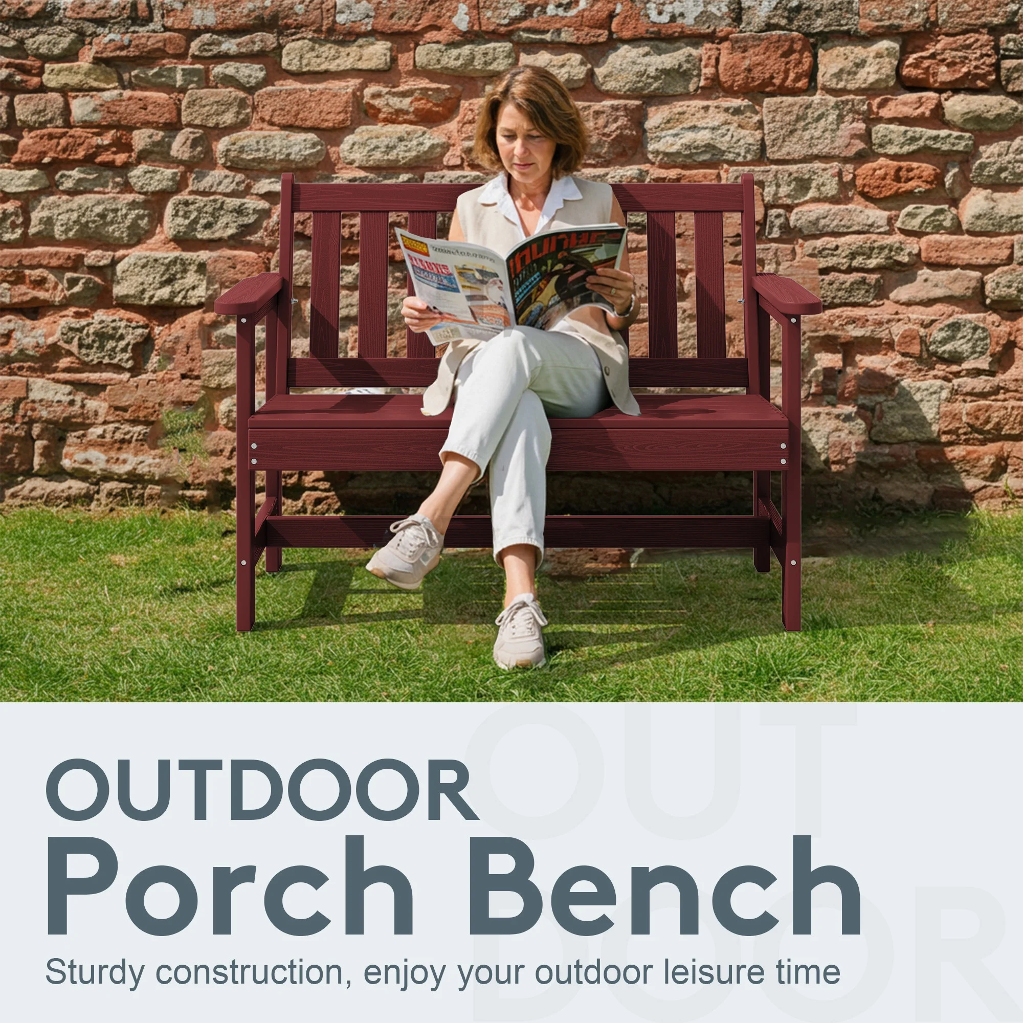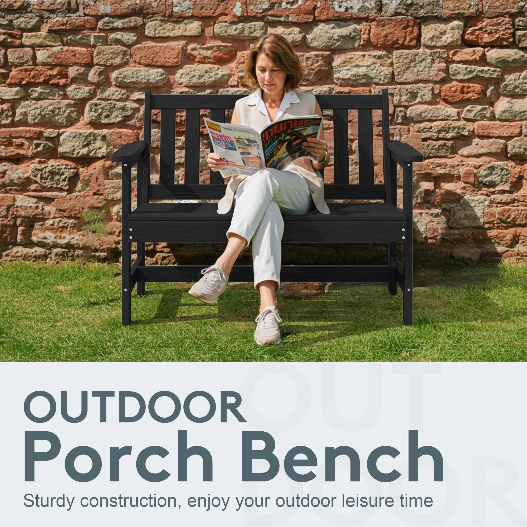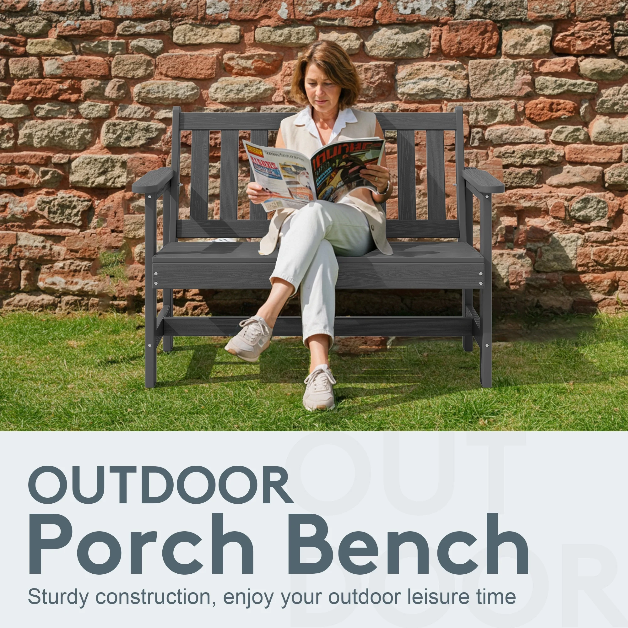- 【Weather-Resistant Construction�?Made from durable HDPE and stainless steel, this outdoor bench withstands all outdoor conditions for long-lasting use.