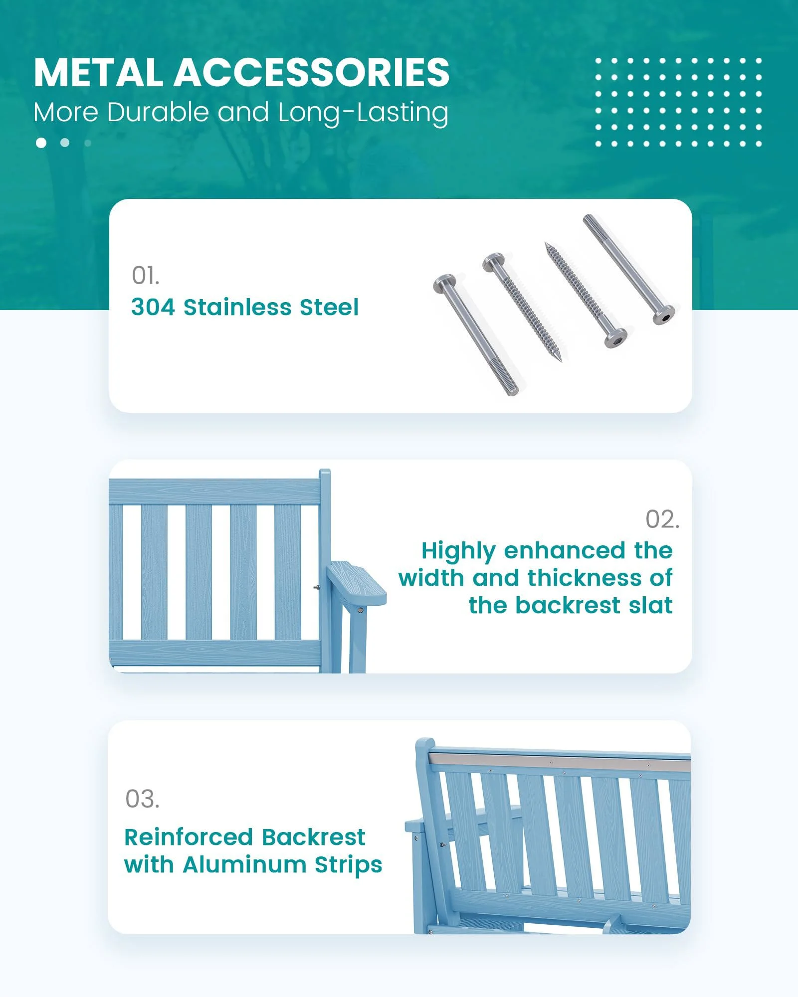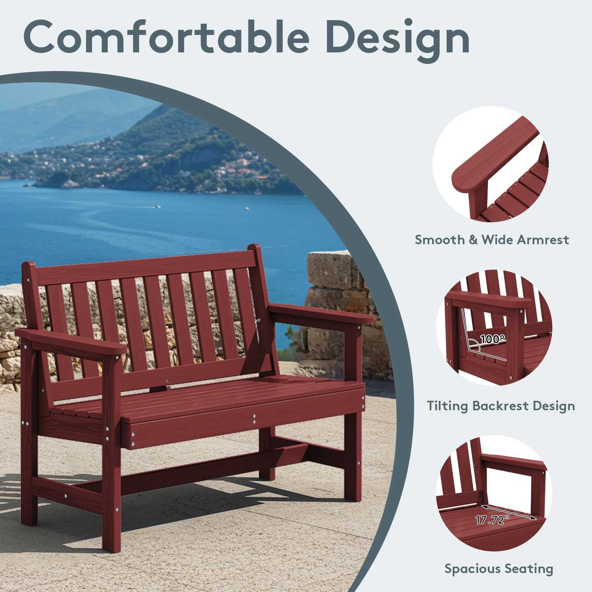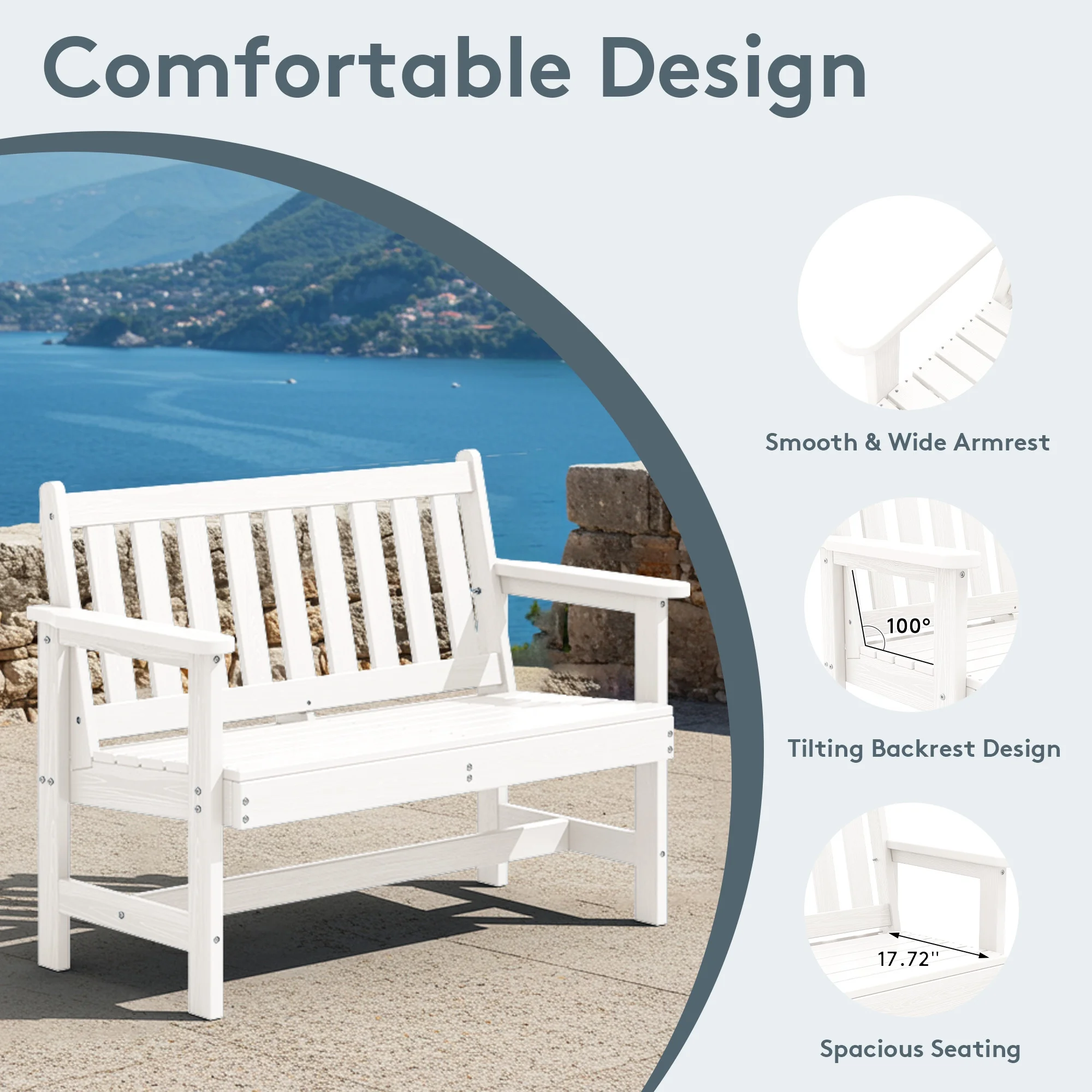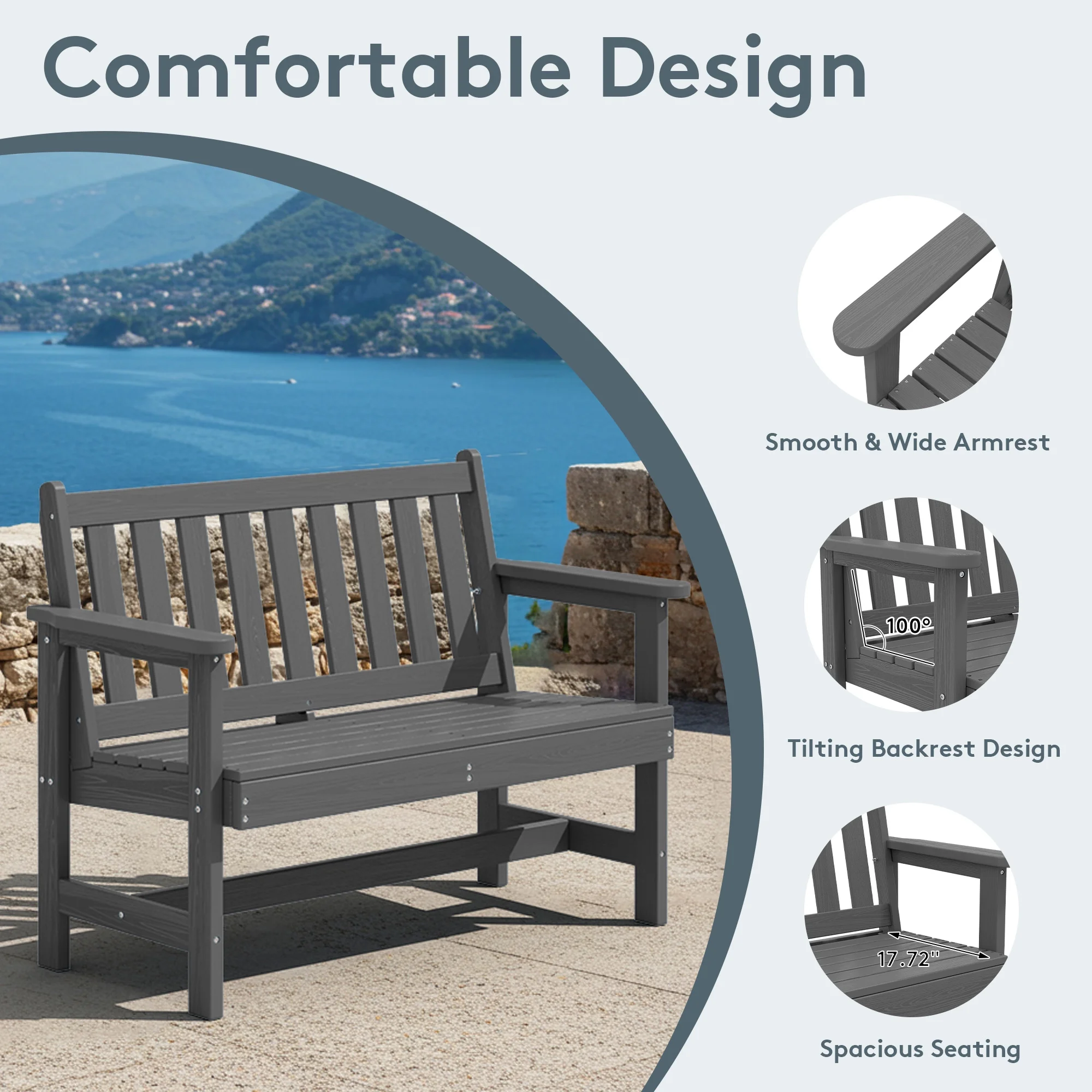 - 【Weather-Resistant Construction�?Made from durable HDPE and stainless steel, this outdoor bench withstands all outdoor conditions for long-lasting use.