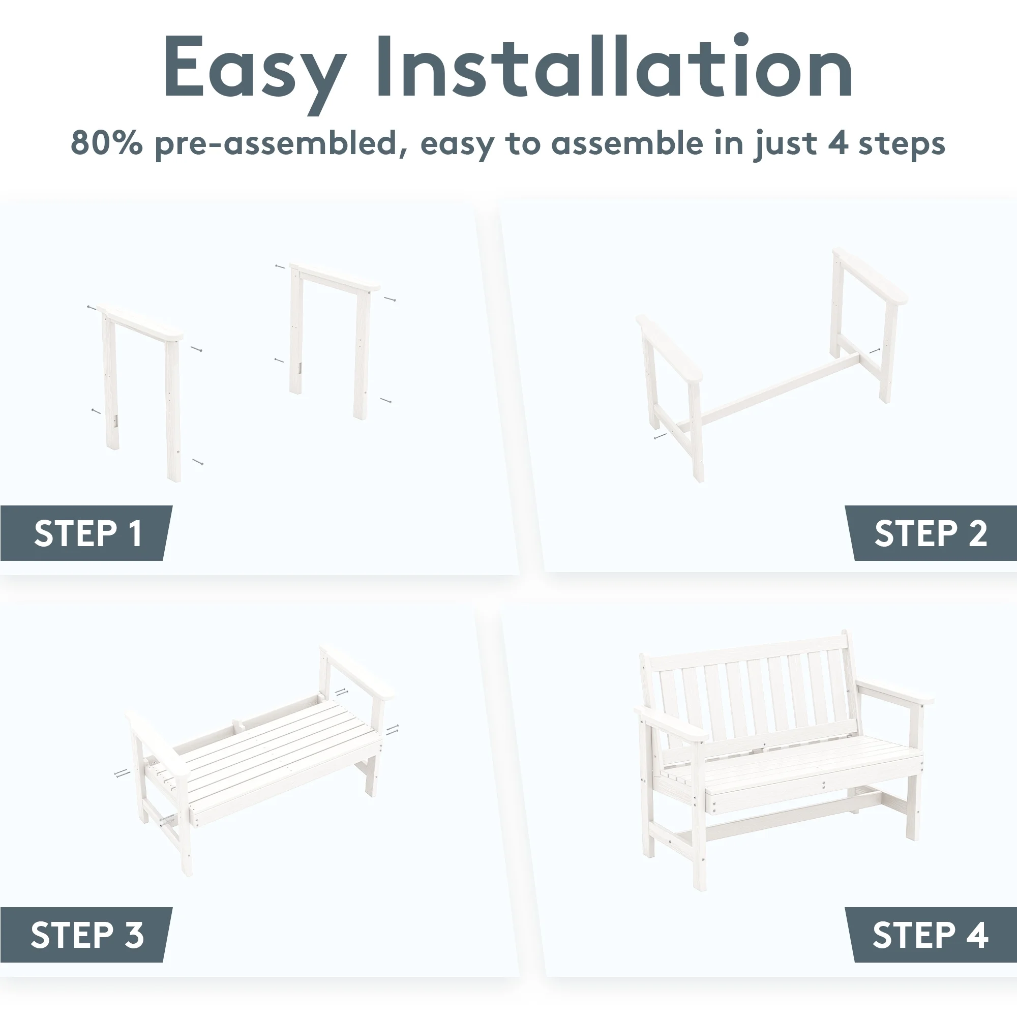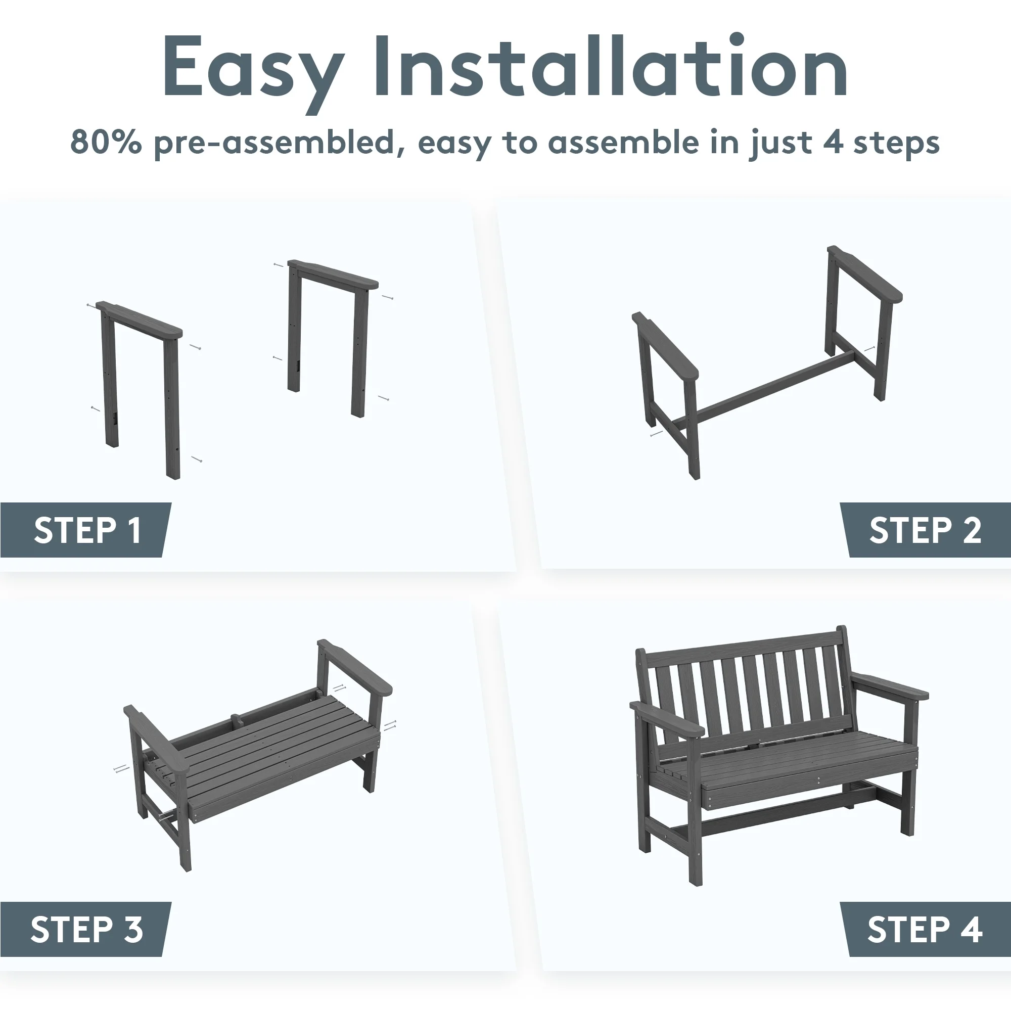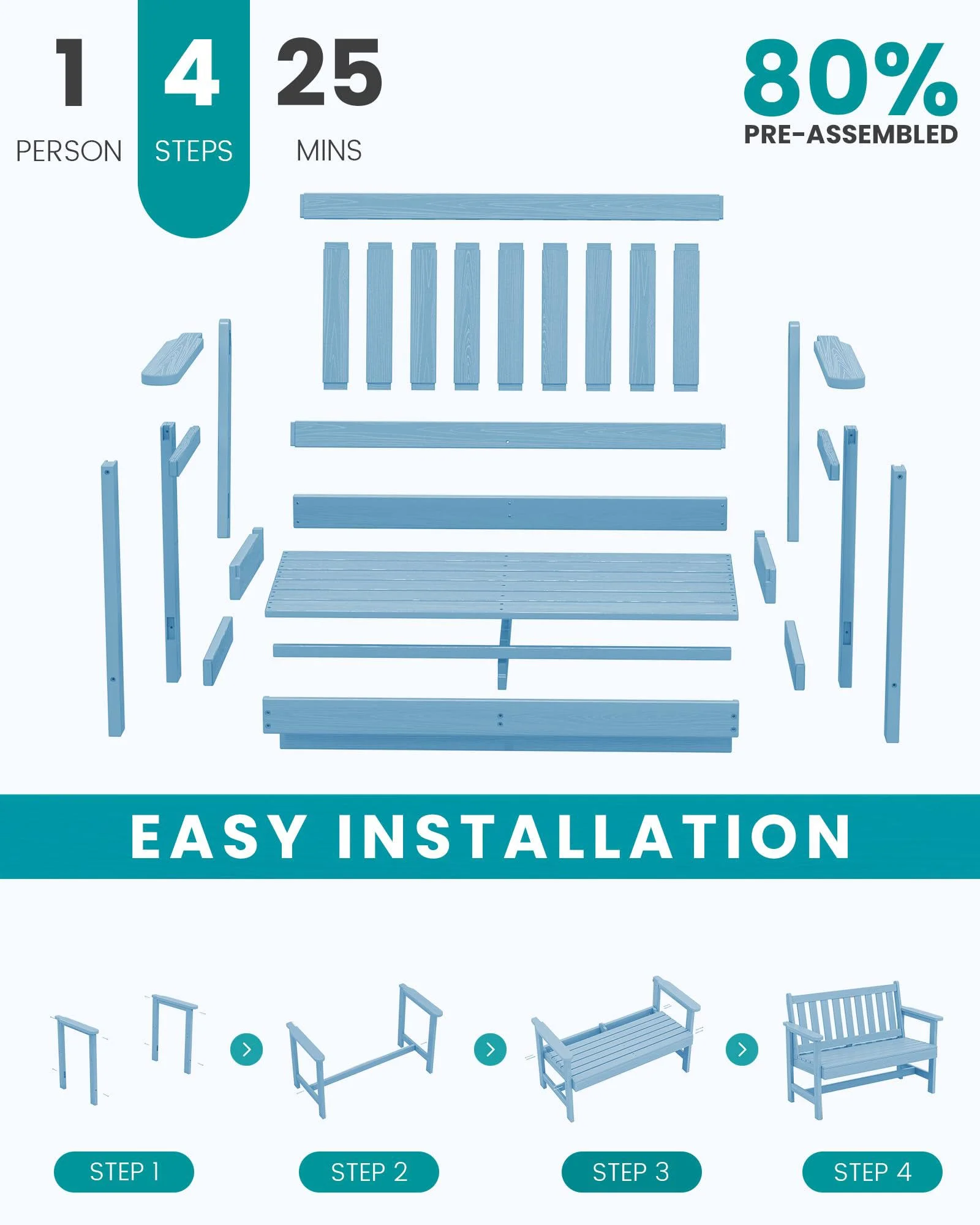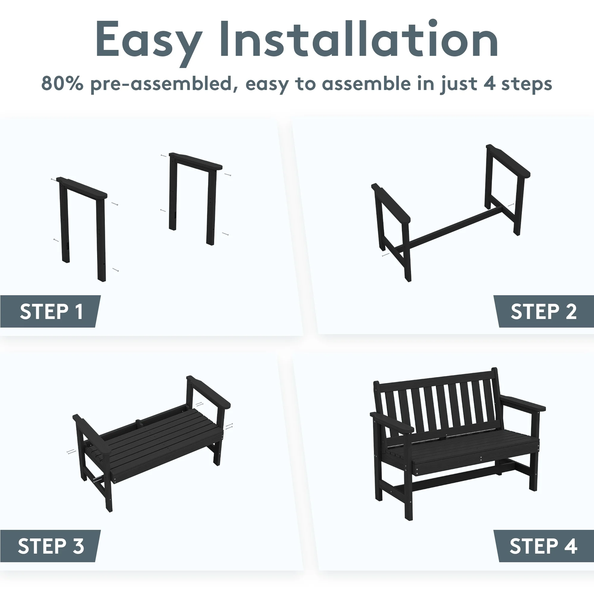 - 【Low Maintenance】The HDPE material of the bench is easy to clean with just a wipe or rinse, requiring minimal upkeep.