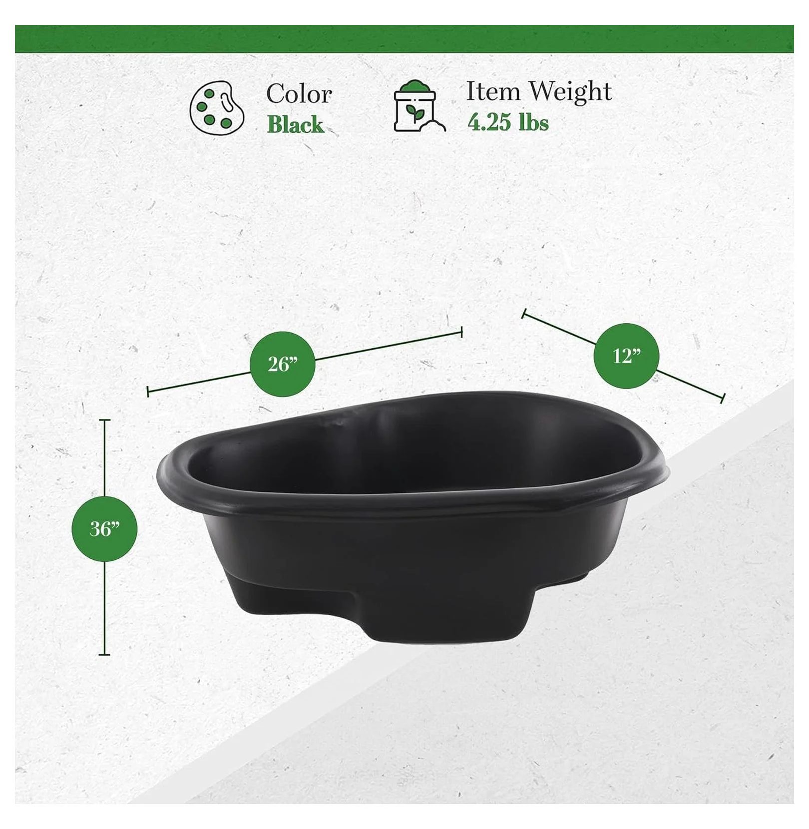 - Measurement of the Item: Pond liner is a black-colored product with dimensions measuring 26 inches in length, 12 inches in width, and 36 inches in height, weighing 4.25 pounds