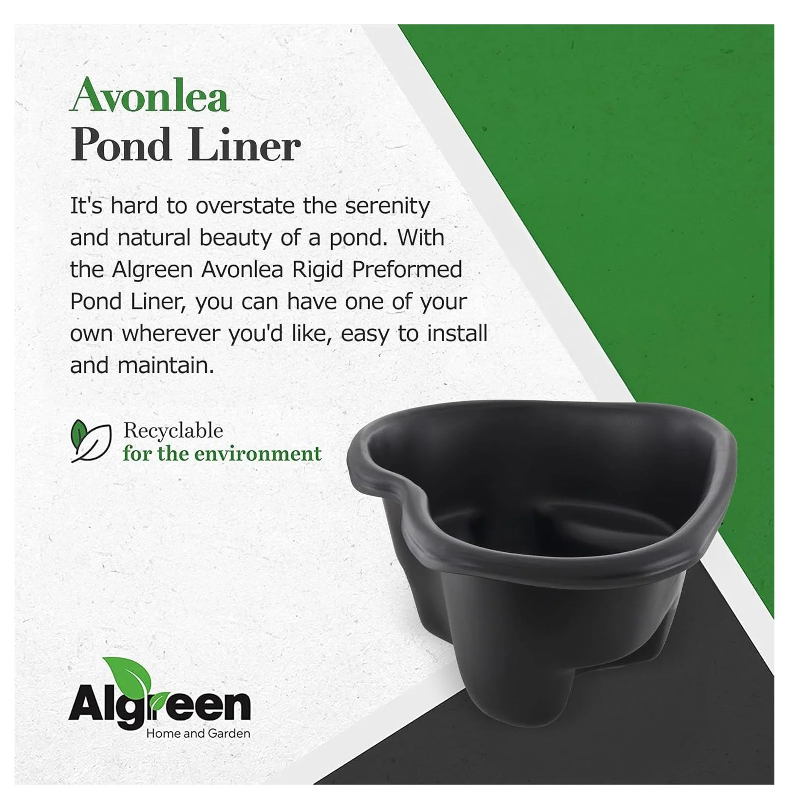 - Pond liner Made of Plastic: Avonlea 33-gallon pond liner, crafted from recycled materials, ensures a safe environment for fish and plant life in your aquatic