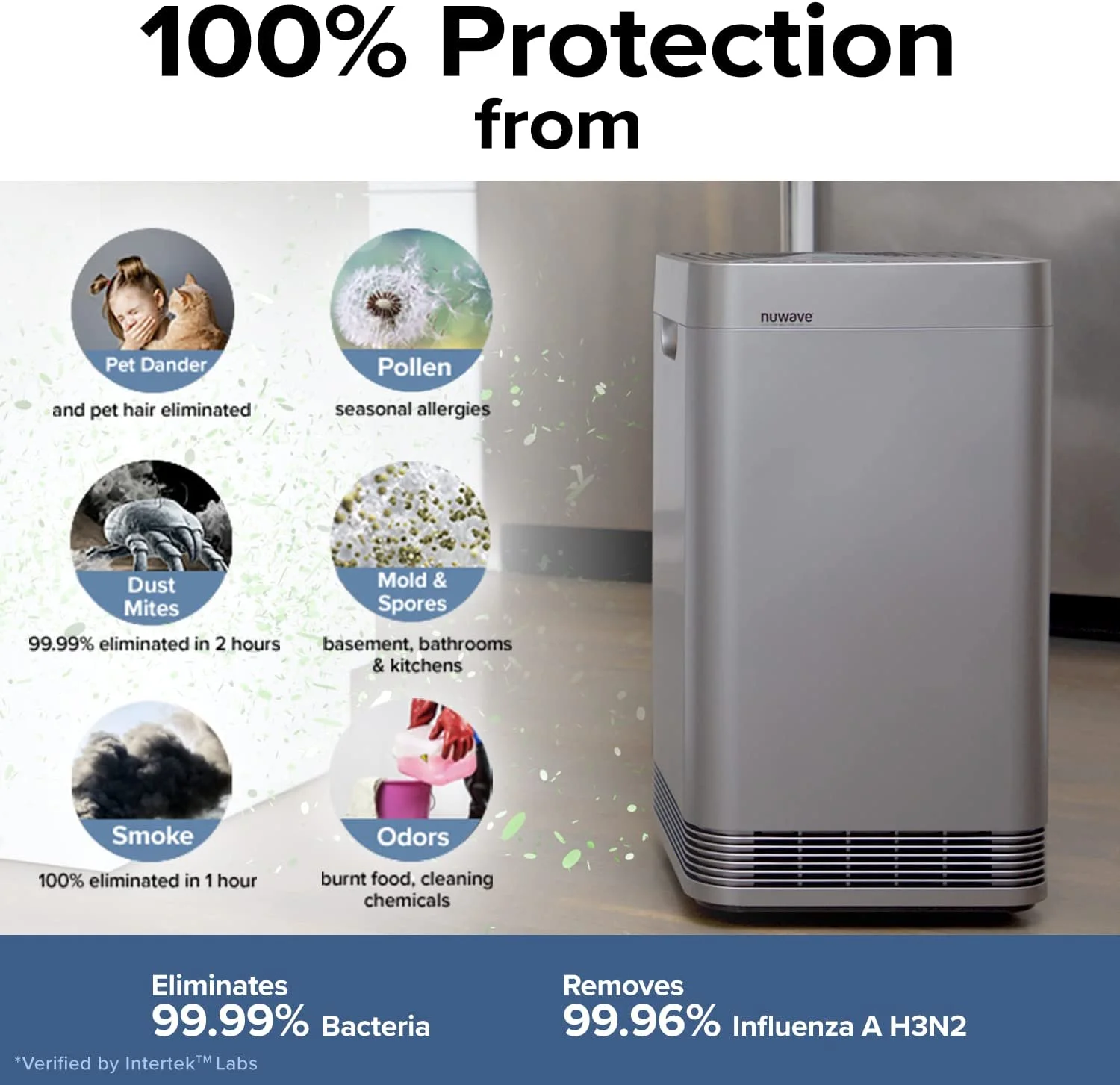 With its advanced 5-Stage Filter System that can handle everything from pet dander to particle pollutants, exceptional Clean Air Delivery Rate, go-anywhere 360-degree air intake, air quality sensors, high energy efficiency, and low cost of ownership, the Nuwave OxyPure Smart Air Purifier not only meets all of the Berkeley Lab Indoor Environmental Group's criteria for choosing an air purifier, but it also exceeds them. Nuwave air purifier improve indoor air circulation and purify 2,934ft2 spaces in 60 minutes, or 586ft2 in 12 minutes (CADR: 664.6 m3/h). This Air Purifier features two sensors to detect both air particles and smells, including smoke and pet smell, automatically adjust the fan speed and deliver real-time readings. A perfect air purifier choice for pets�� parents and smokers. The top-performing air purifier is perfect for large room, office, high ceilings, and open-concept spaces. That makes OxyPure the most effective air purifier on the market today.