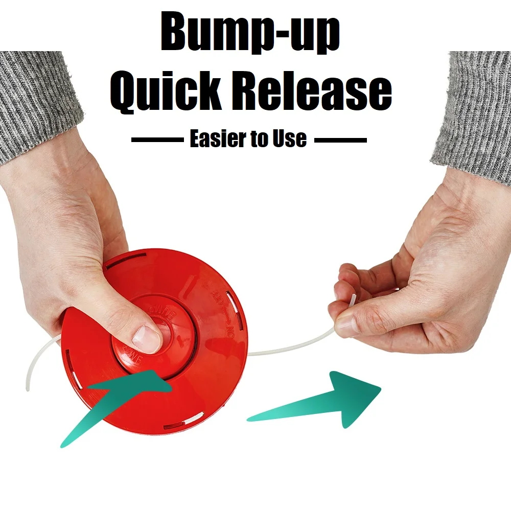- 【Quick Rlease Trimmer Line】:The special bump-up design, you need only press the bottom to release the line.It can be set up in a few seconds.And the bump-up design assure you that the line won't stuck in use