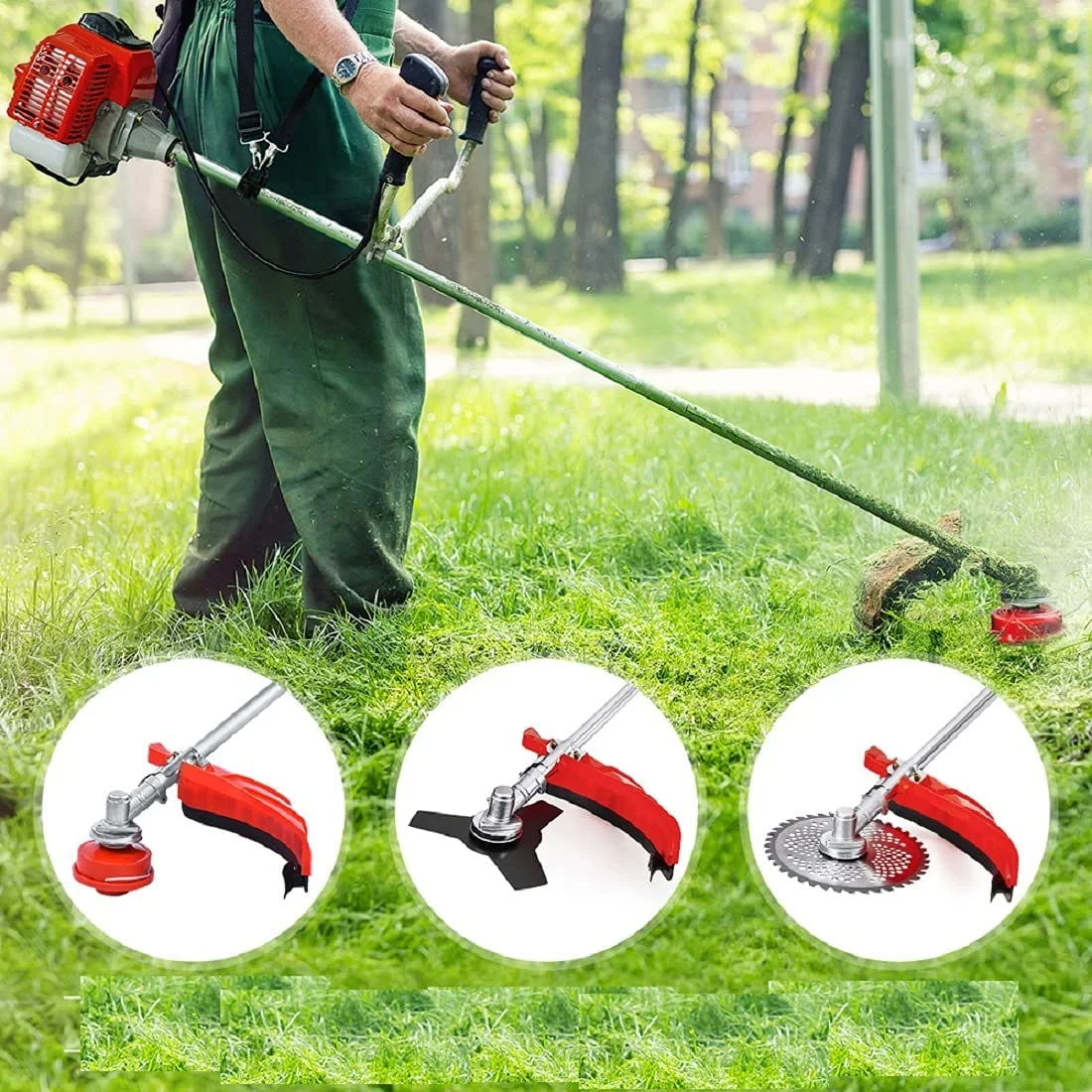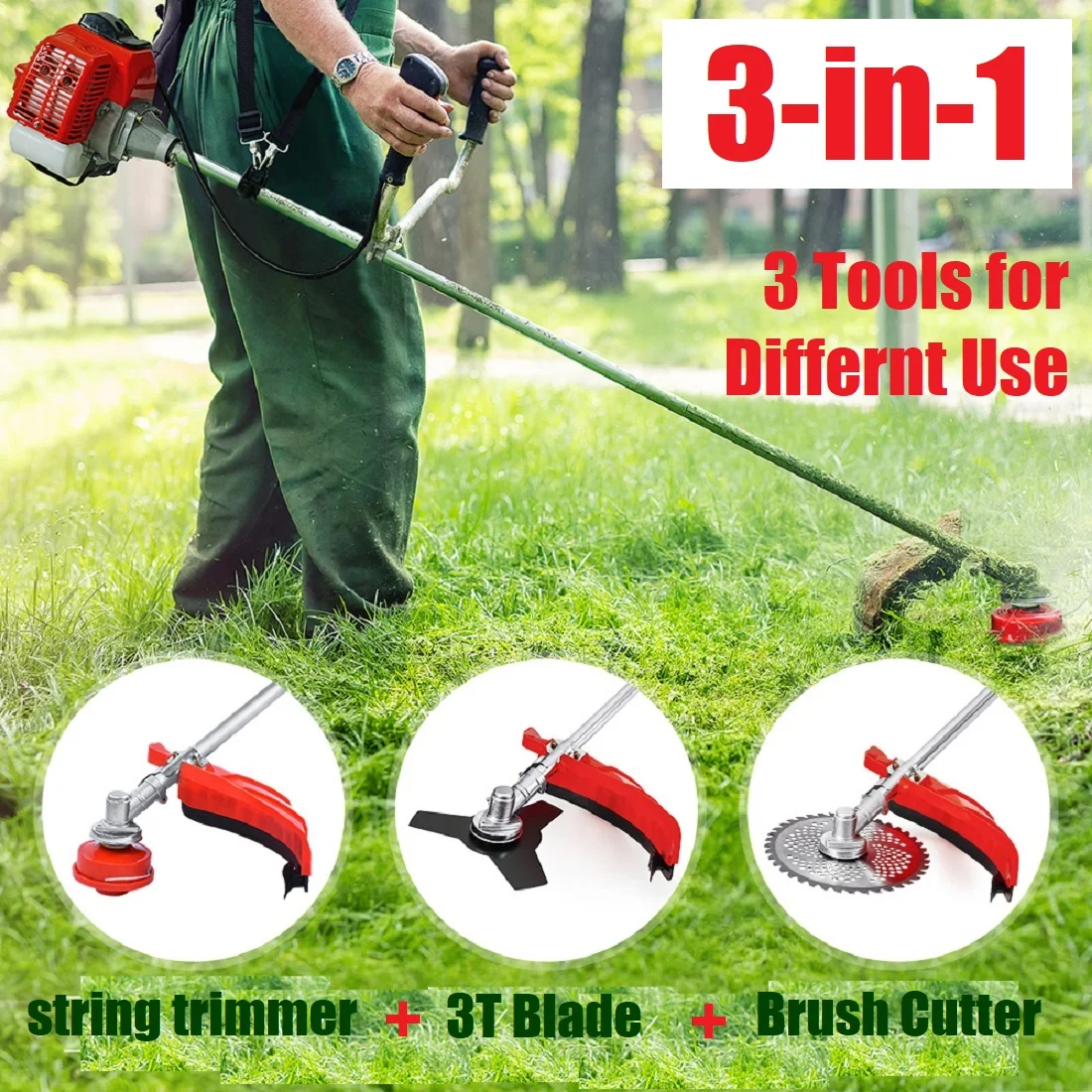 - �?-in-1 Multi-use Head】:Convert to 3 different tools: a dual line head, a 3T blade and a brush cutter. It only takes a few seconds to convert, which means you can use it quickly and easily trim around flowerbeds, sidewalks, foundations. It is an efficient and reliable weed wacker for lawn care.