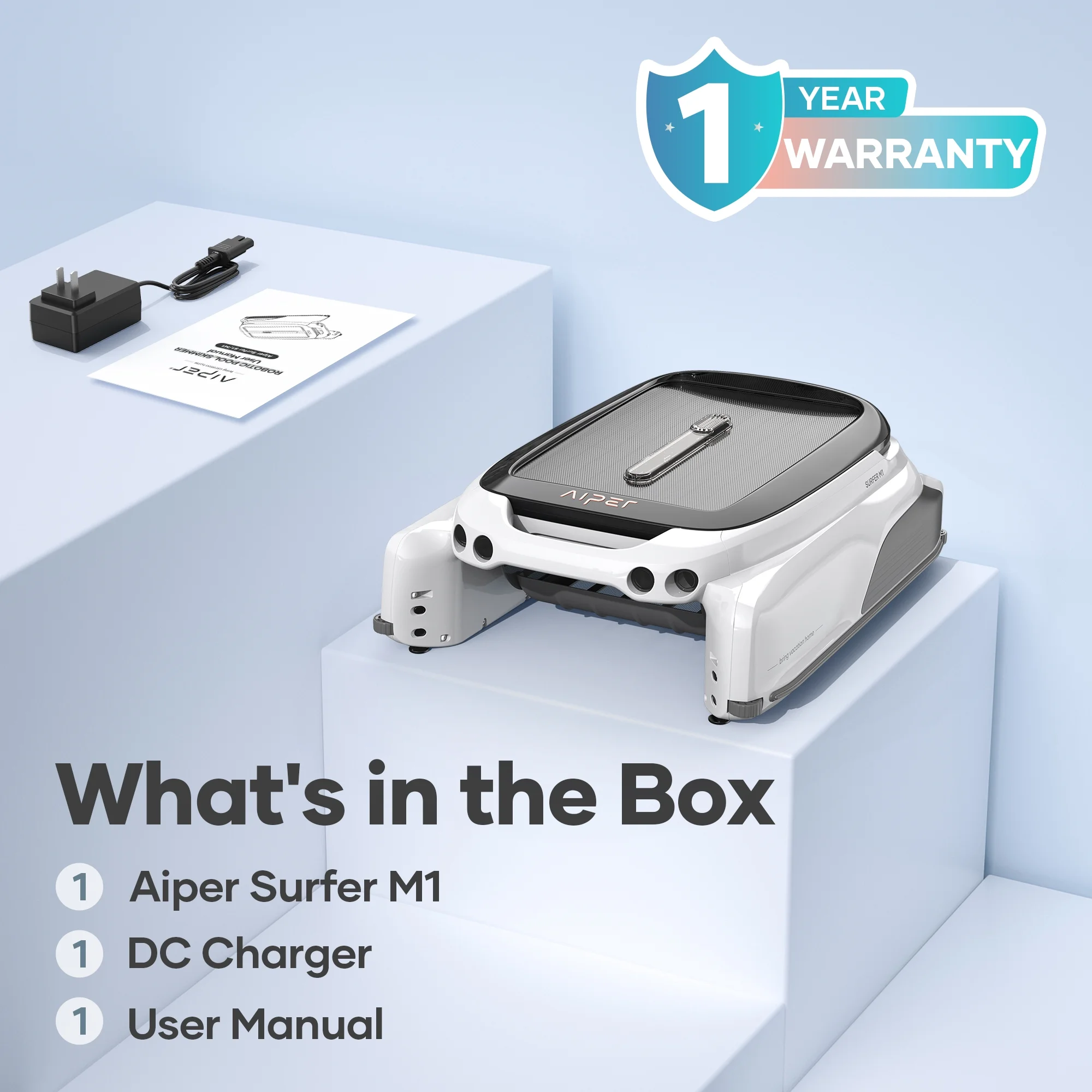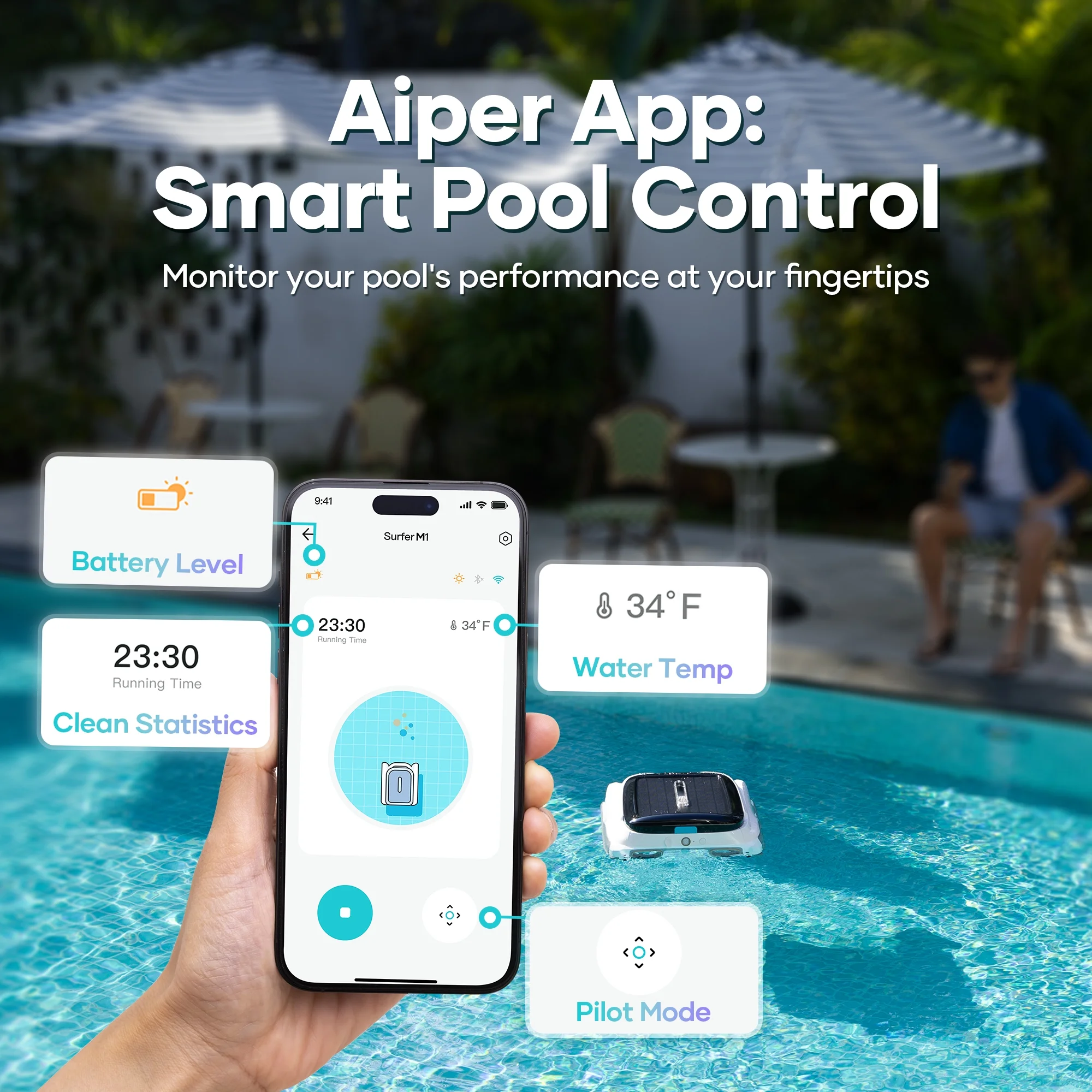 - ��All-Pool Champion�� - Crafted from UV-resistant ASA material, the Aiper Surfer M1 excels in in/above-ground pools, showcasing durability and adaptability for standard, saltwater, and natural pool environments.