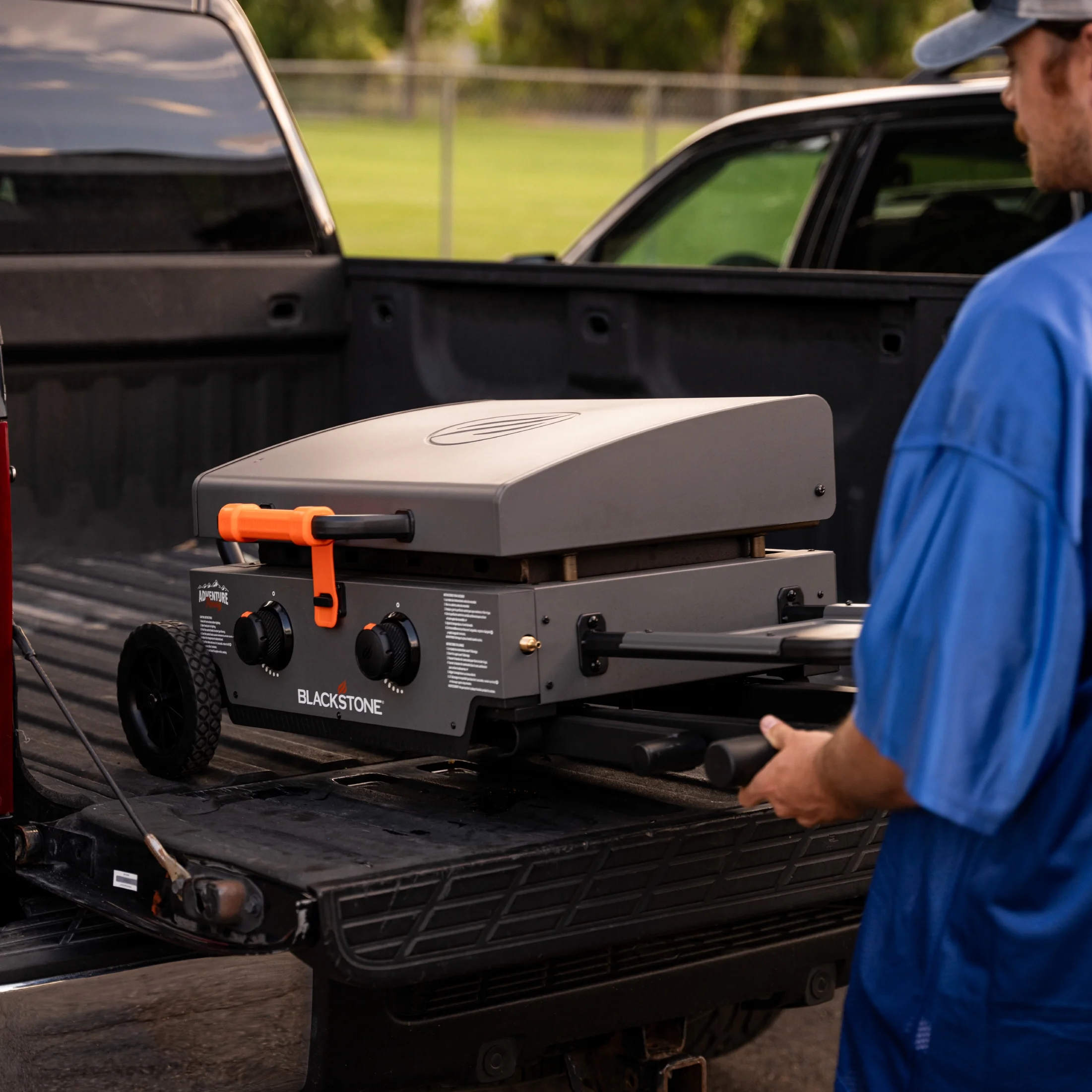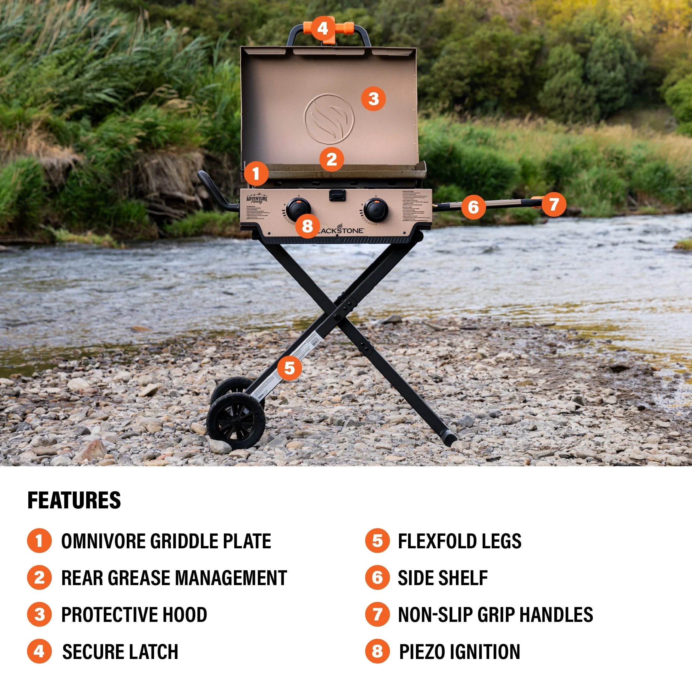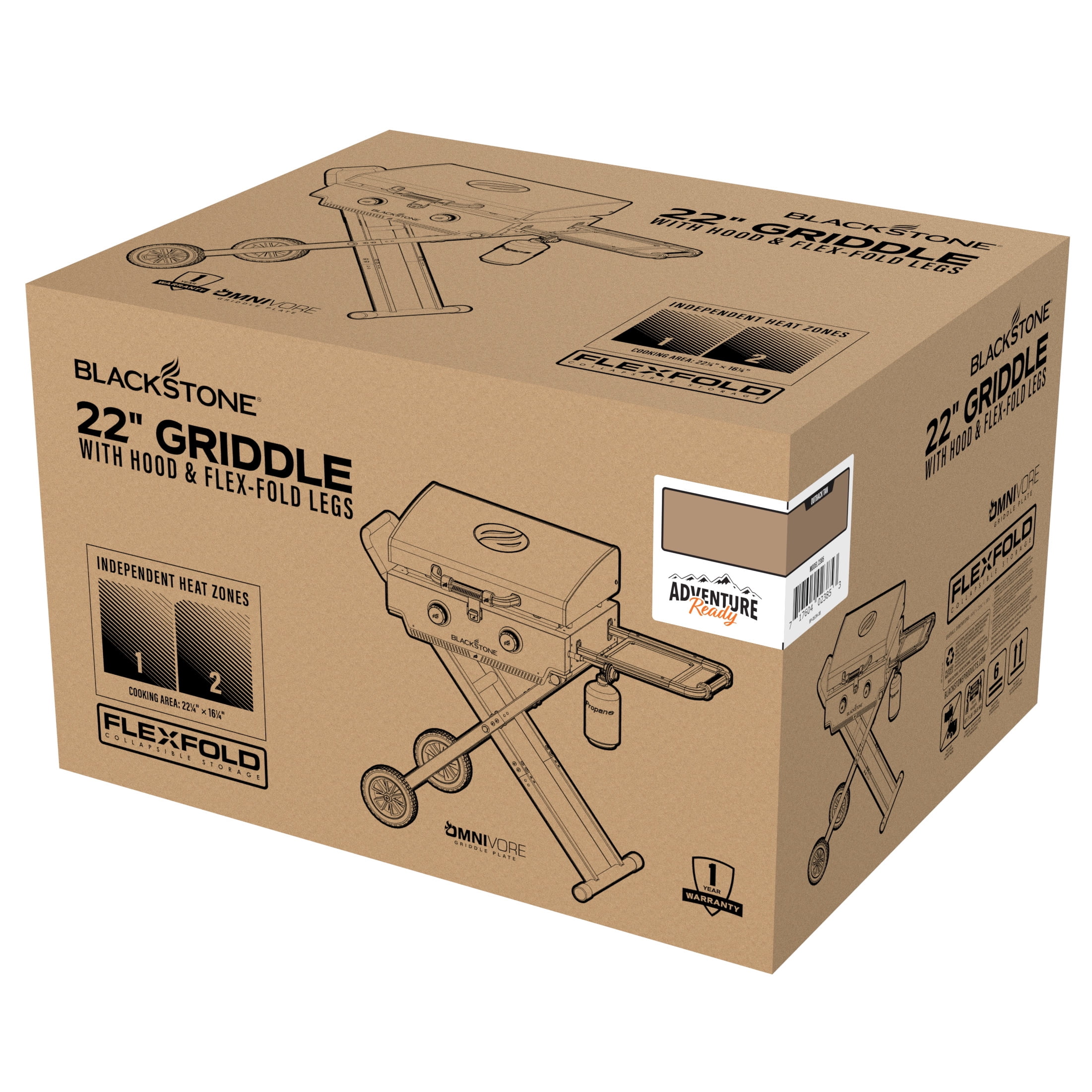 - Blackstone Adventure Ready 2-Burner 22" Propane Omnivore Griddle with Flexfold Legs in Charcoal Gray