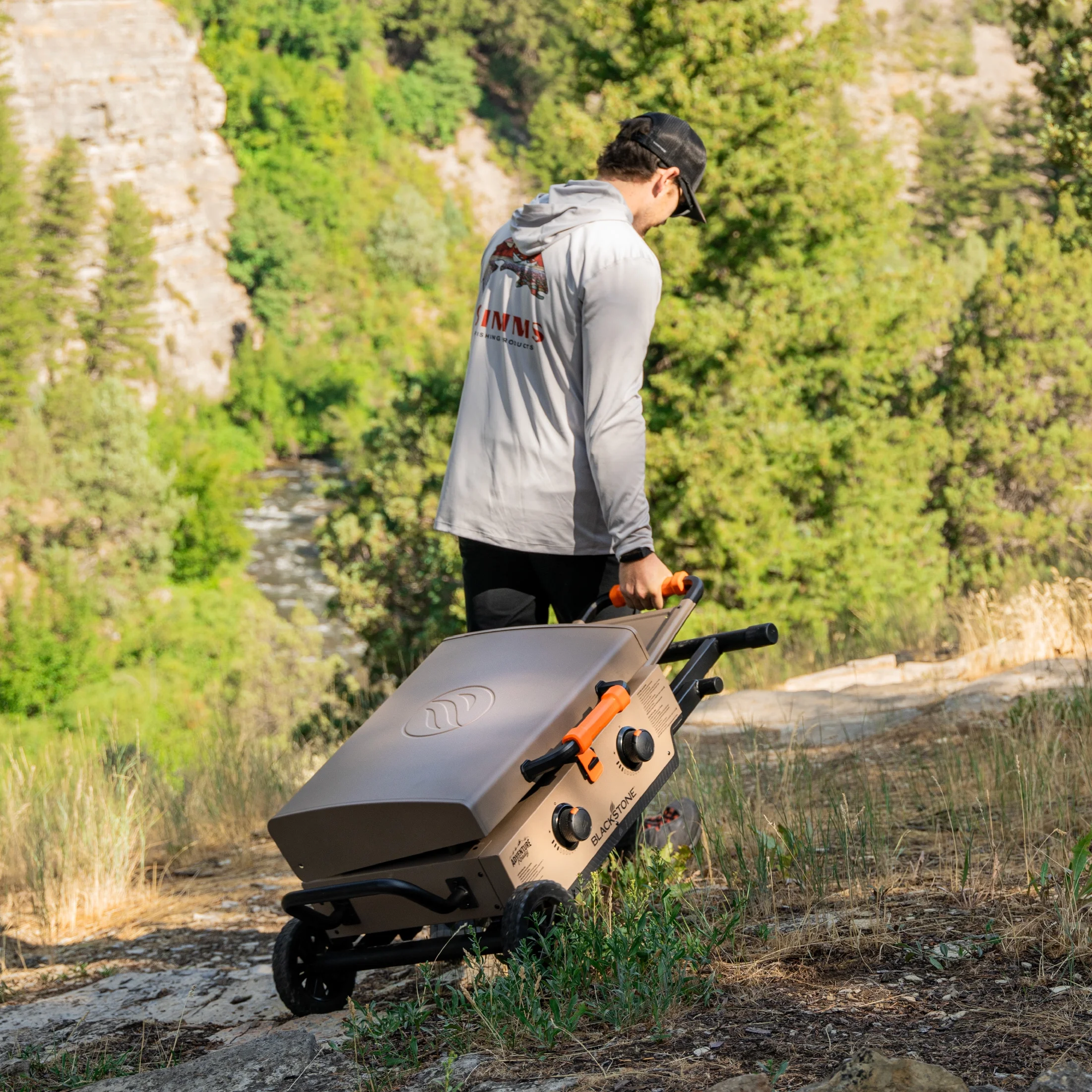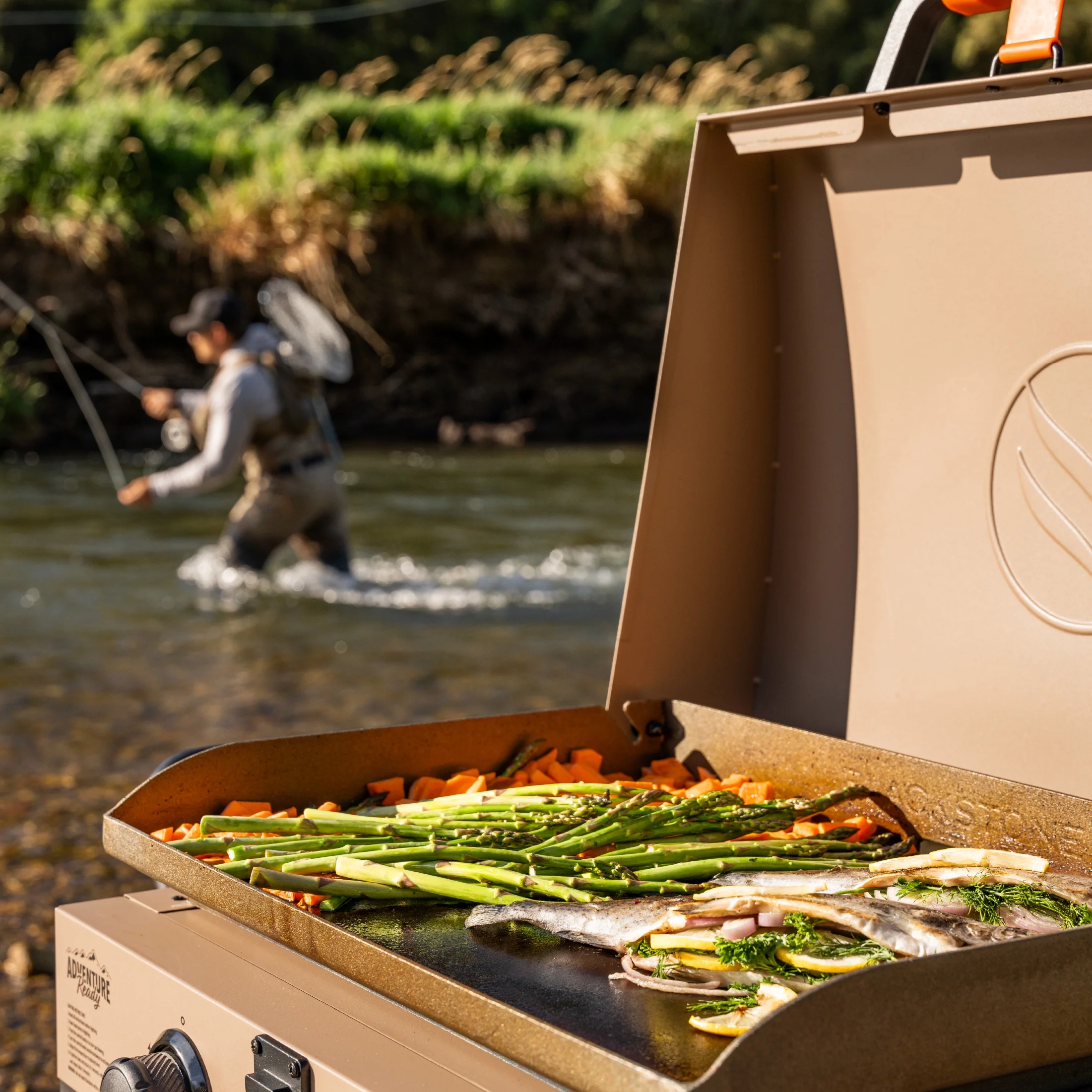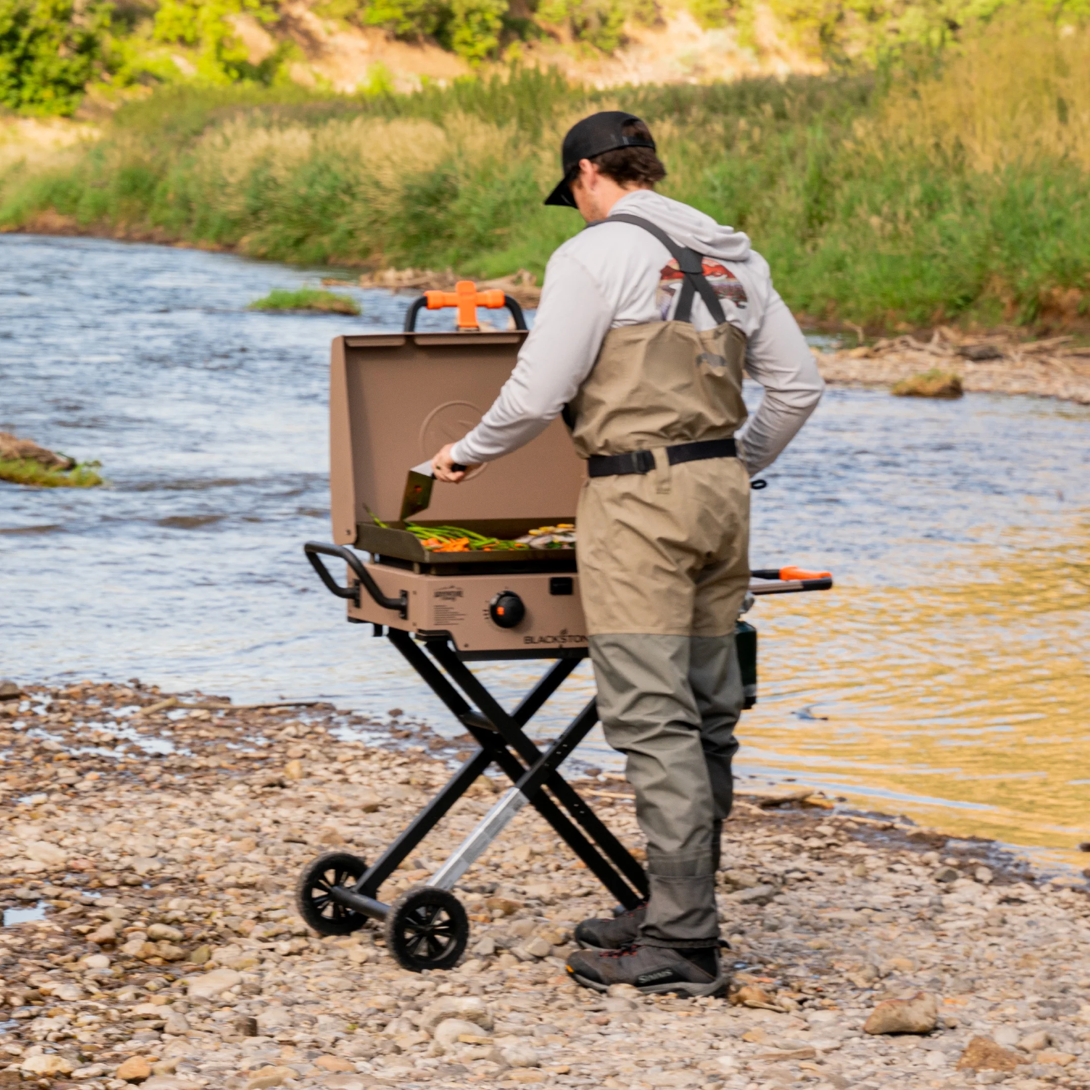 - Blackstone Adventure Ready 2-Burner 22" Propane Omnivore Griddle with Flexfold Legs in Charcoal Gray