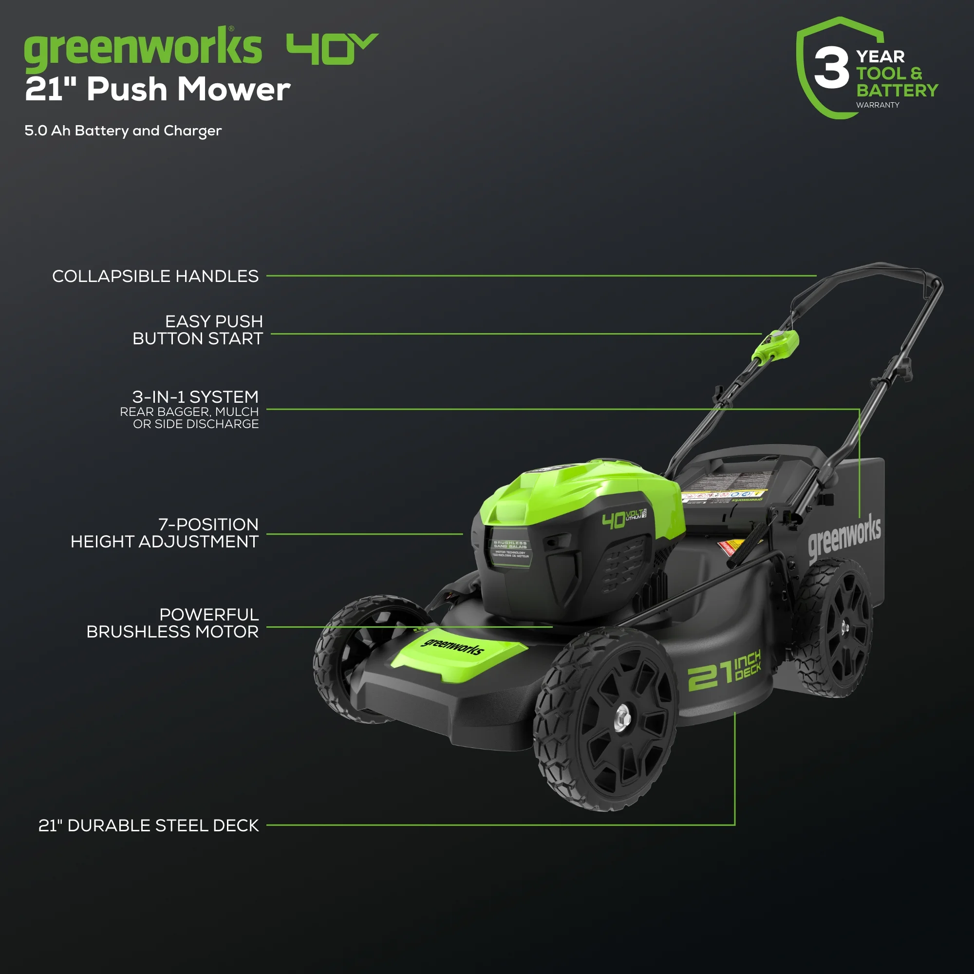 - New Greenworks 40V 21" Brushless Walk Behind Push Lawn Mower: