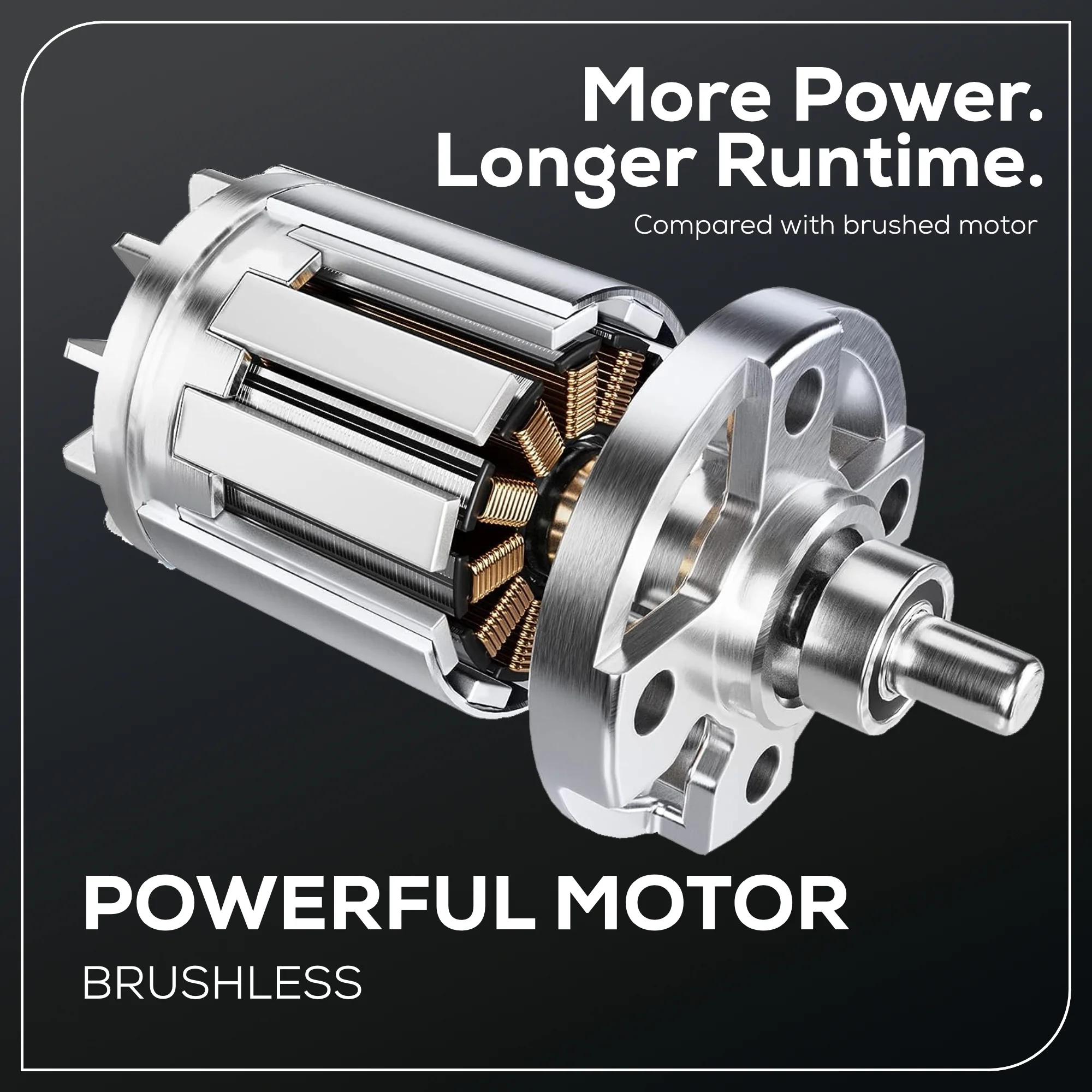- Intelligent Brushless Motor Technology - 2x more torque, more power, longer runtimes, quiet operation, and extended motor life