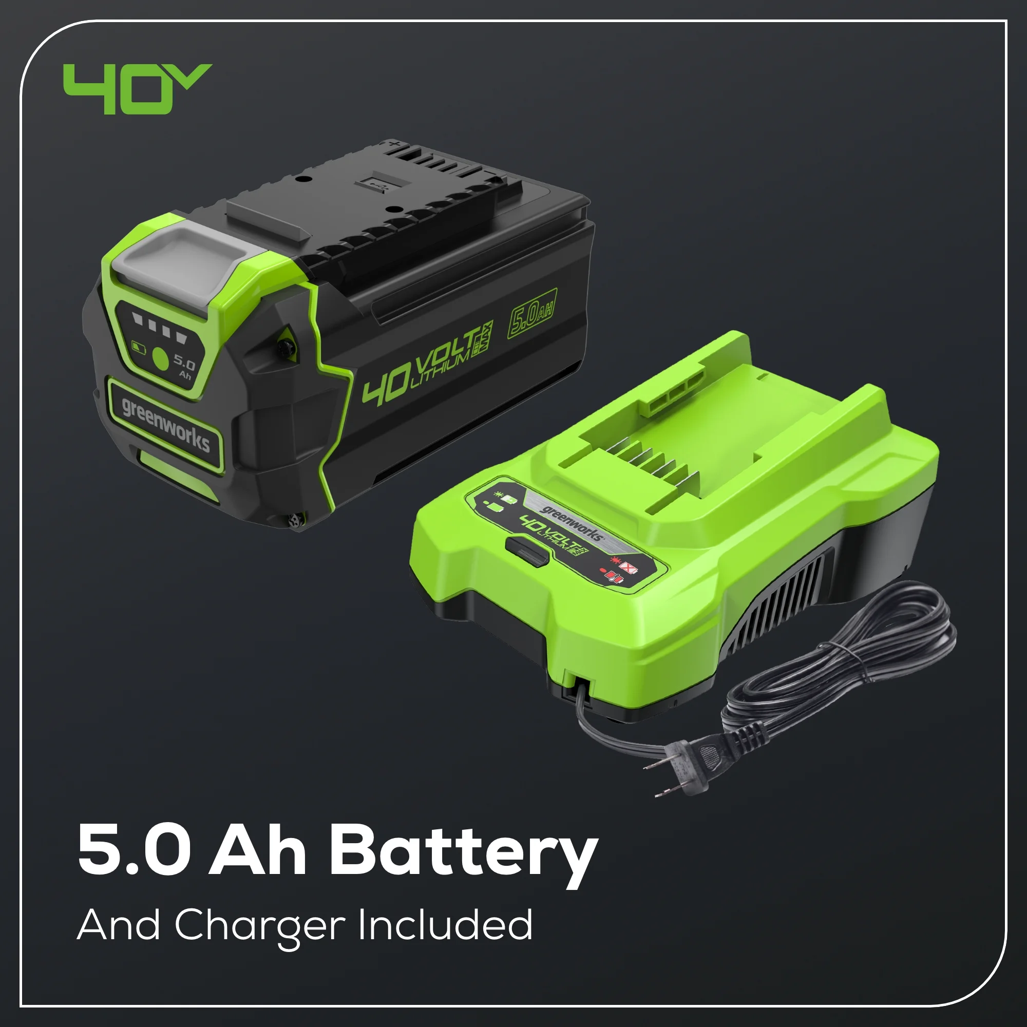 - Highly efficient 40V brushless motor provides more torque, quiet operation, and longer life