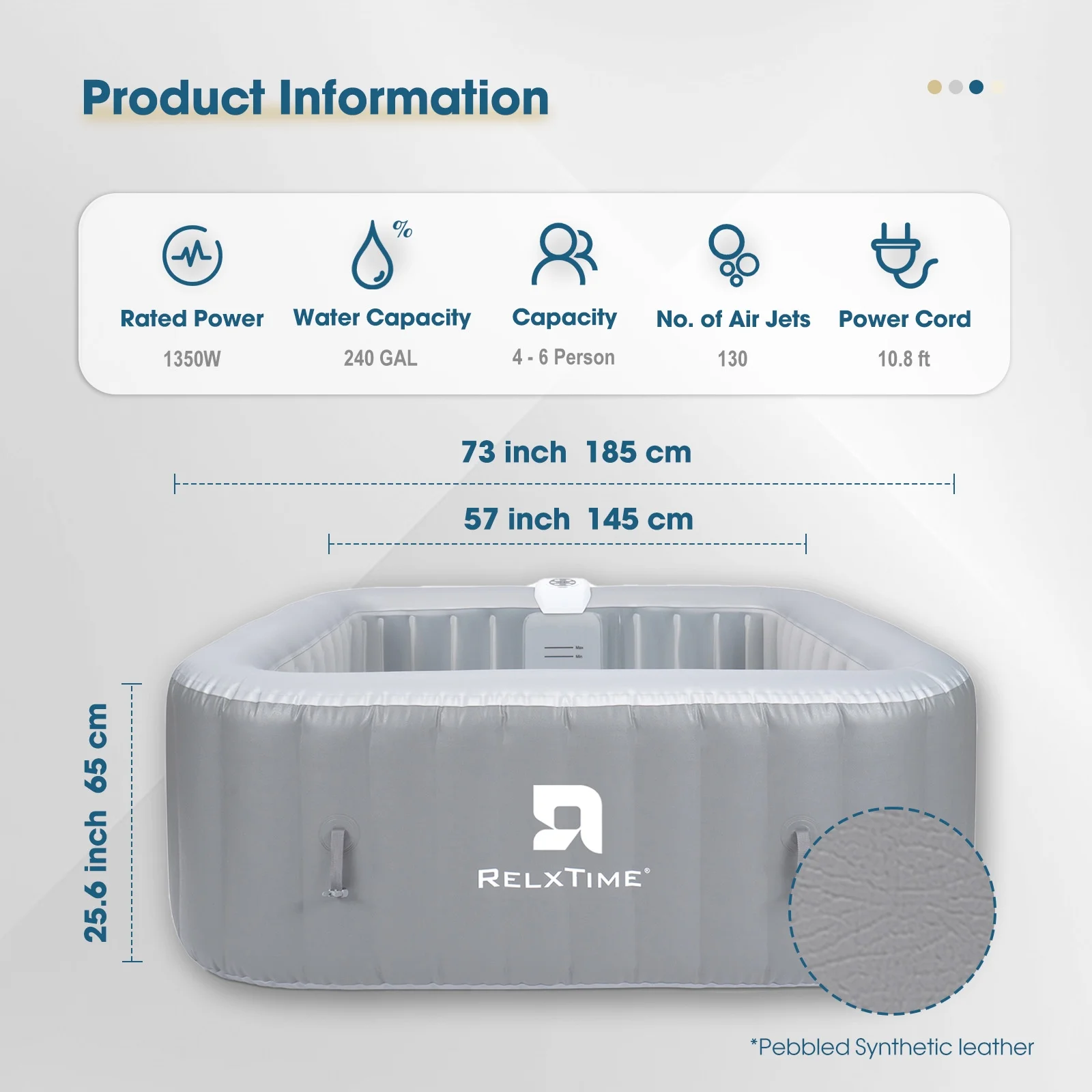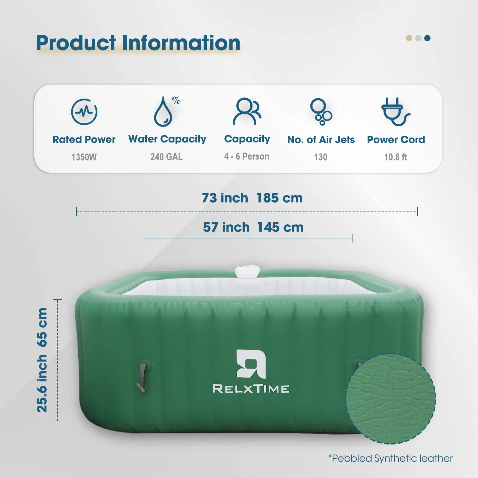 - Spacious size of 73"L x 73"W x 25.6"H, perfect for 4-6 adults to enjoy a relaxing spa experience