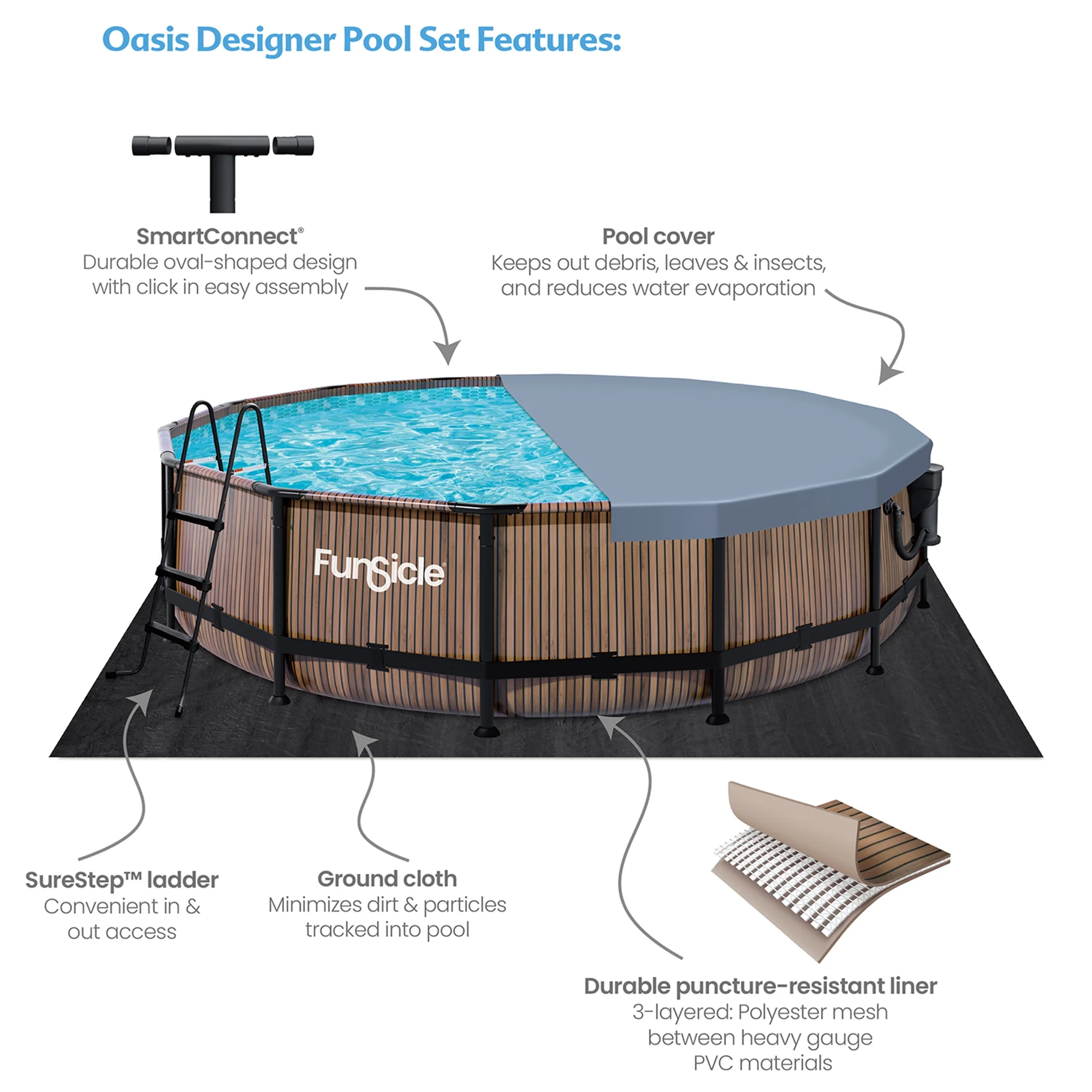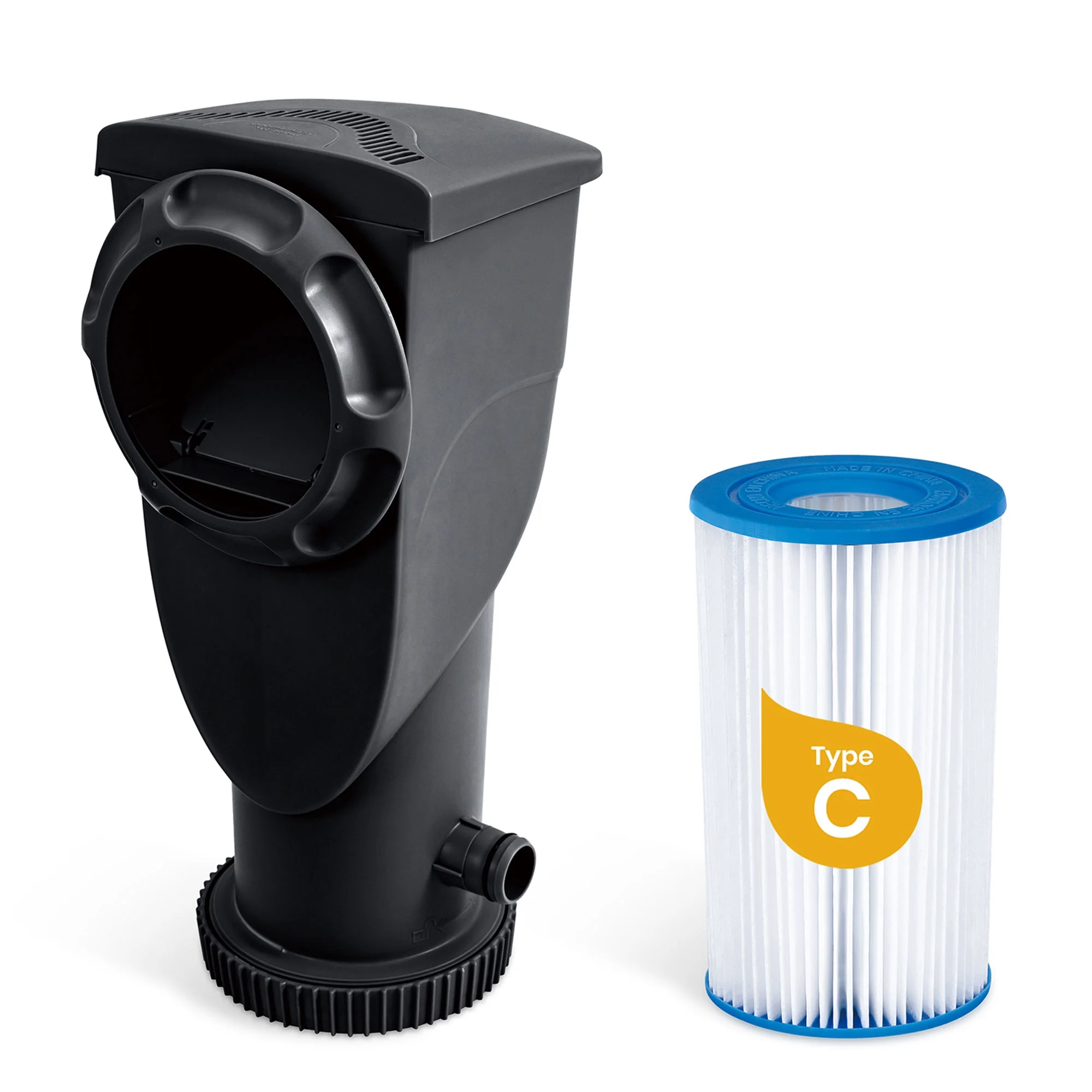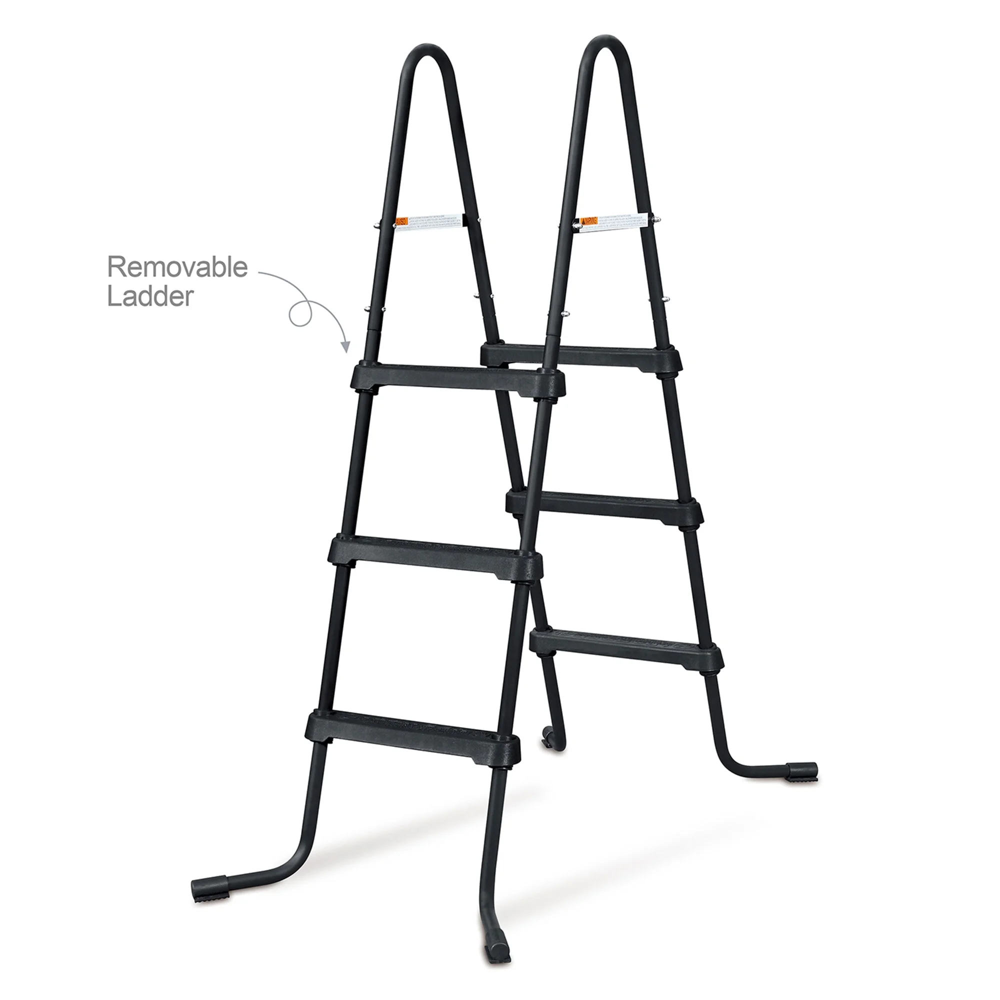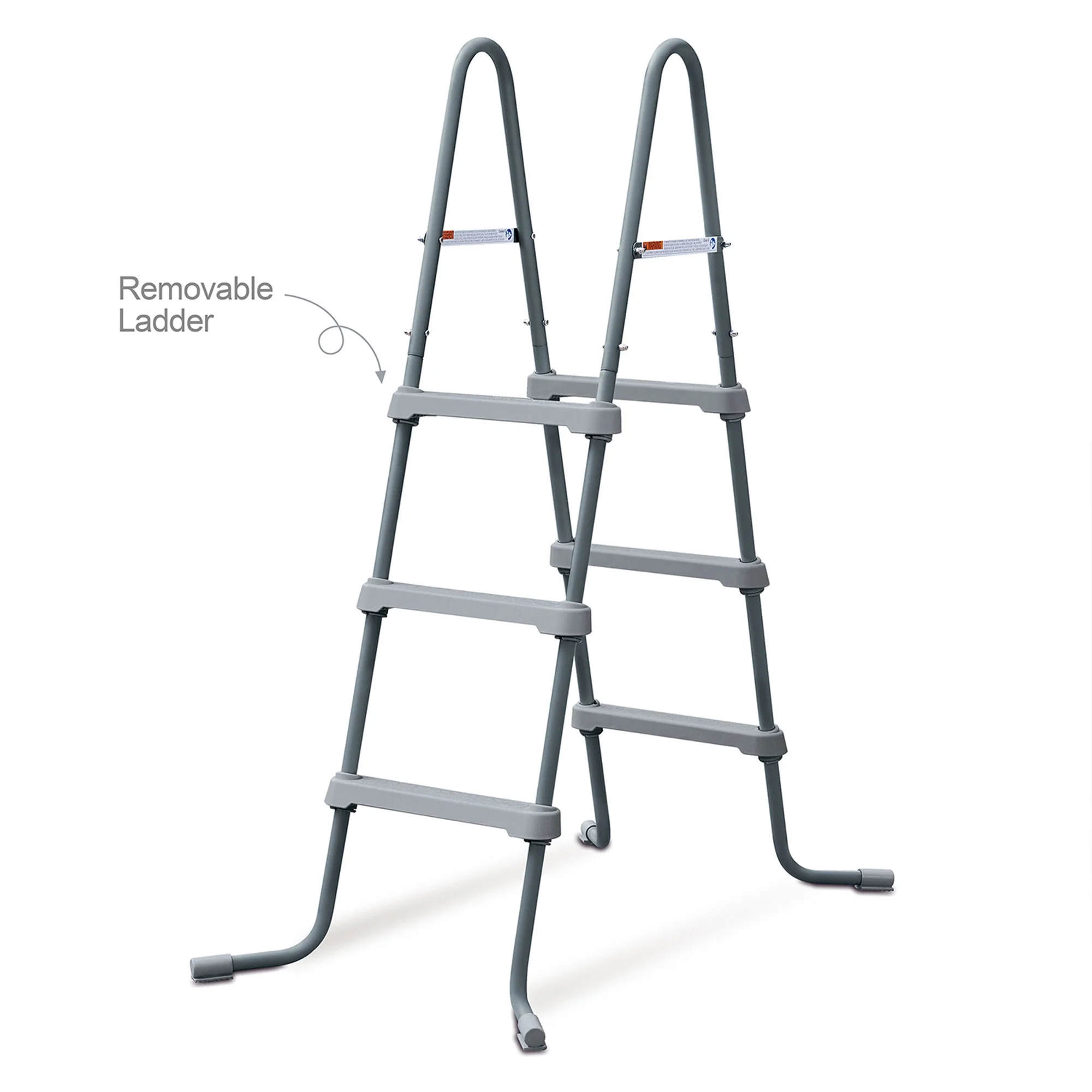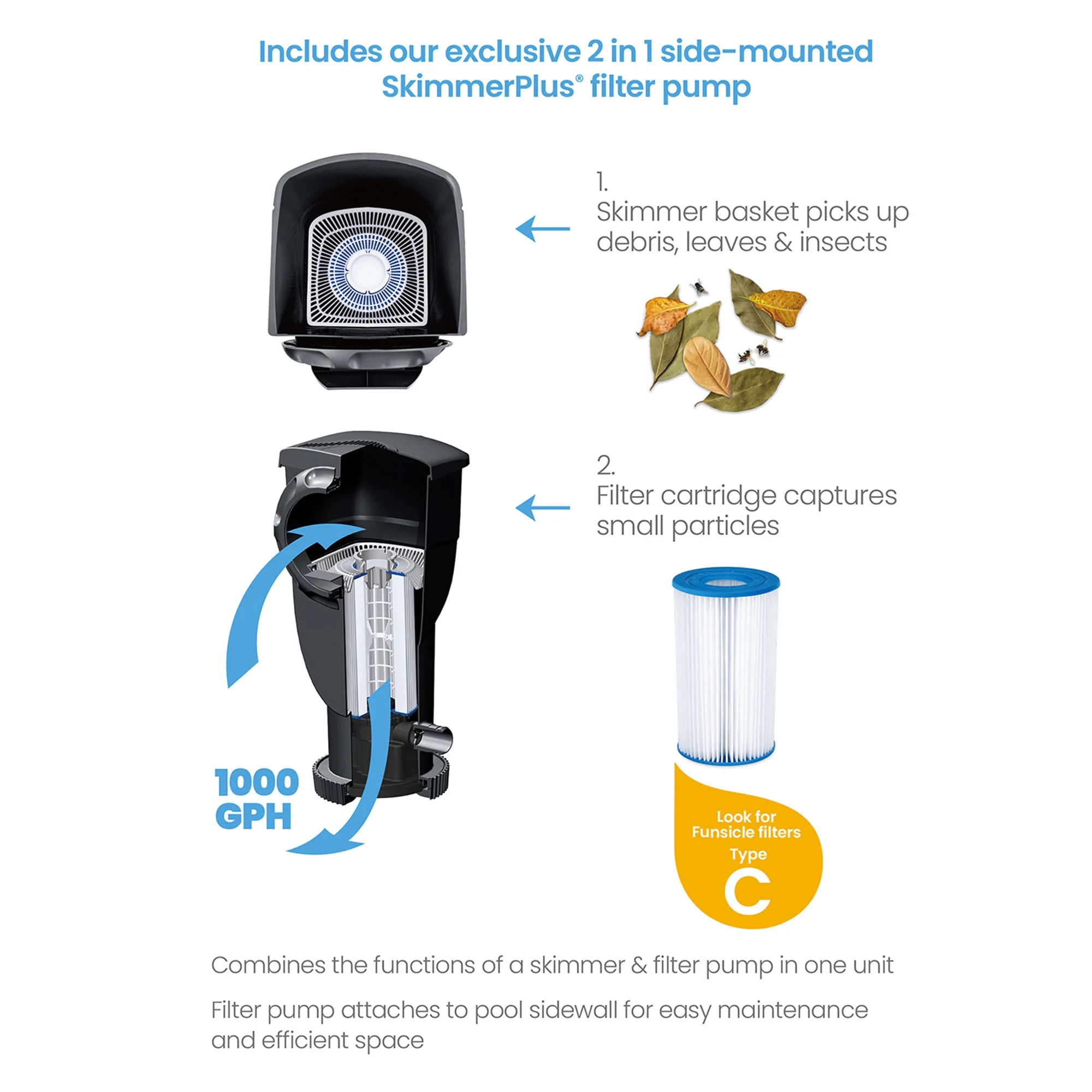- Includes a 110 to 120-volt SkimmerPlus SKX1000 filter pump with GFCI and type C filter cartridge for easy maintenance, SureStep ladder for a safe entry and exit, a protective pool cover, ground cloth, and a Deluxe Maintenance kit