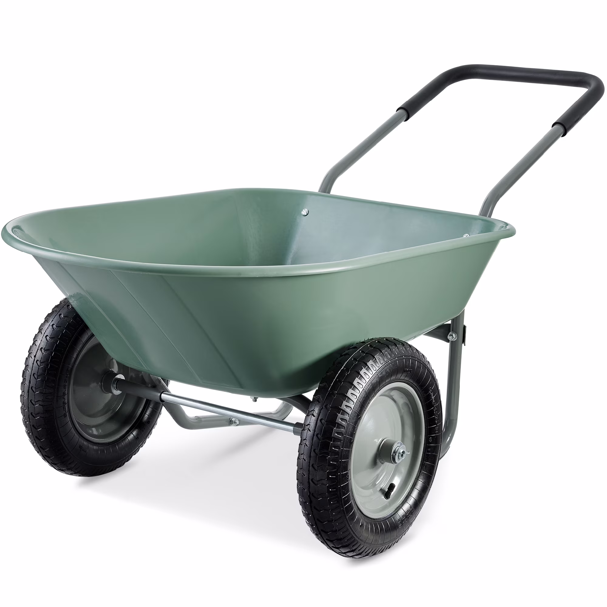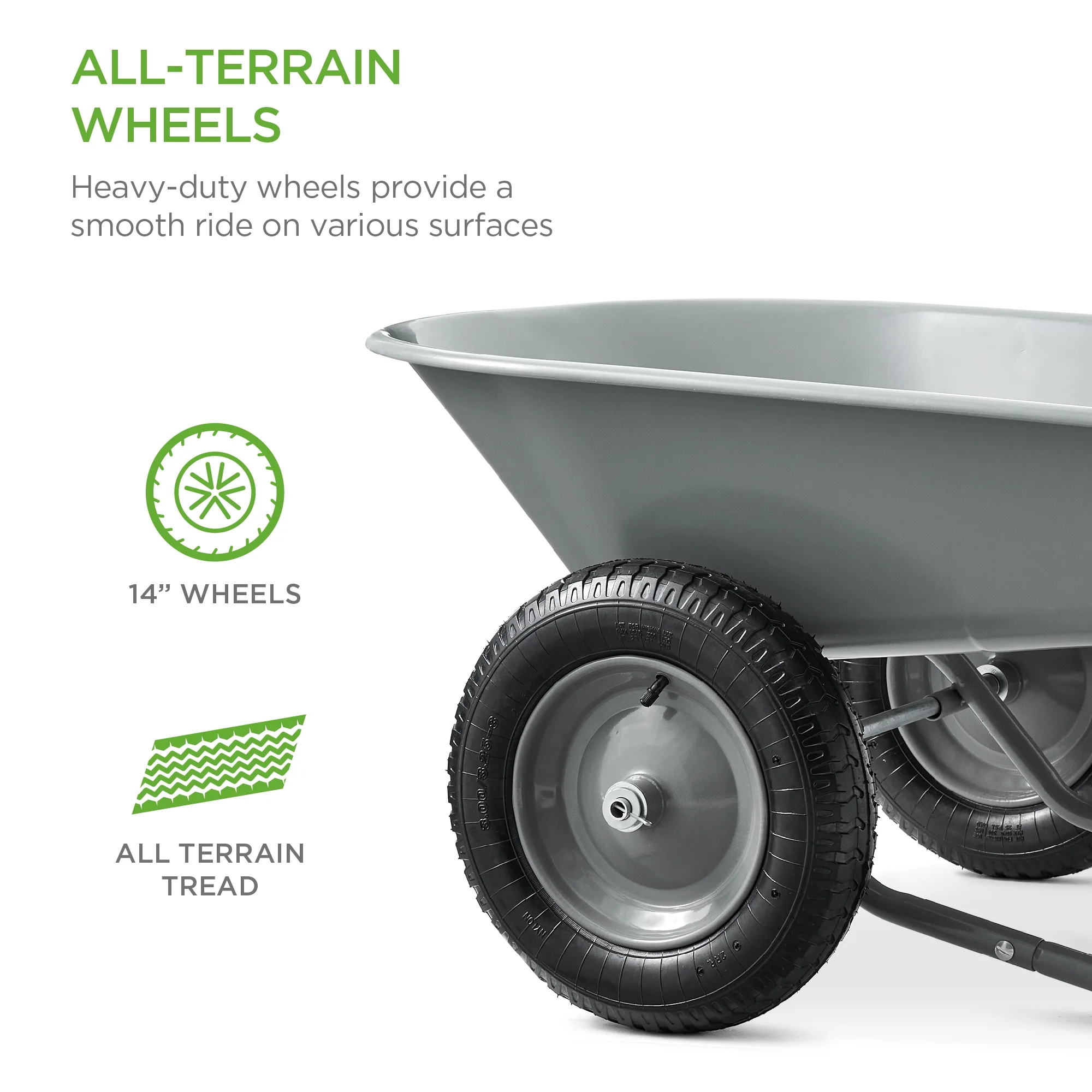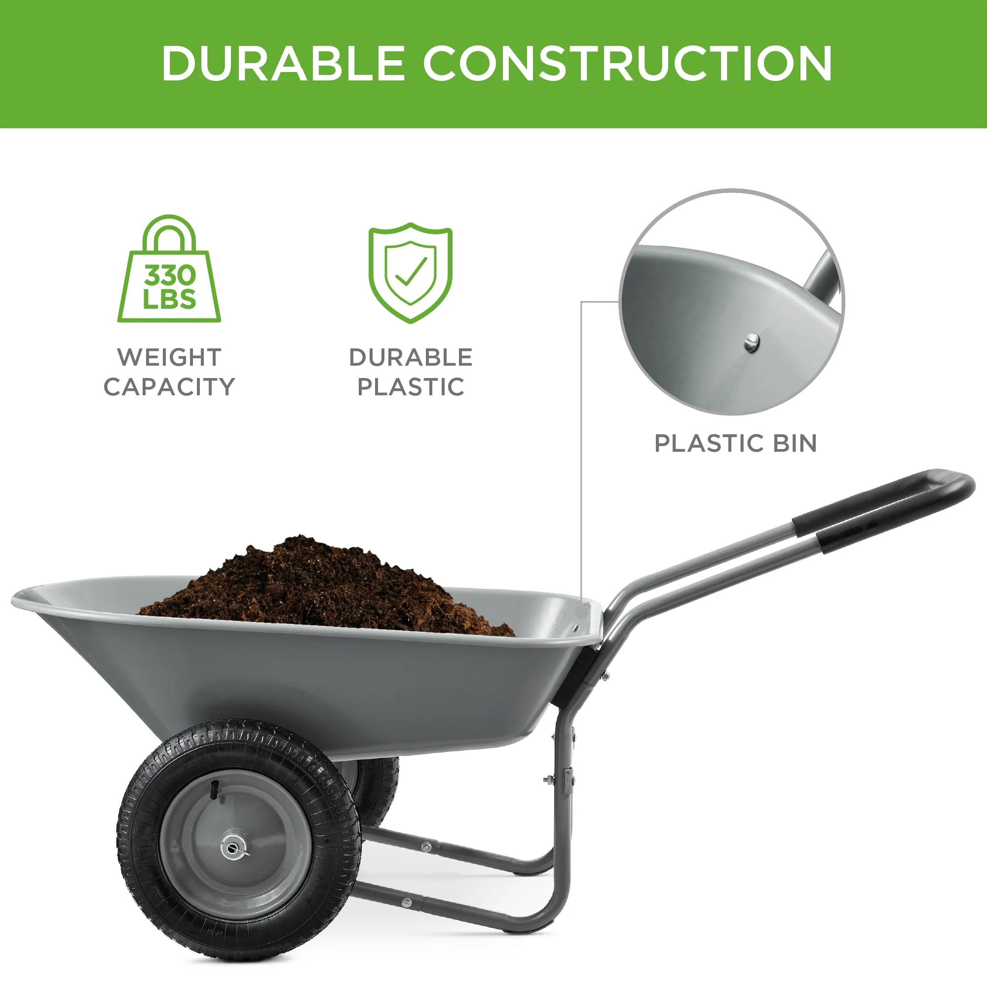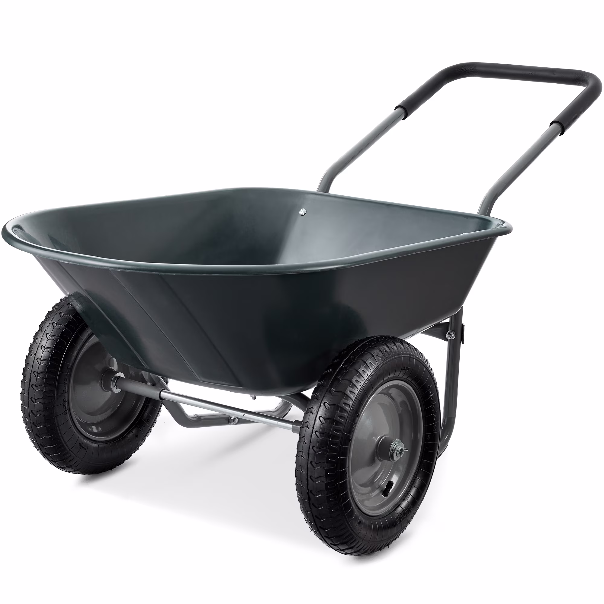 - MULTIPURPOSE GARDEN CART: Deep wheelbarrow holds up to 5 cubic feet of soil, bricks, mulch, gravel, and more, so you can conveniently carry out landscaping and other home improvement projects